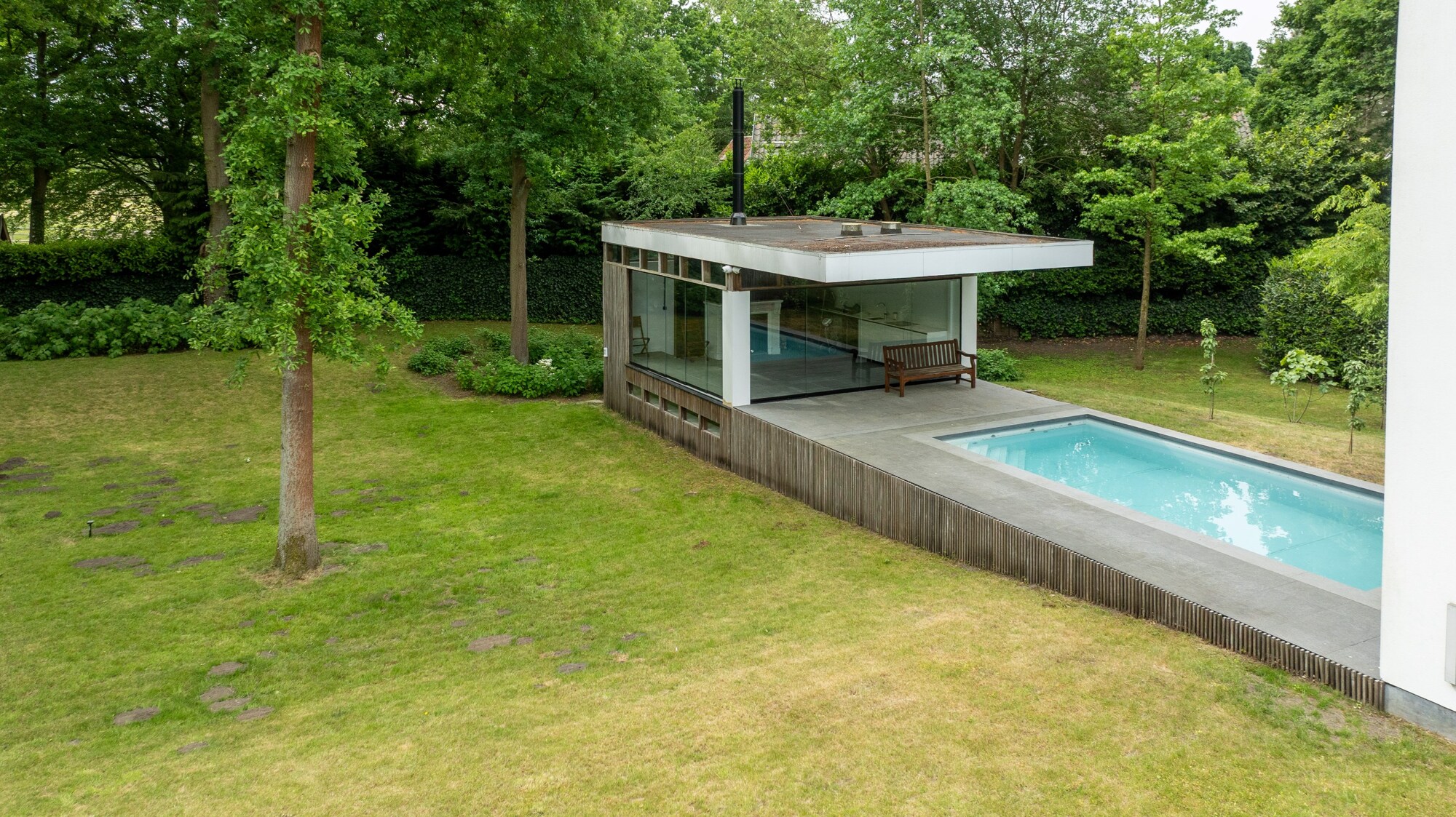 Genieten aan het poolhouse met openhaard, keuken en terras.