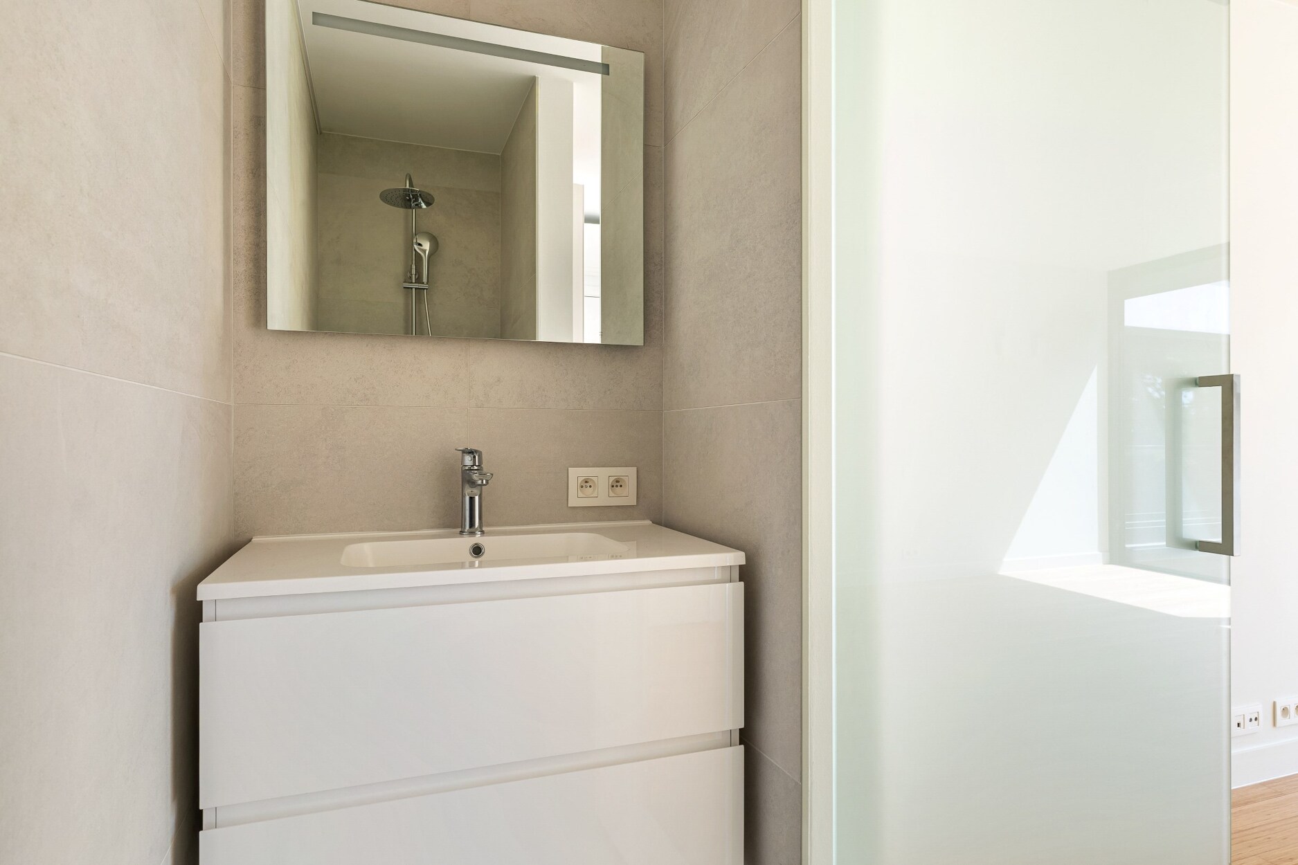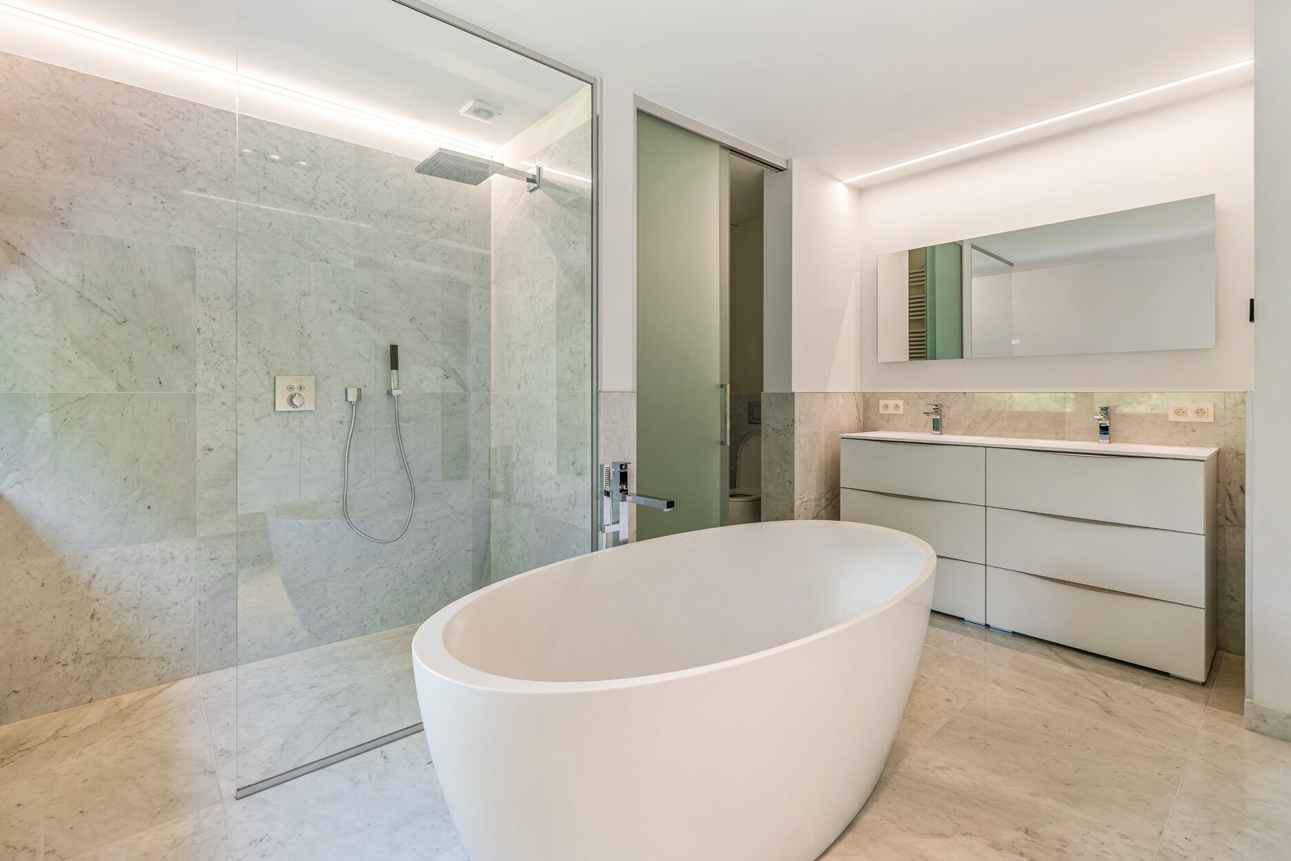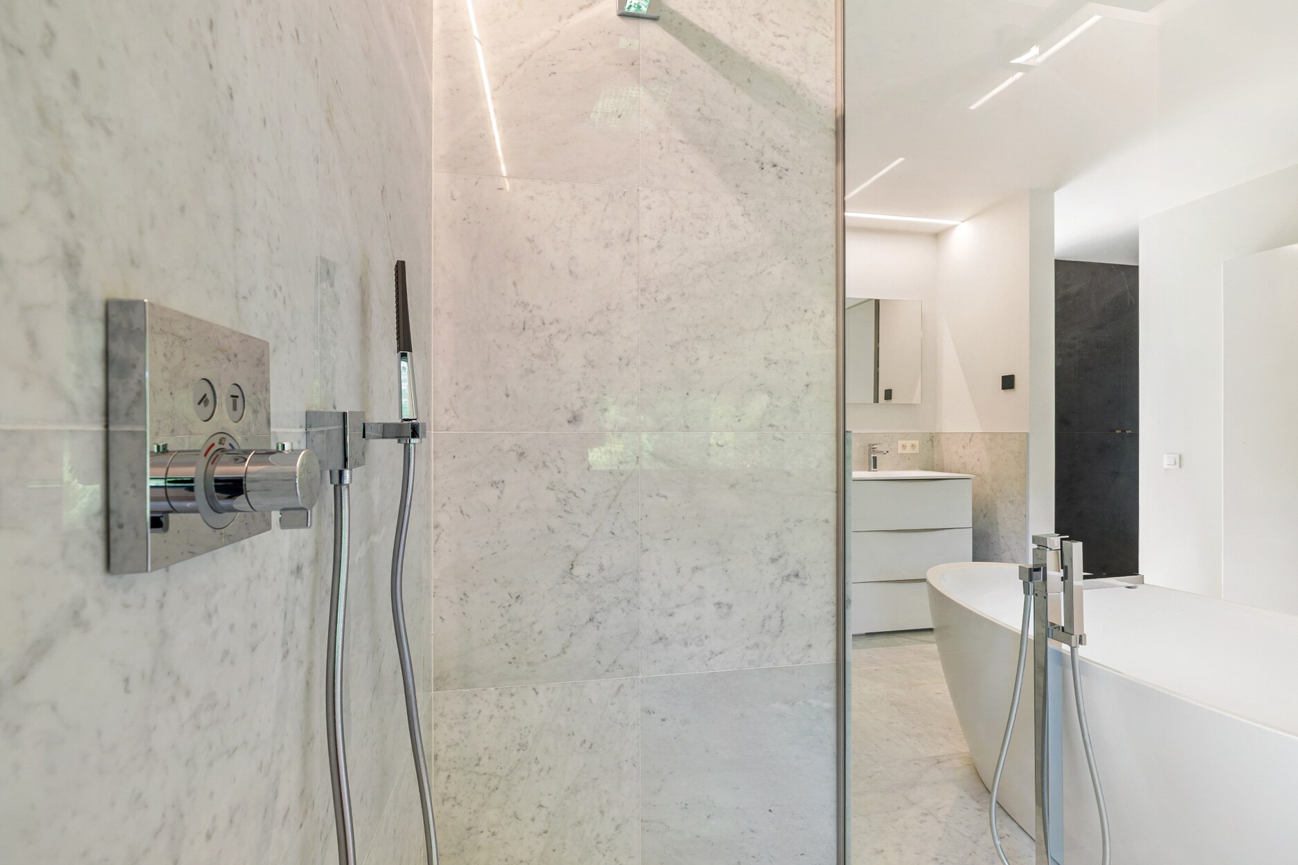 Hier beneden werd alsook een ruime badkamer en kleedruimte voorzien.