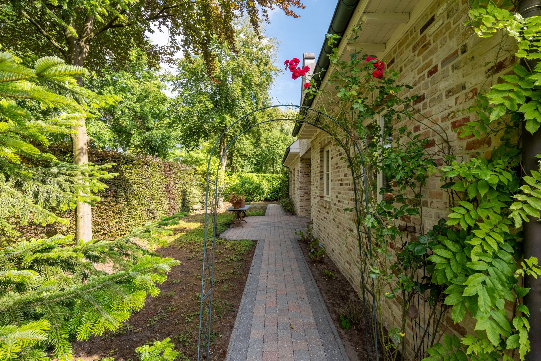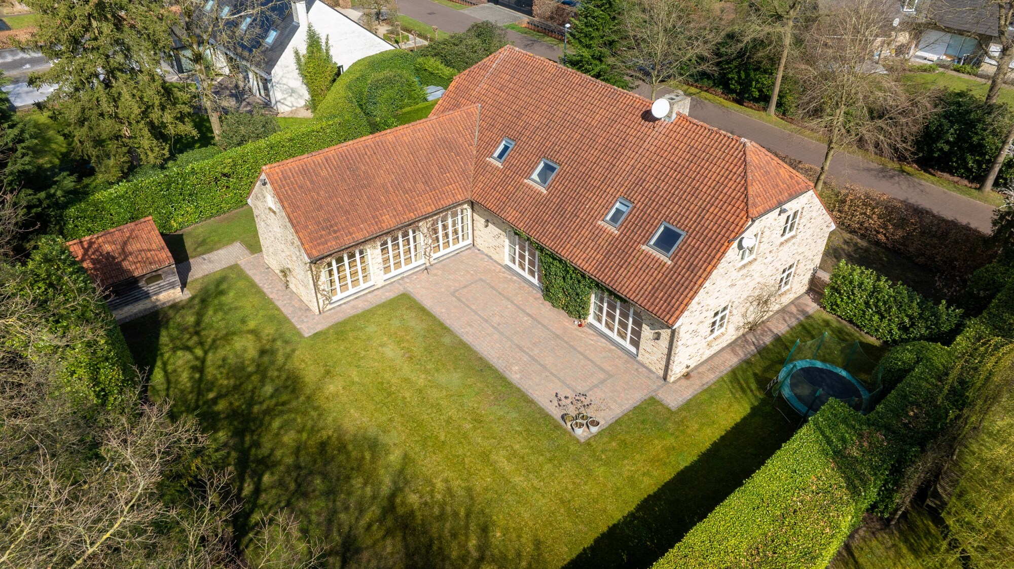 U geniet van absolute rust en privacy in deze mooi aangelegde tuin. Het grote terras aan de achterzijde van de woning geniet van optimale zuid west oriëntatie. Achteraan in de tuin is er nog een tuinhuisje en de oprit naast de woning biedt plaats aan meerdere auto's.