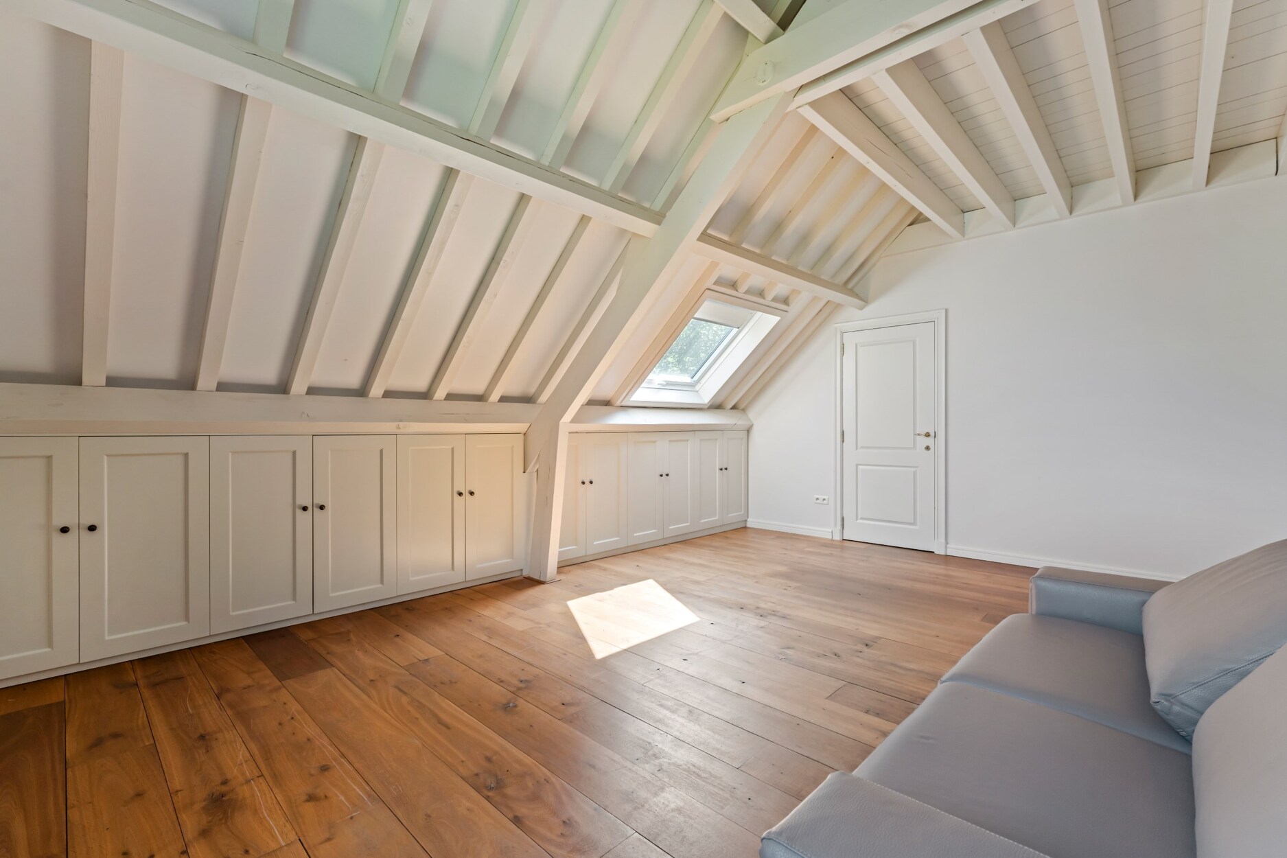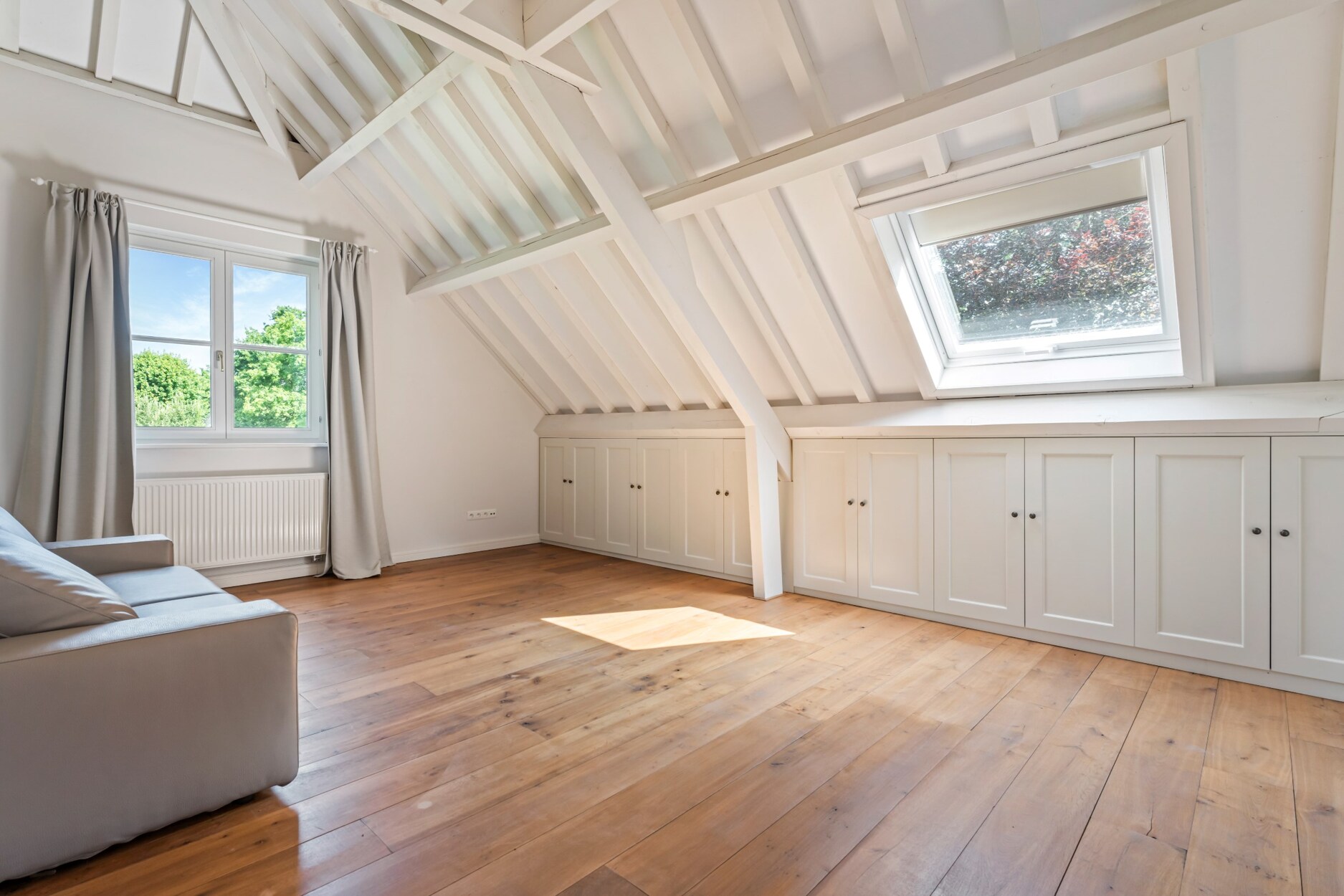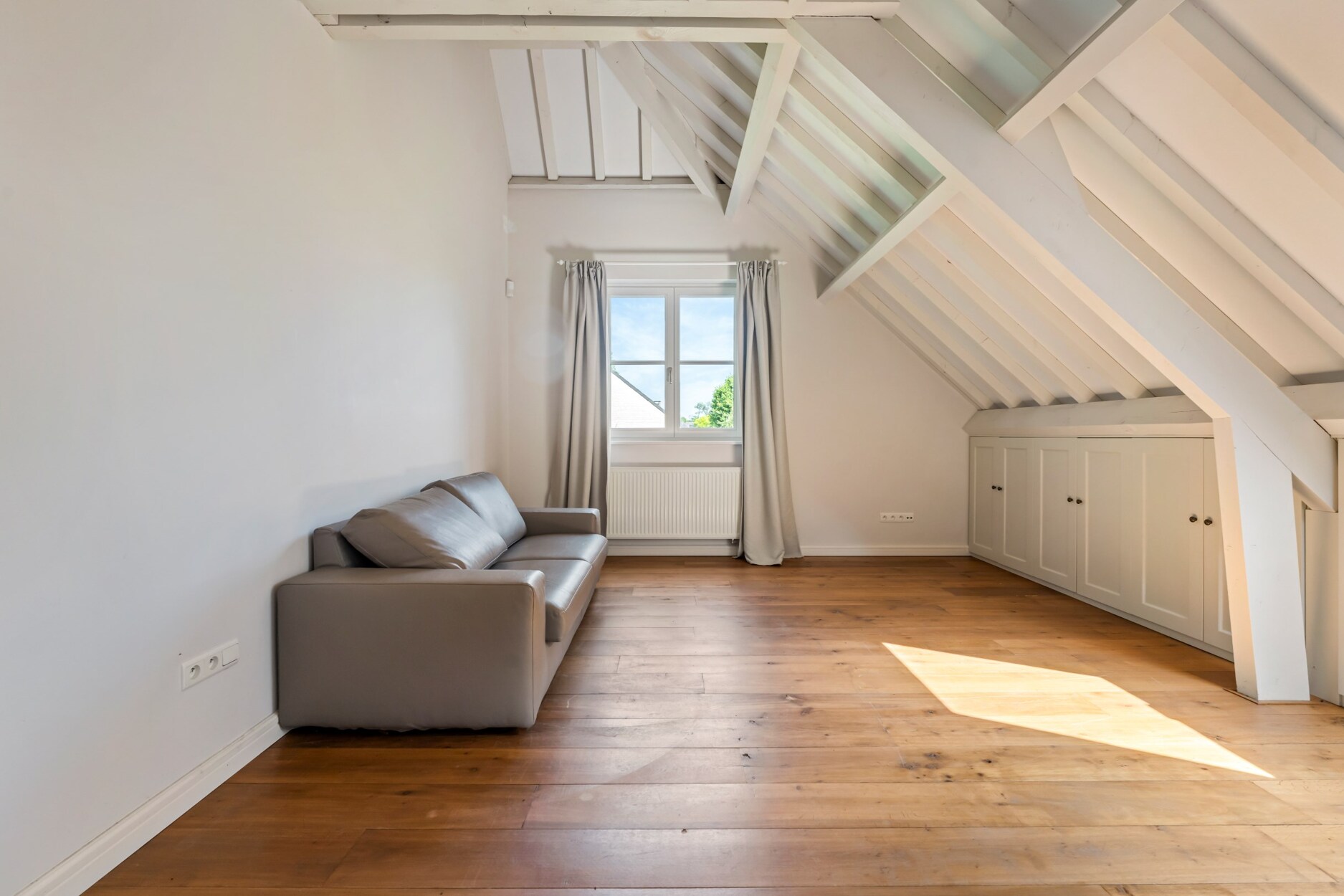 Het gedeelte boven de tuinkamer is ingericht met de 4de slaapkamer, dressing en de 3e badkamer. Dit gedeelte kan u eveneens bereiken via de trap die vertrekt vanuit de tuinkamer, alsook vanuit één van de andere slaapkamers.