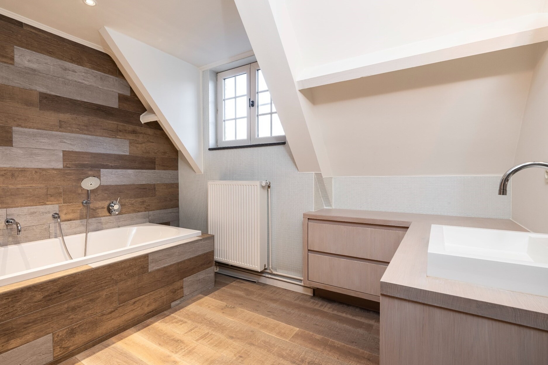 De verdieping telt drie ruime slaapkamers, waaronder een master suite met eigen badkamer en dressing. De andere kamers delen een tweede, volledig uitgeruste badkamer.