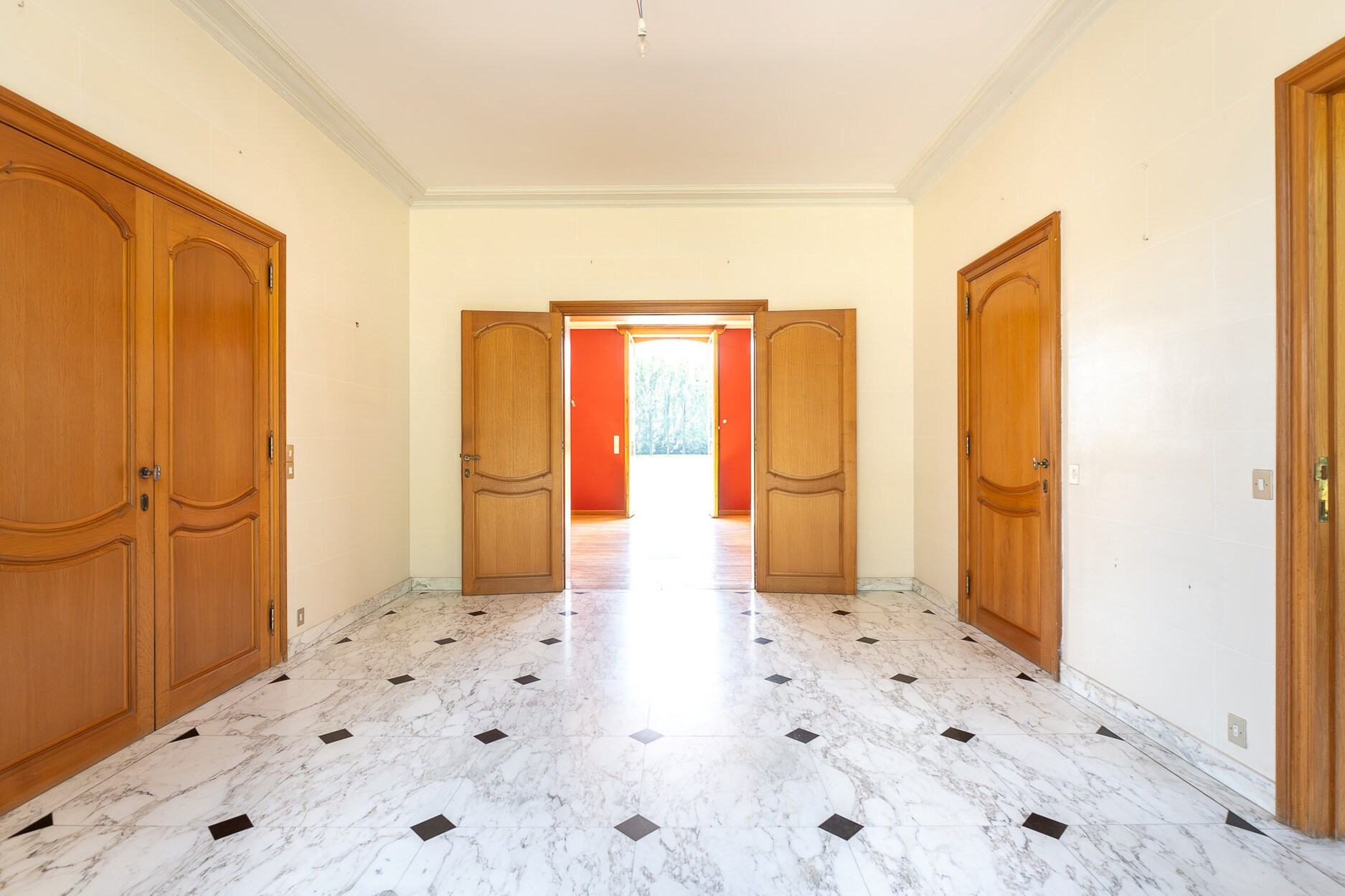 Het interieur bestaat uit een ruime inkomhal, een gezellig boudoir en een prachtige ontvangstsalon met natuurstenen open haard. Het huis telt zeven slaapkamers (waarvan twee op de begane grond en vijf op de verdieping), verschillende badkamers, een ingerichte keuken met bijkeuken en een functioneel kantoor. Een grote garage met plaats voor maximaal zes auto's maakt deze uitzonderlijke woning compleet, evenals een groot binnenzwembad.