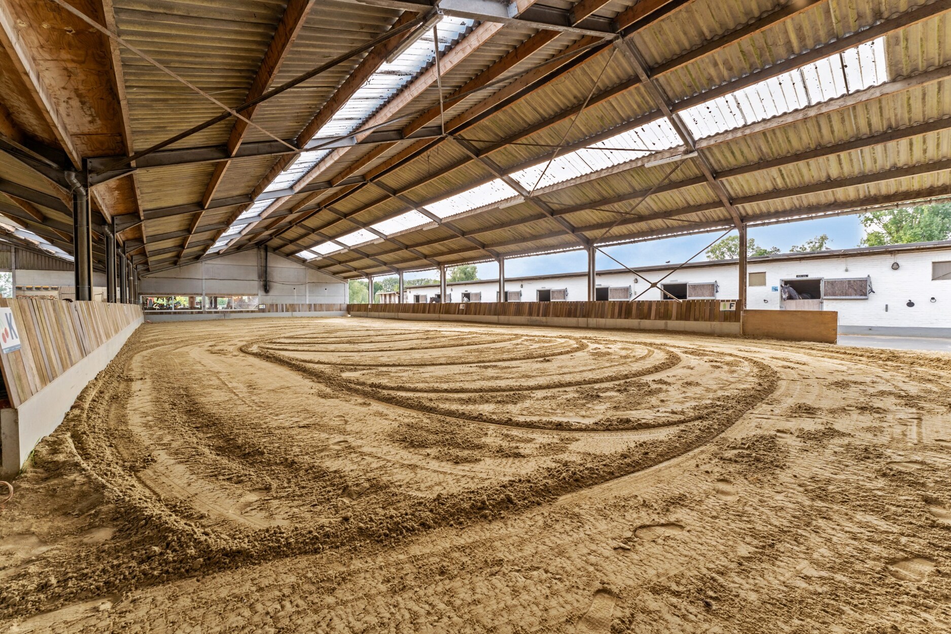 - Twee overdekte rijhallen van 20 x 50 m en 36 x 15 m