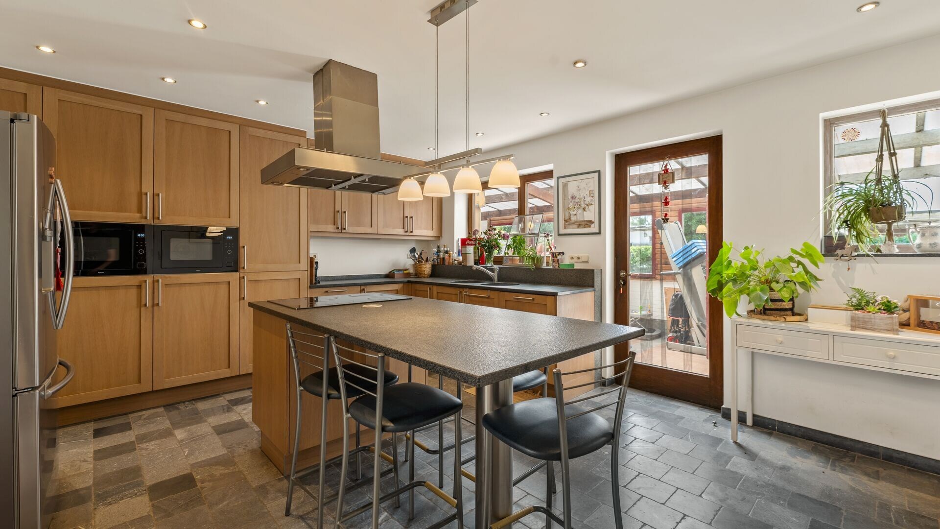- Aparte eetkamer en volledig uitgeruste keuken met modern kookeiland en kwaliteitsvolle toestellen