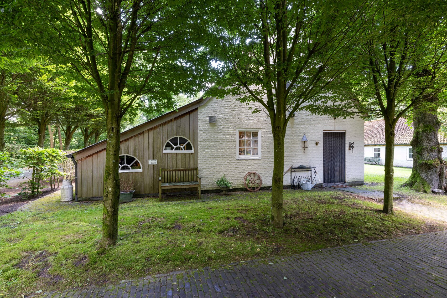 Groot bijgebouw met ingericht kantoor, en boven een studio met leefruimte/slaapkamer en ruime badkamer.