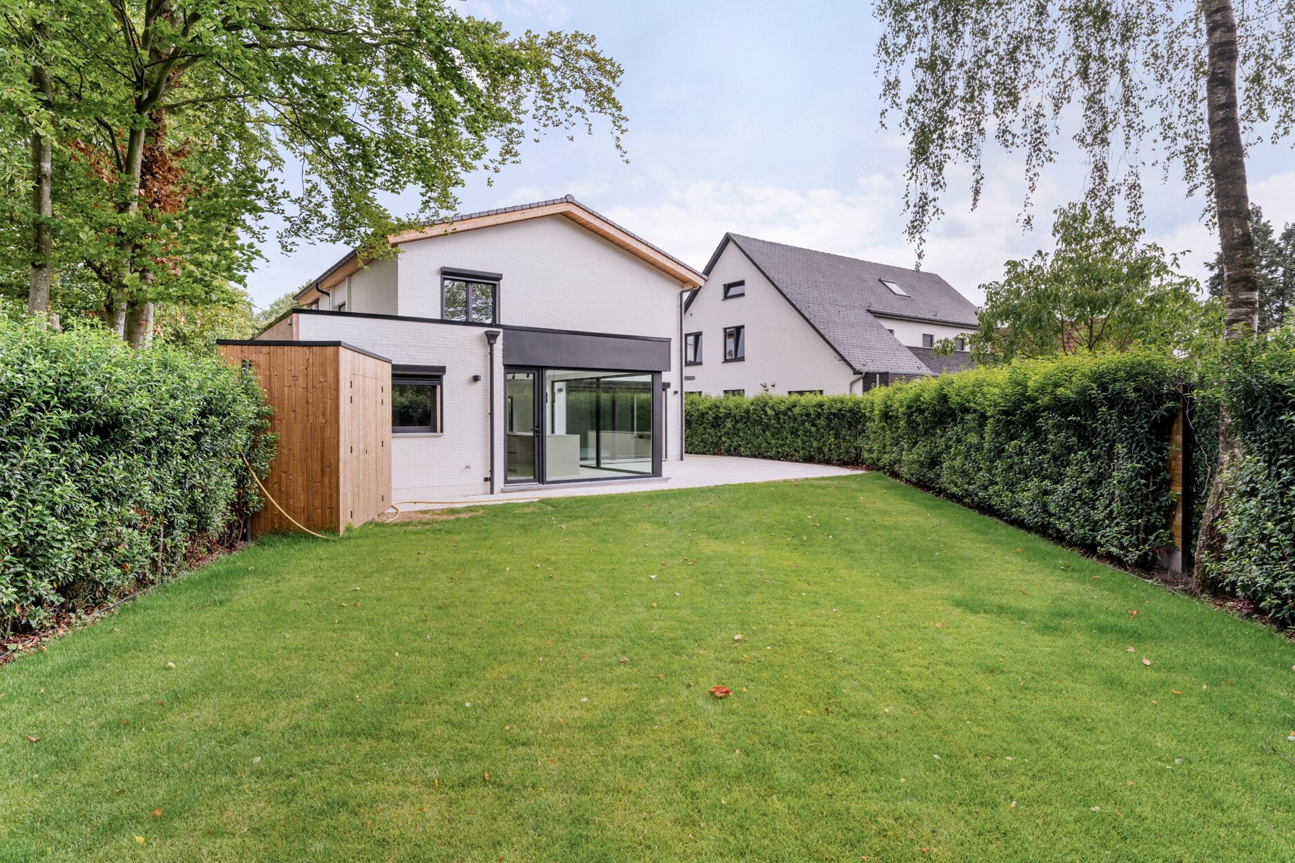 De tuin werd compleet heraangelegd, alsook het terras. Er werd ook een praktische tuinberging voorzien. Afgesloten toegangspoortje voorzien aan de linkerzijde van woning.