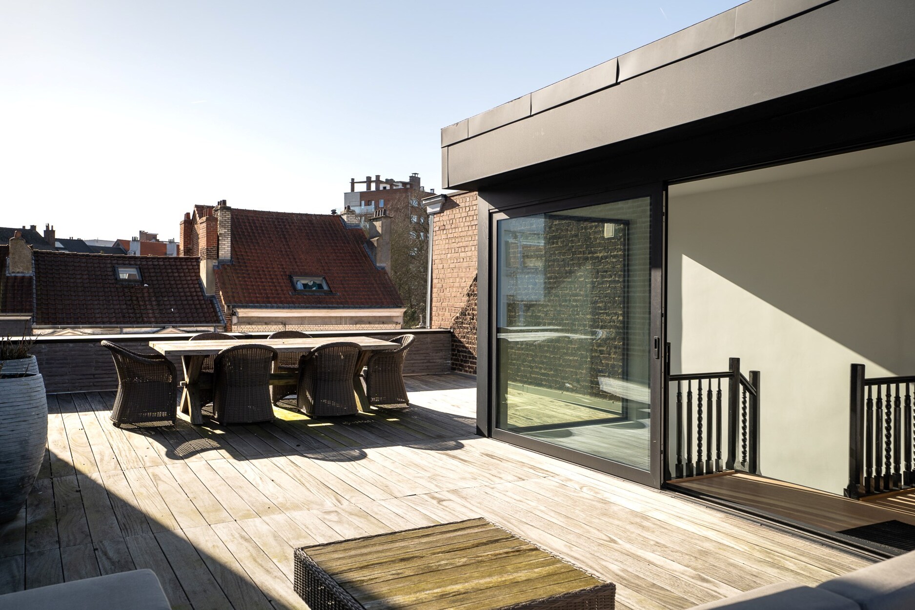 De bovenste verdieping wordt bekroond door een terras met vrij uitzicht en een gunstige oriëntatie voor dining en ontspanning.