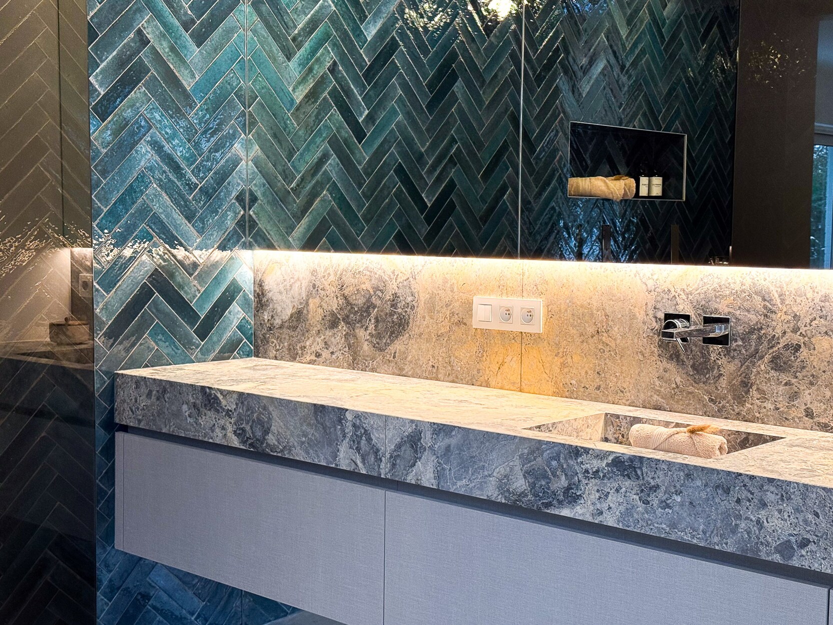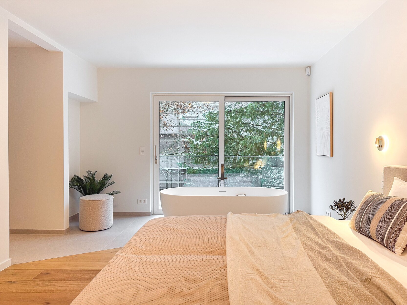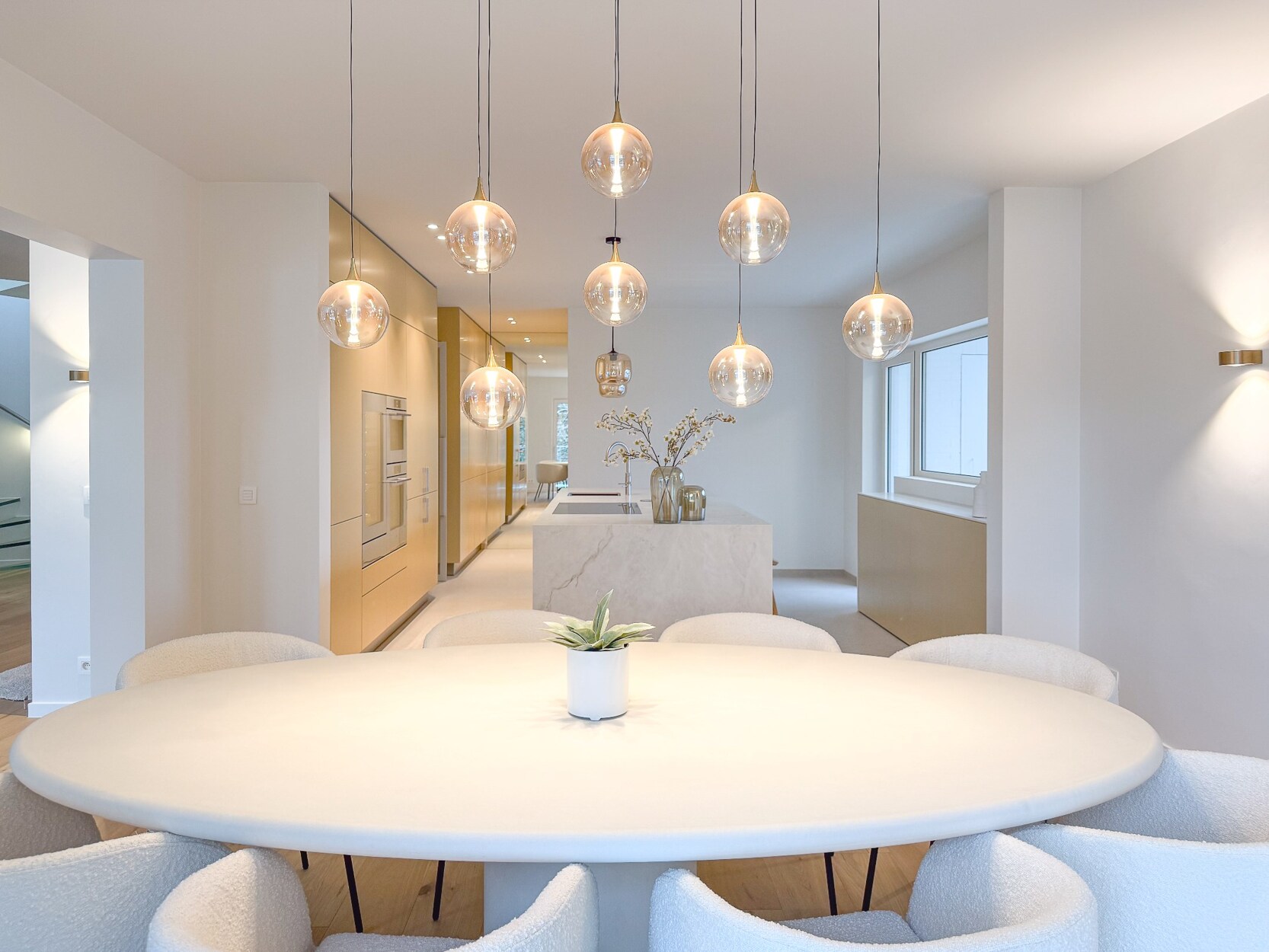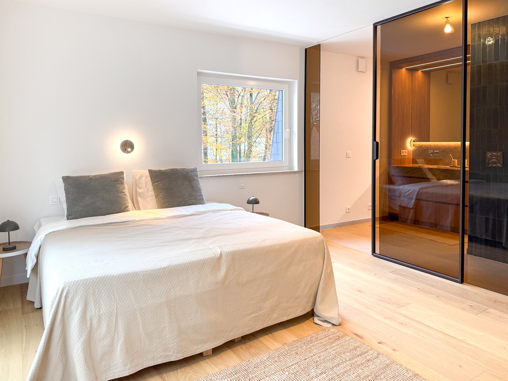 De penthouse verwelkomt u met een royale hal die toegang biedt tot perfect ontworpen leefruimtes. De Bulthaup keuken is uitgerust met hoogwaardige toestellen waaronder een Novy Panorama kookplaat, V-Zug ovens en wijnkast, en Quooker kokendwaterkraan. De keuken geeft uit op een balkon, terwijl de lichtrijke leefruimte een eetkamer en zitkamer met houtkachel en terrastoegang biedt.