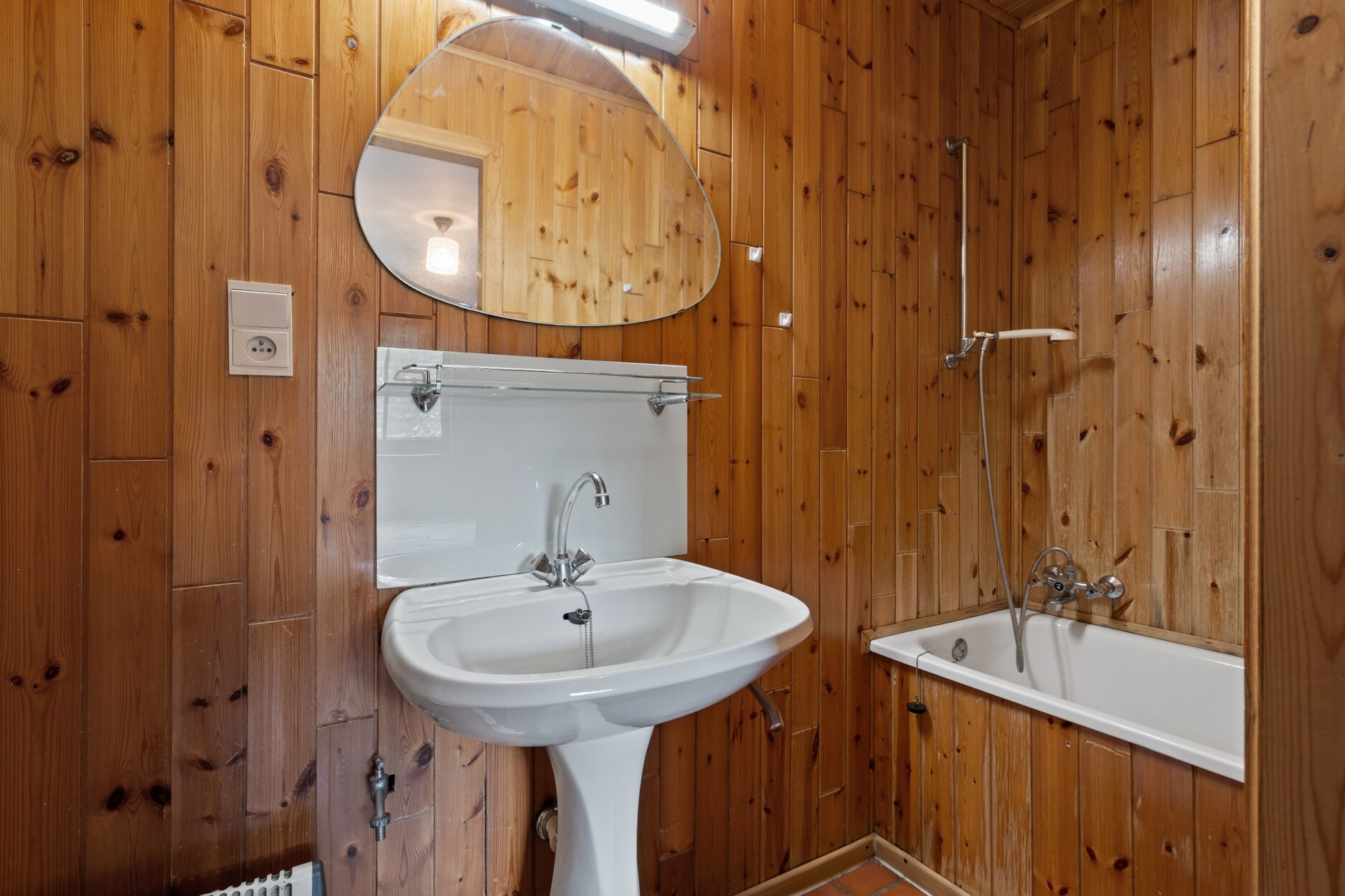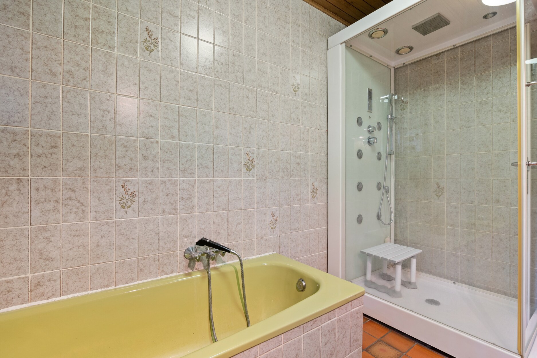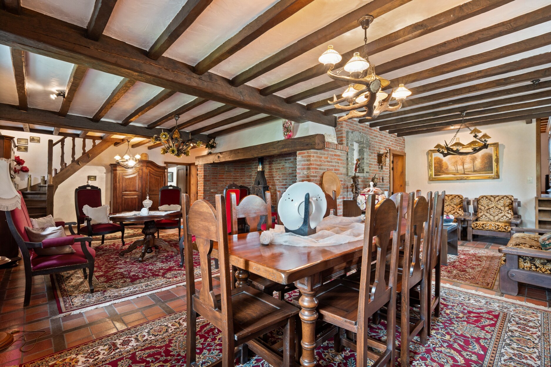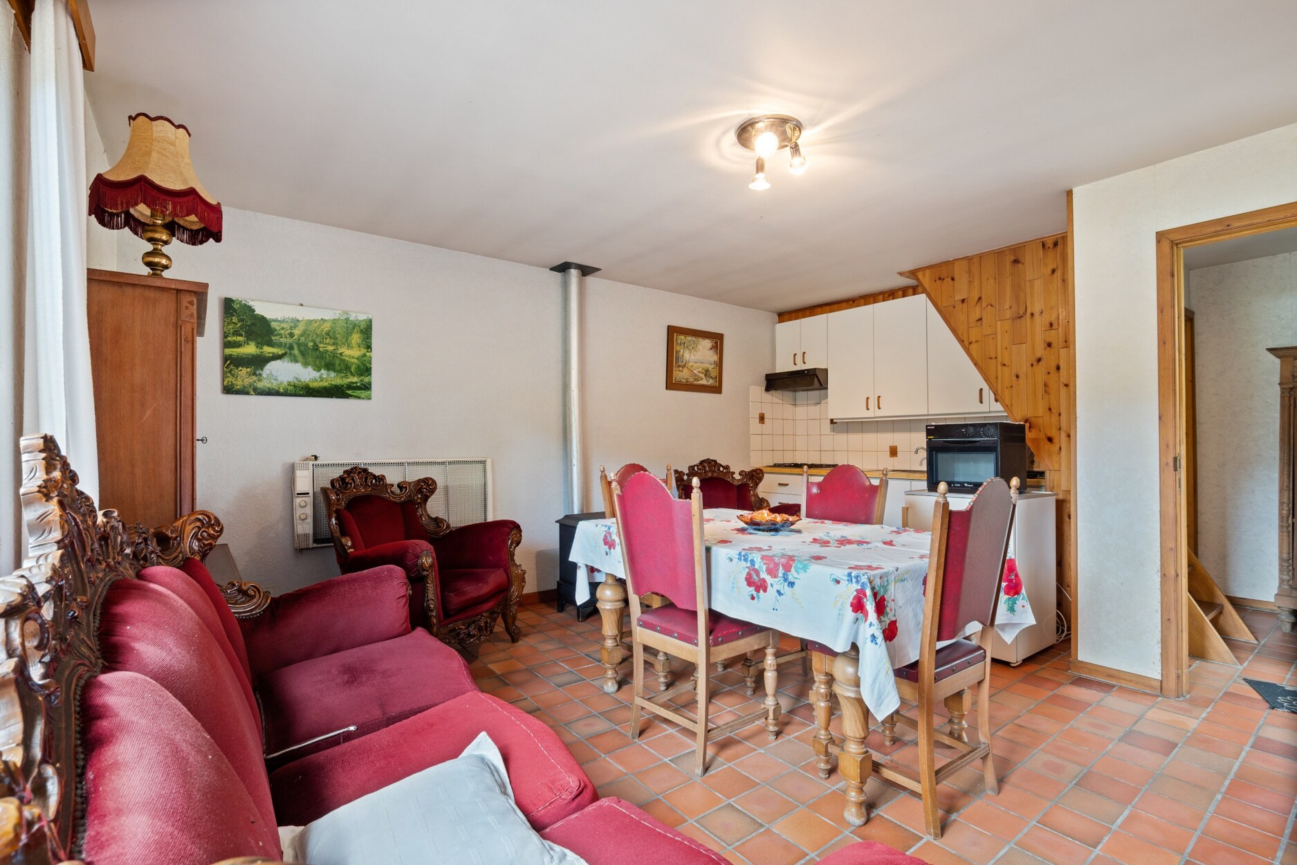 Via de voordeur komen we in de L-vormige leefruimte met houthaard. Hier is een vaste trap voorzien naar de zolder. De woonkamer staat in verbinding met de 3 slaapkamers en de eetkamer. Rechts in de woonkamer is de eerste kelder te bereiken, ideaal als wijnkelder. De eetkamer heeft een mooi uitzicht op de achterliggende grond. Hier sluit ook de veranda aan. De keuken is authentiek en voorzien van alle toestellen. De badkamer heeft een douchecabine, bad en wastafel. Het toilet is gelegen naast de badkamer. De aanpalende garage biedt voldoende plaats voor 2 wagens en meer opbergruimte.