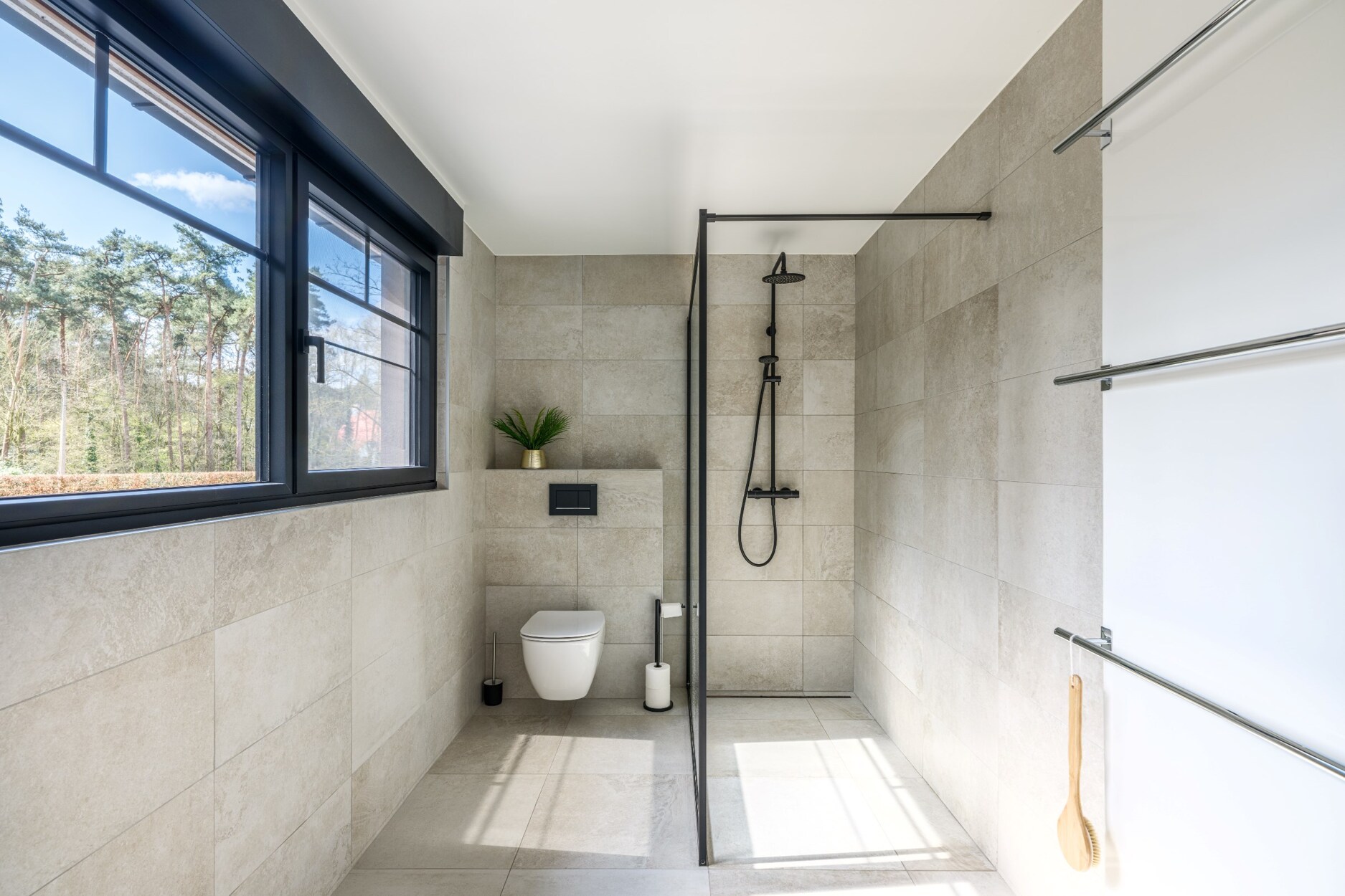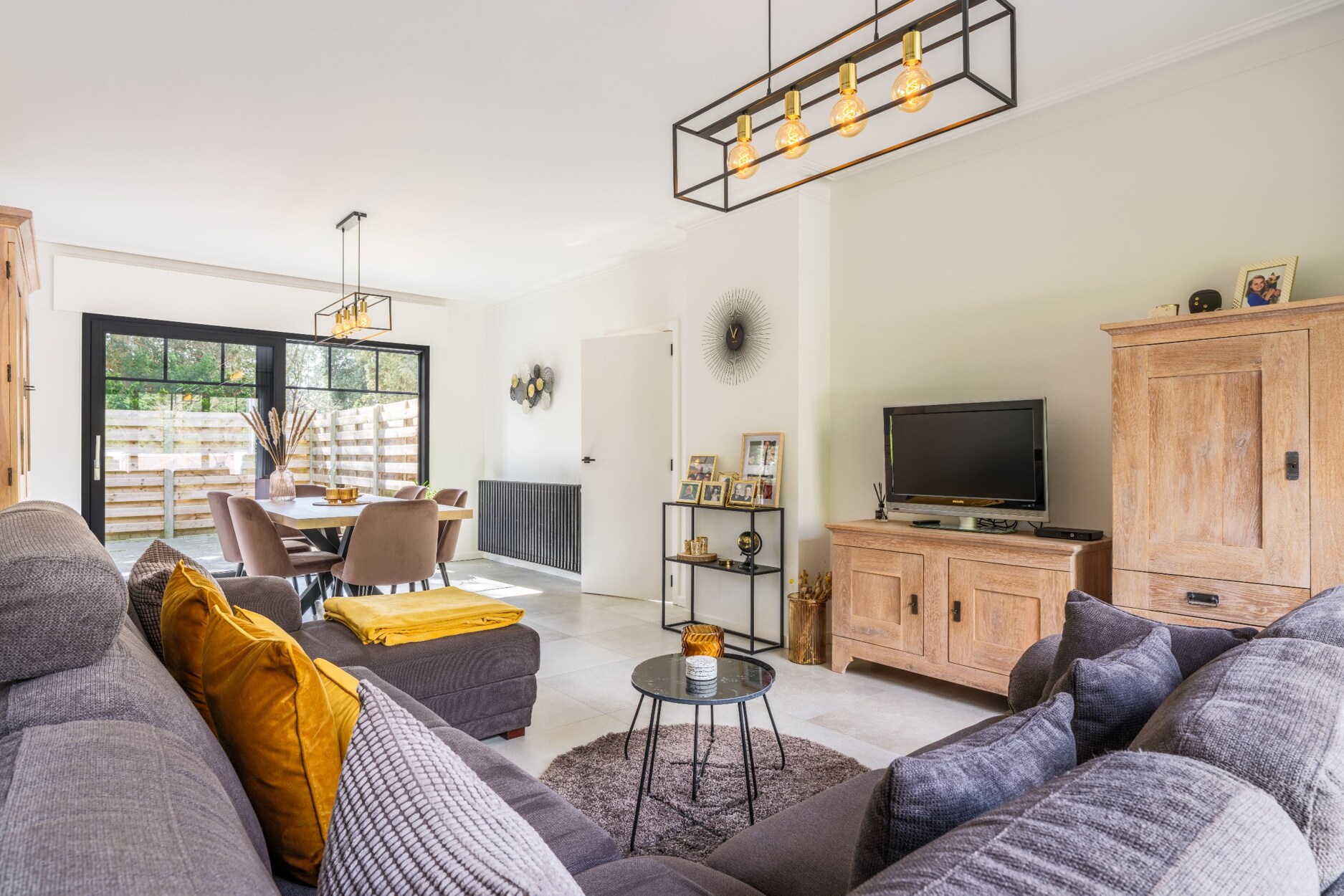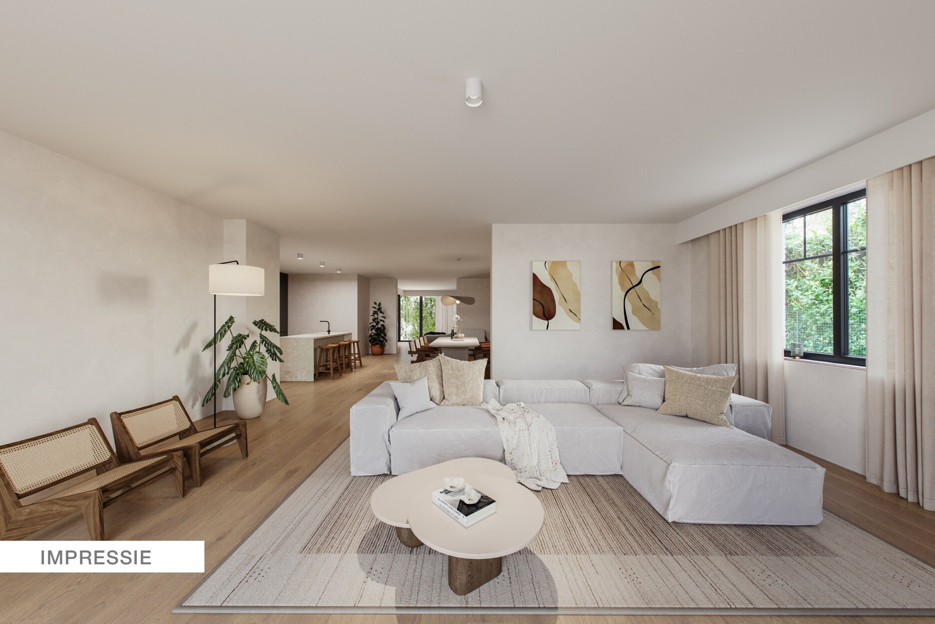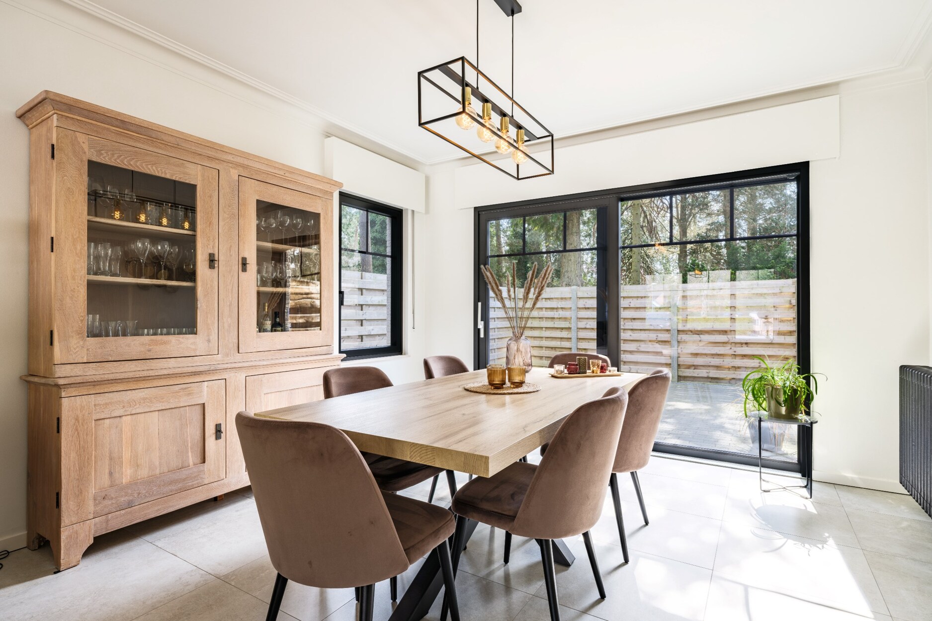 Ruime veranda met grote glaspartijen die zorgen voor een prachtig uitzicht op de tuin. Een ideale plek om in alles seizoenen te genieten van het buitenleven met veel natuurlijk daglicht.