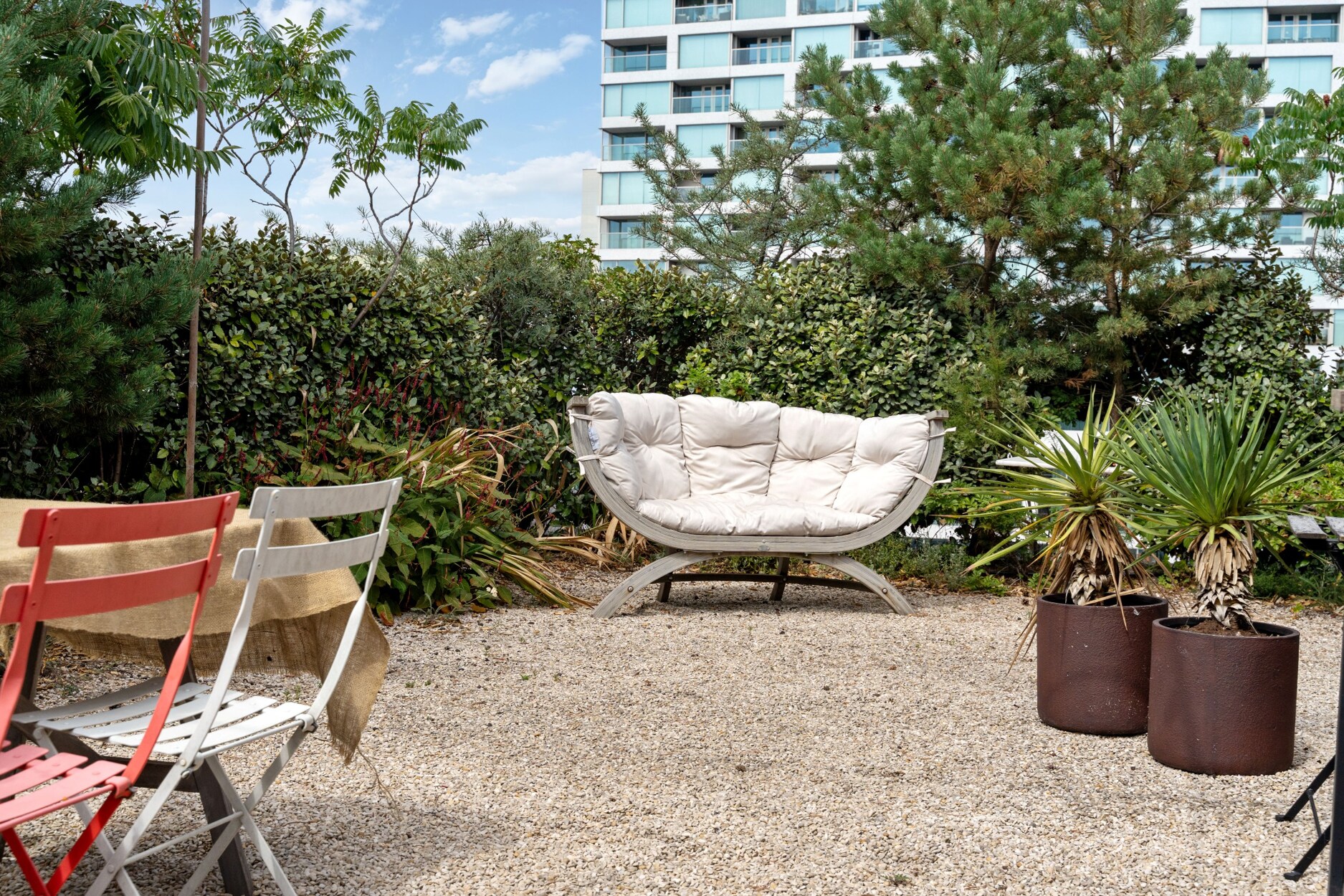 Op de zevende verdieping ligt een tweede ruime slaapkamer of bureau, volledig omgeven door de daktuin en terrassen van ca. 172m², een plek die uitnodigt tot rust en inspiratie temidden van de stad.