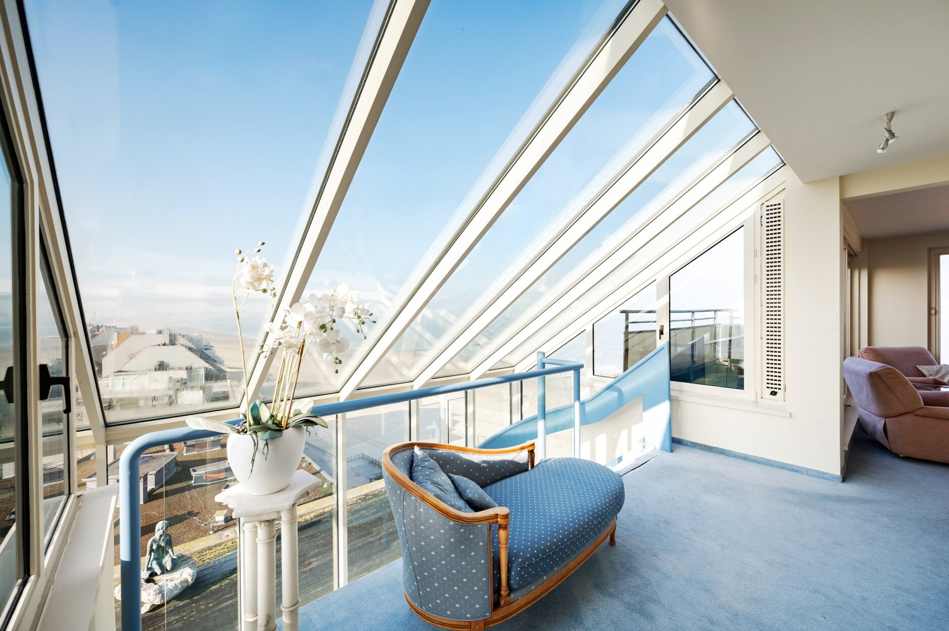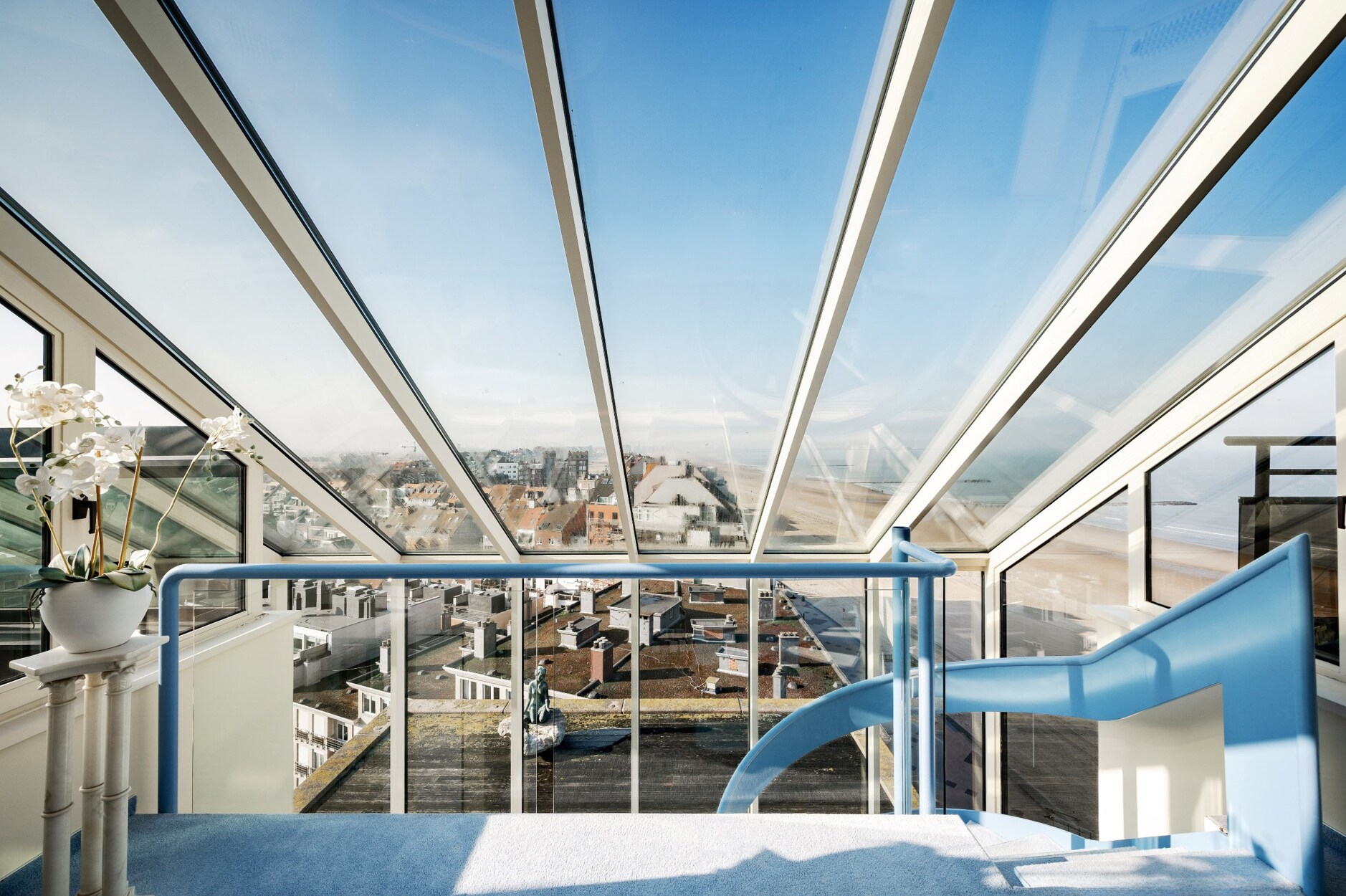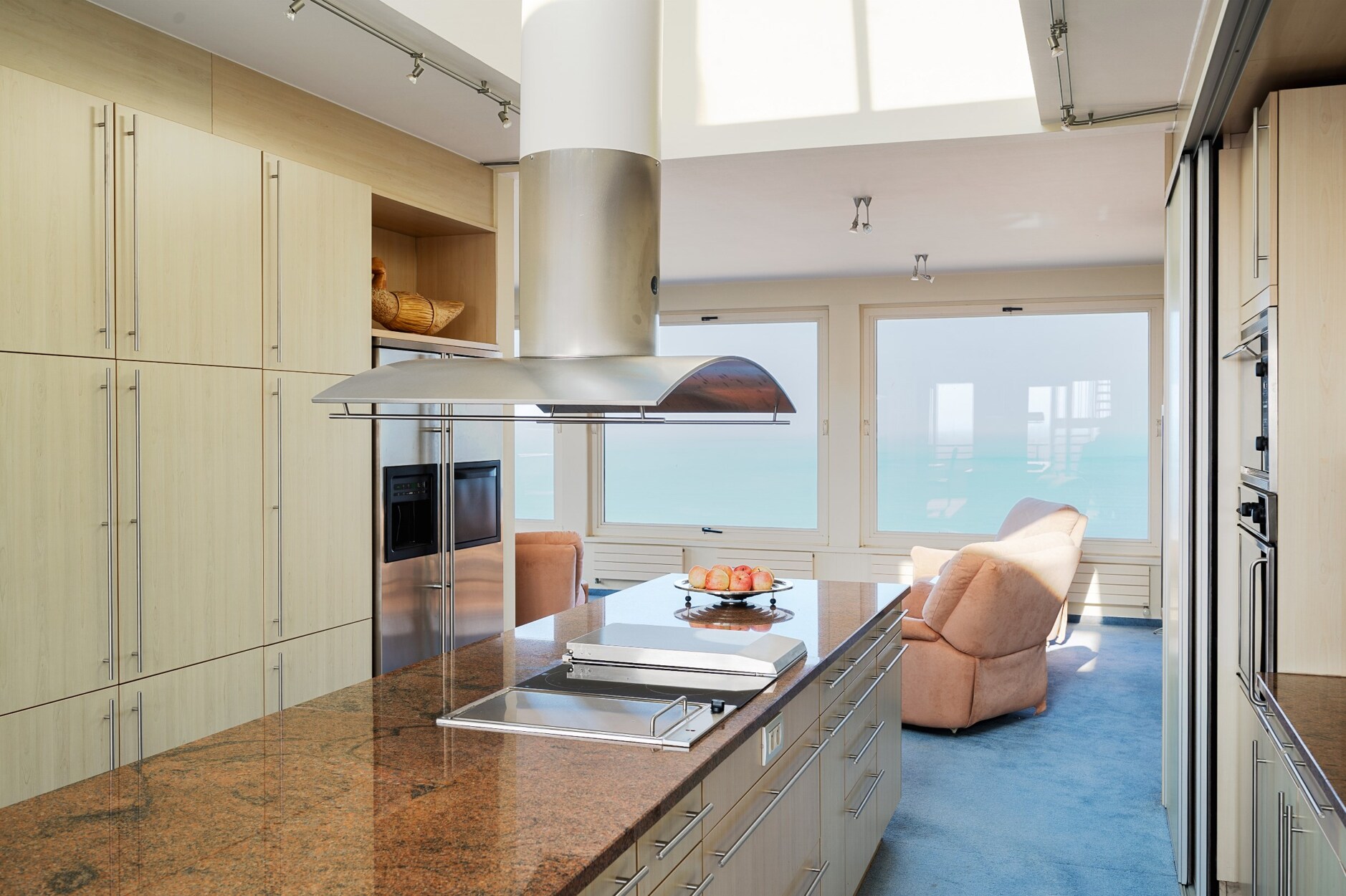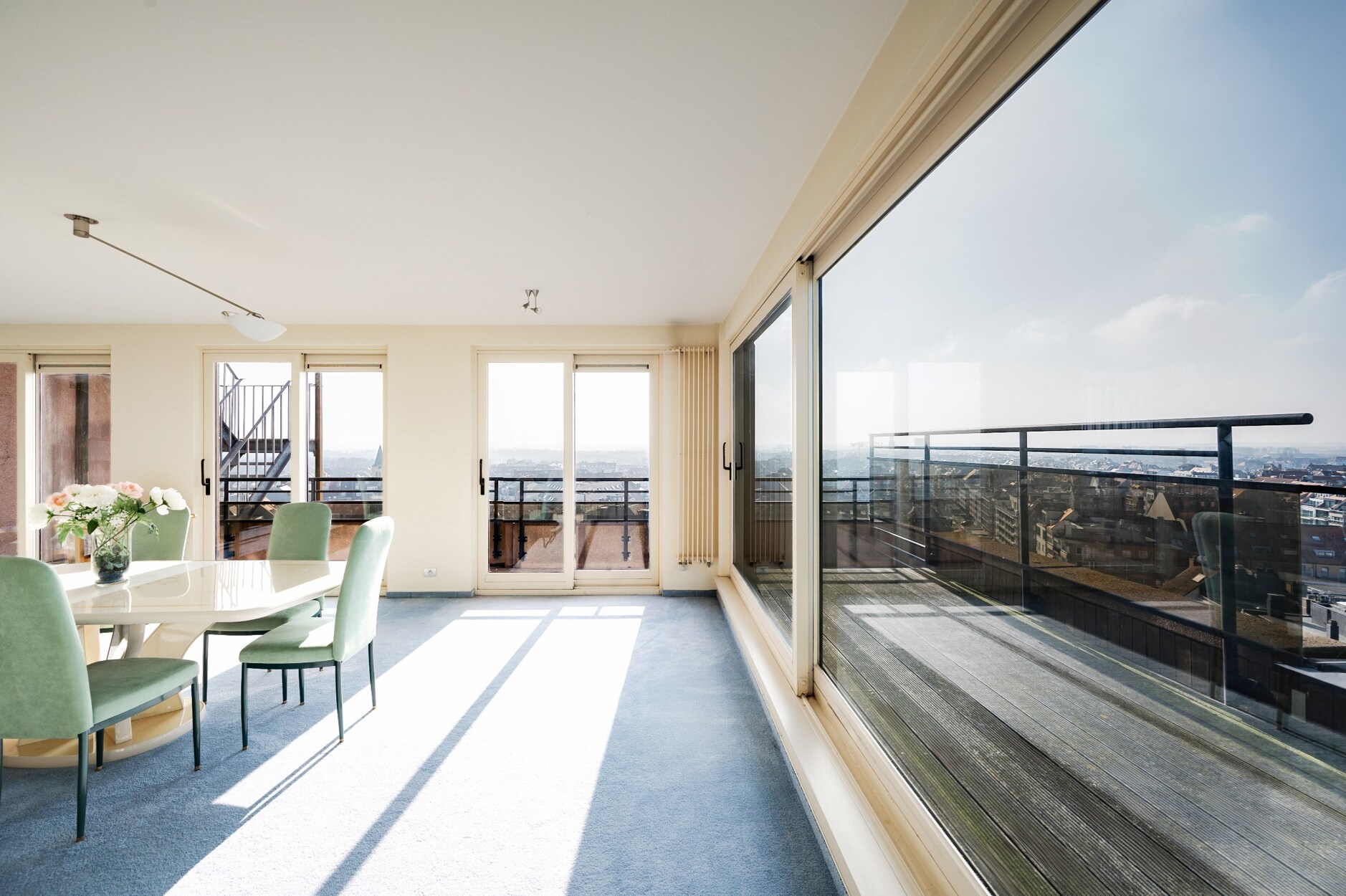 Bij binnenkomst op de 12de verdieping word je meteen verwelkomd door een indrukwekkende trap en een fenomenaal uitzicht. De lichtrijke leefruimte biedt een frontaal zeezicht, waardoor je dag in, dag uit geniet van een uniek uitzicht. De moderne open keuken met centraal eiland baadt in het daglicht dankzij een grote koepel en royale raampartijen. Aansluitend bevindt zich de eetkamer, omringd door ruime terrassen, ideaal voor gezellige diners met zicht op de horizon.