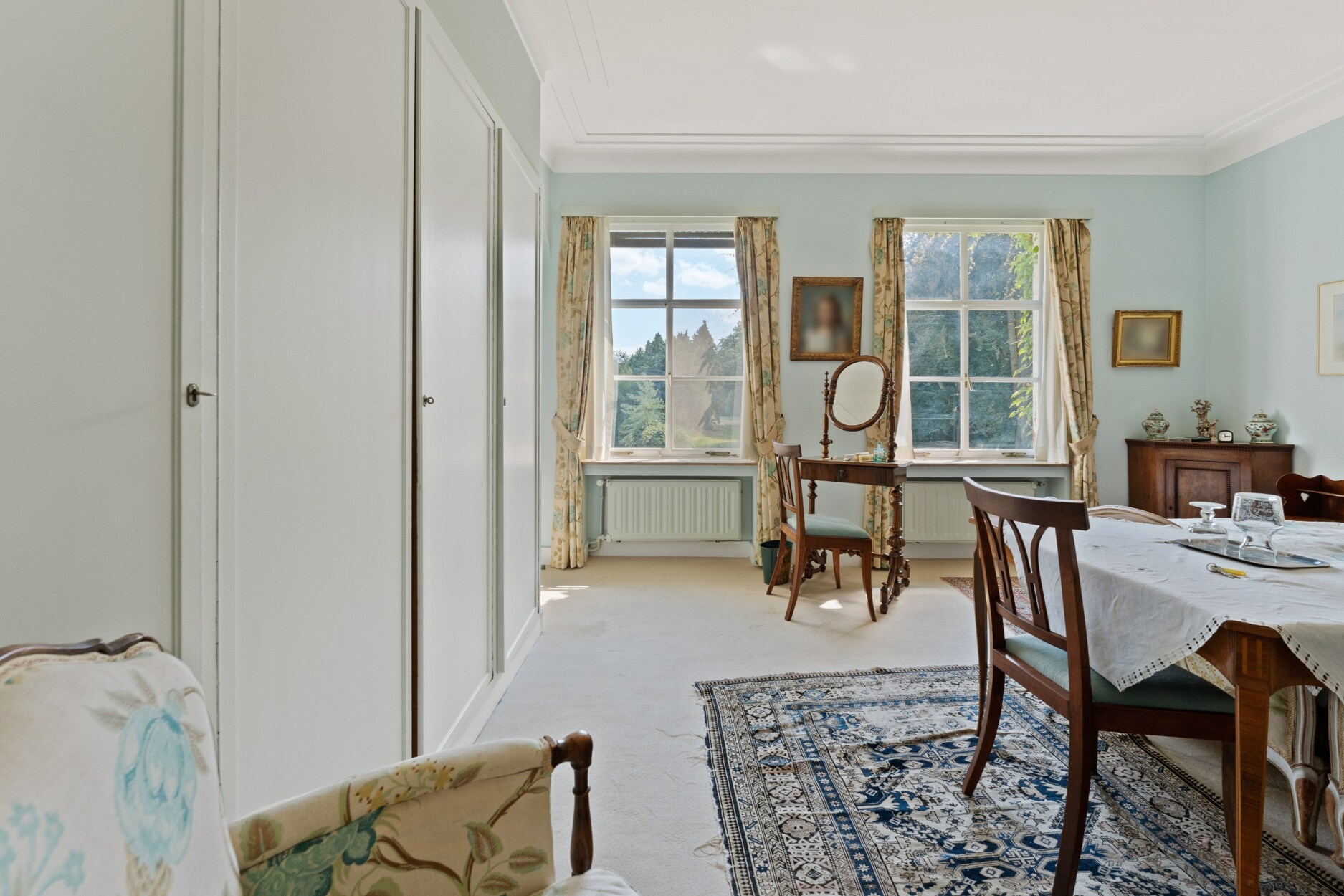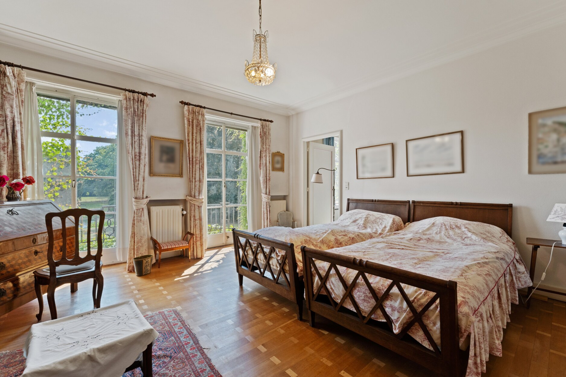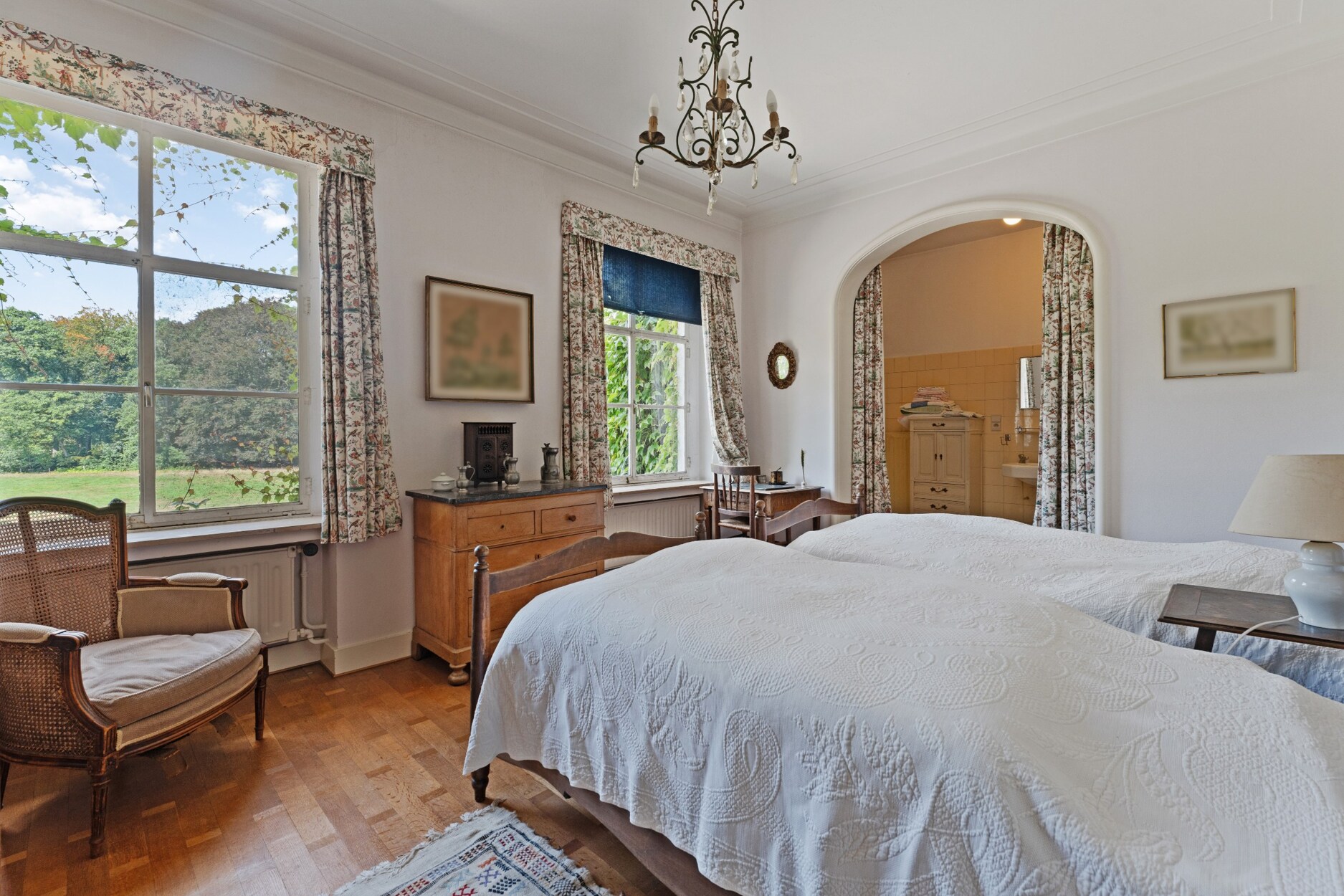Op de eerste verdieping bevinden zich vier ruime slaapkamers, elk met verfijnde details en en-suite badkamers. Eén kamer beschikt bovendien over een open haard en balkon. Aanvullend zijn er drie kinderkamers en een hobbyruimte, bereikbaar via een aparte trap. De zolderverdieping biedt bijkomende kamers; logeerruimtes, personeelsvertrekken of bergruimtes.