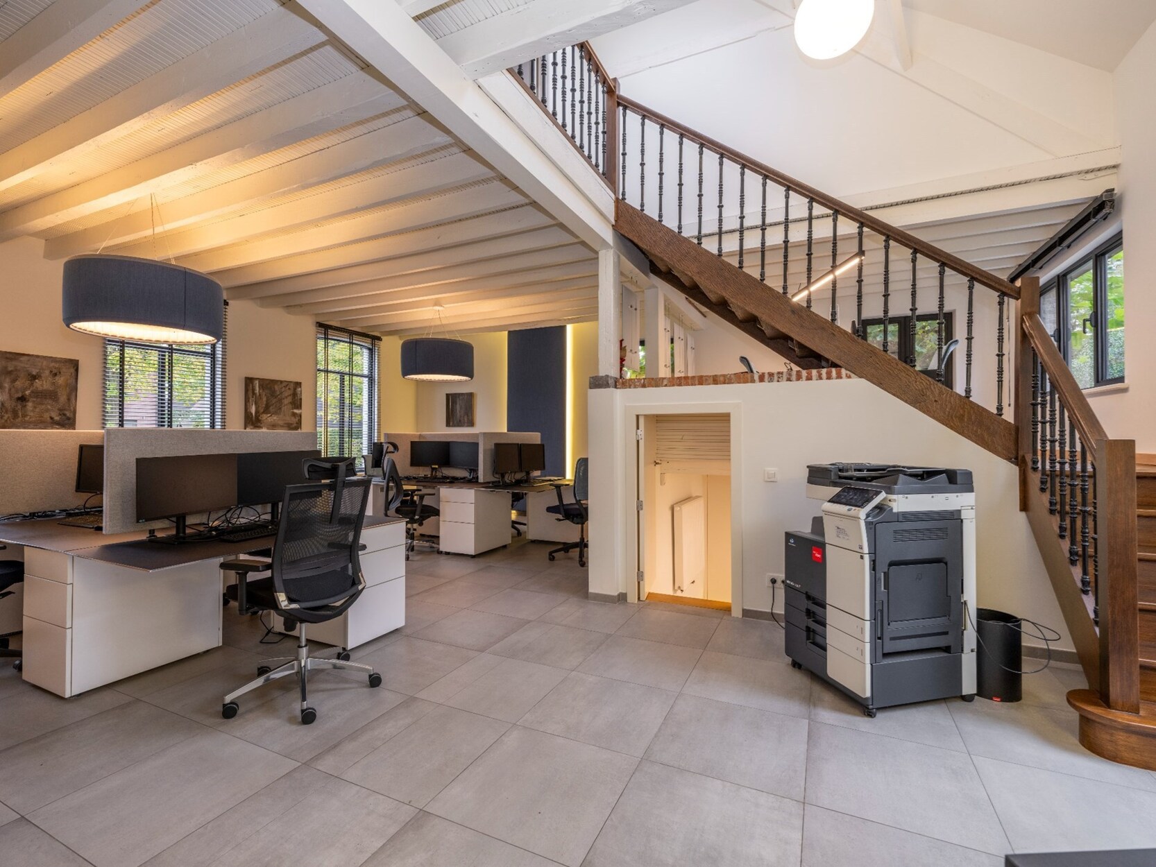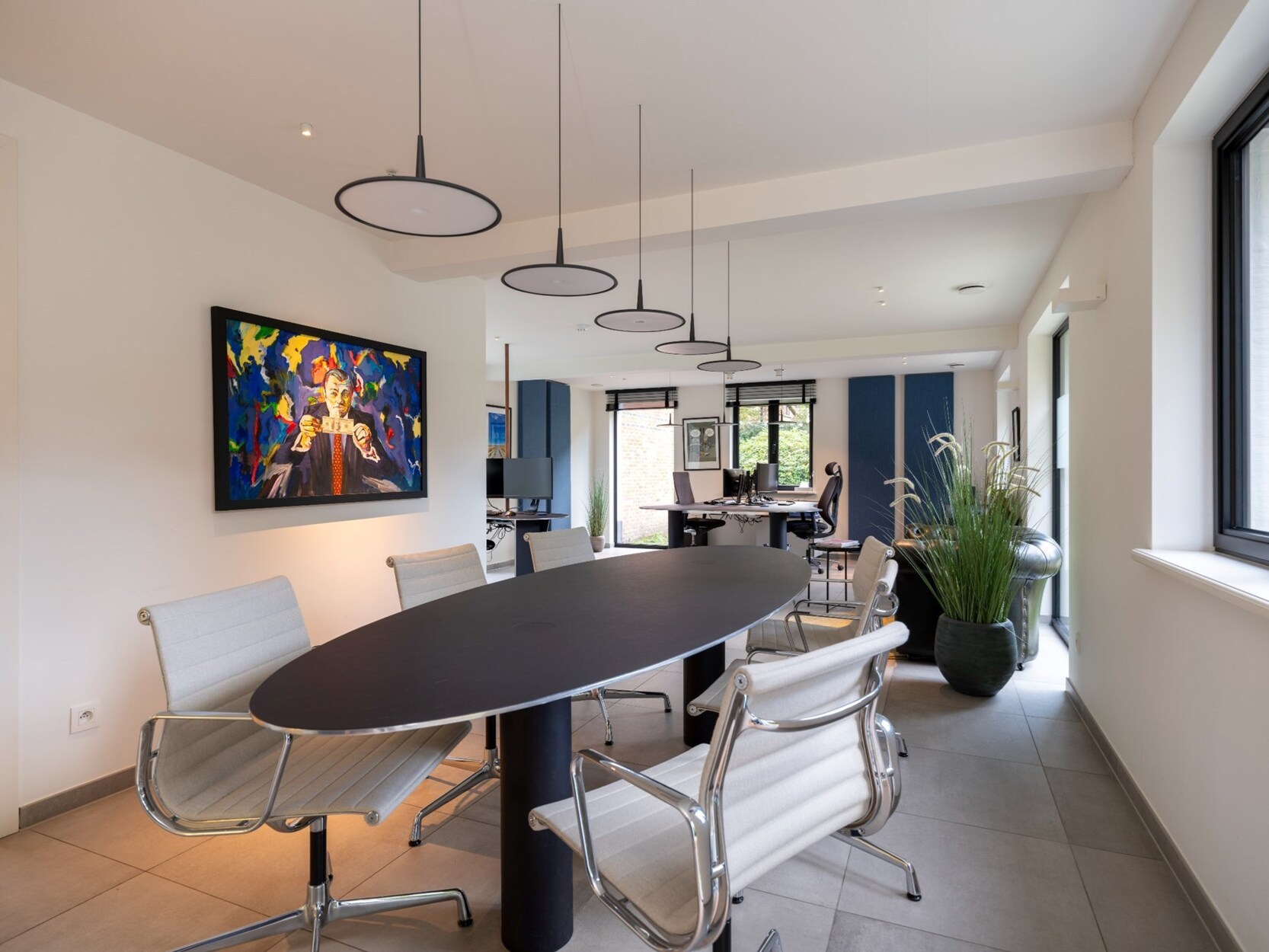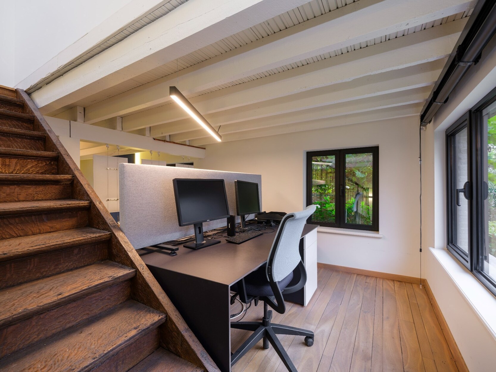 Via een binnentrap bereikt men de eerste etage dewelke evenzo volledig instapklaar is. Deze eerste verdieping is ingedeeld in een vergaderruimte, een open office, zithoek, berging en badkamer.