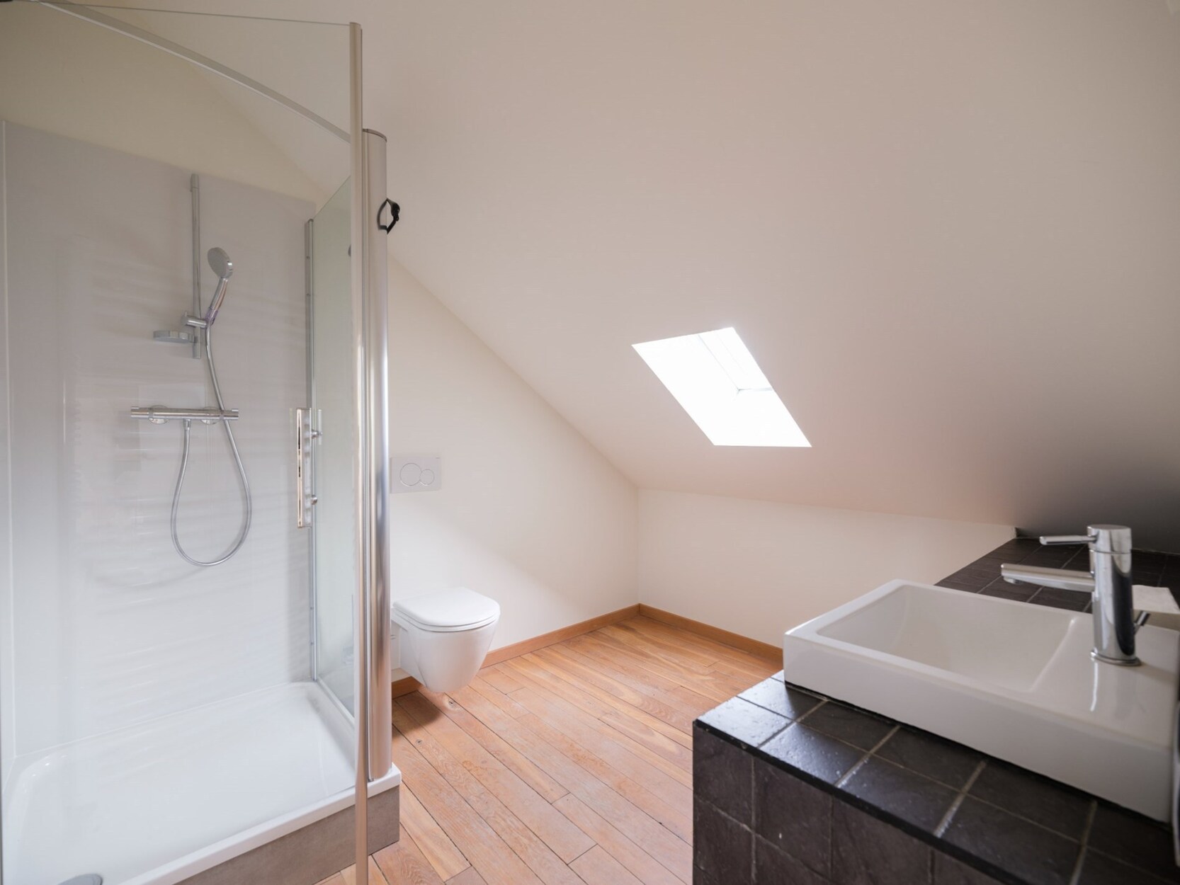 Boven is er een open afgewerkte ruimte die als slaapvertrek met dressing en met de reeds aanwezige badkamer als masterbedroom, studio of kangeroegedeelte kan gebruikt worden.
