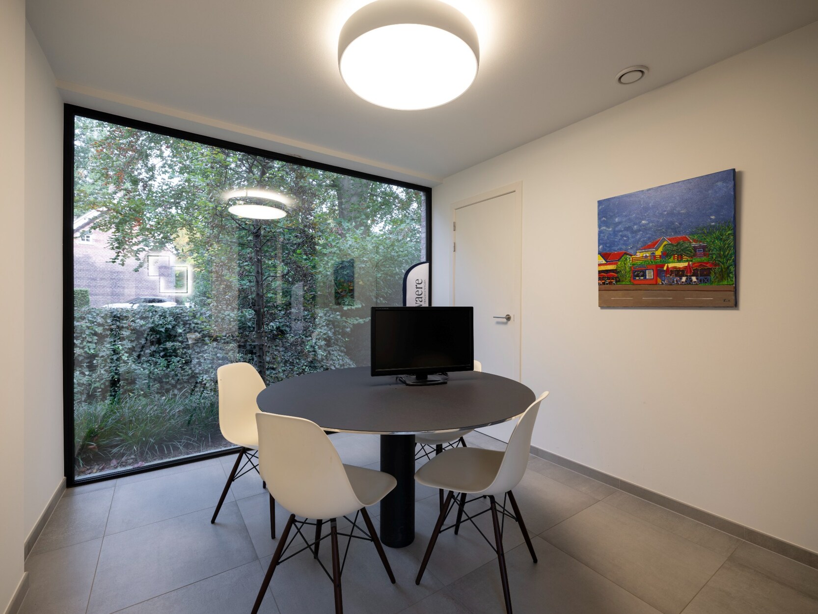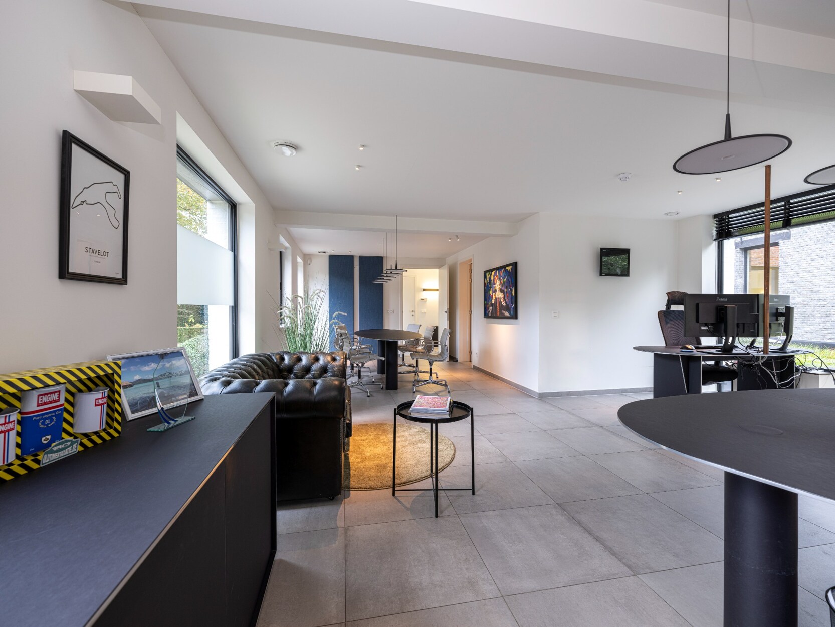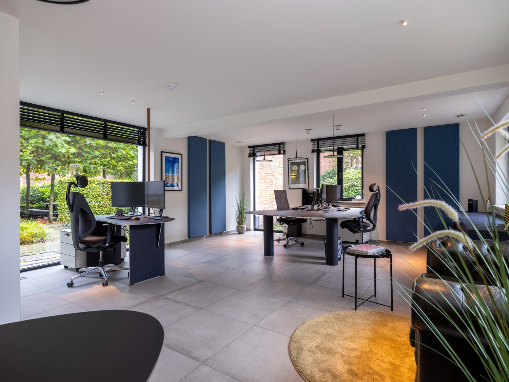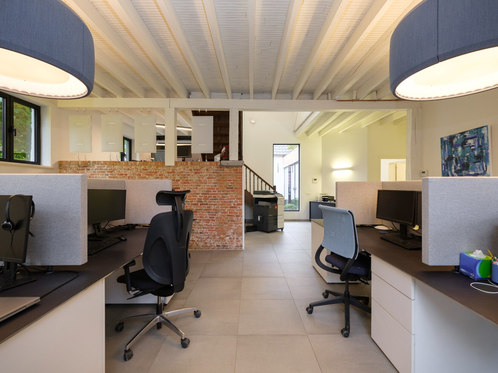 Via een binnentrap bereikt men de eerste etage dewelke evenzo volledig instapklaar is. Deze eerste verdieping is ingedeeld in een vergaderruimte, een open office, zithoek, berging en badkamer.