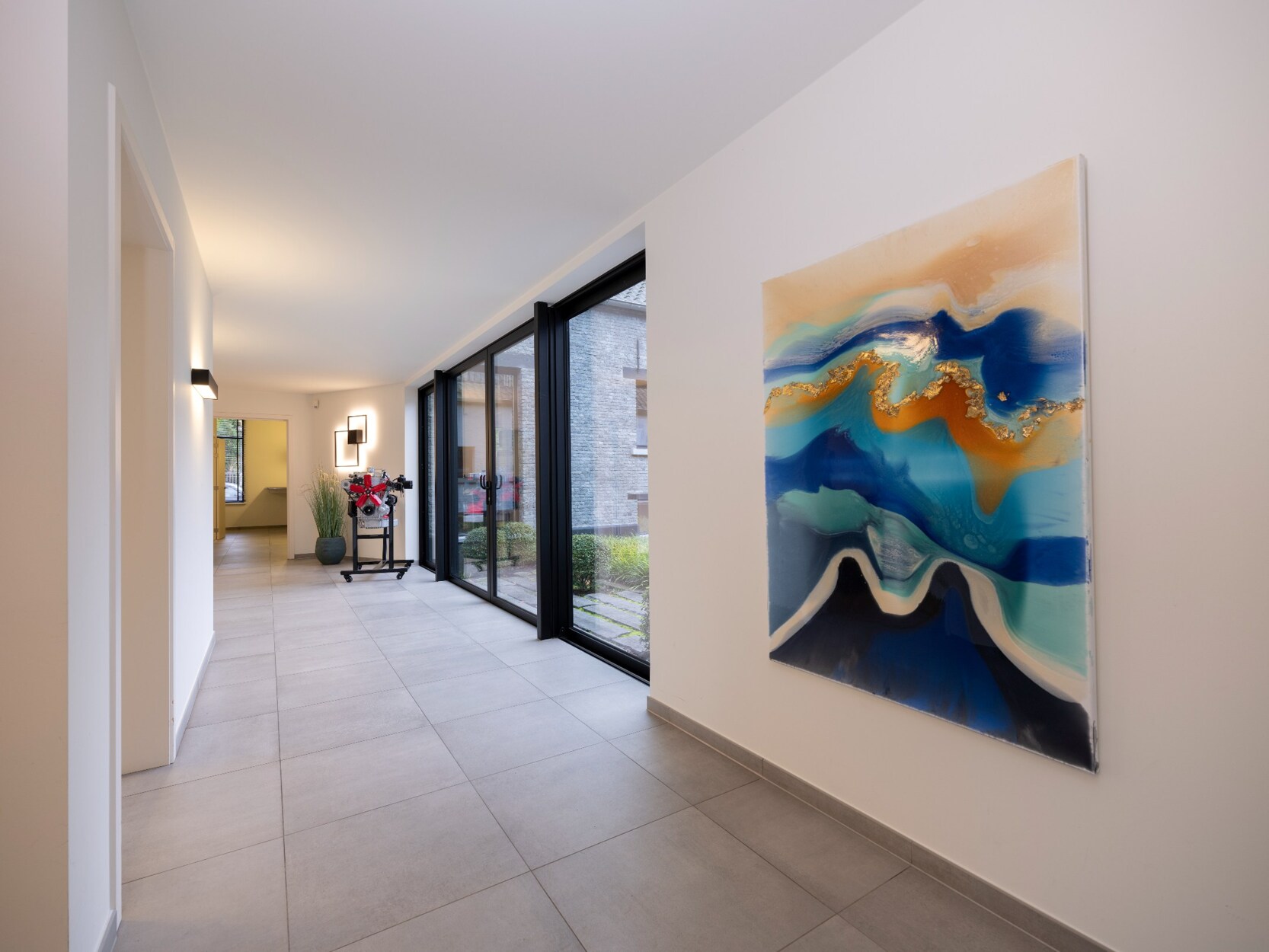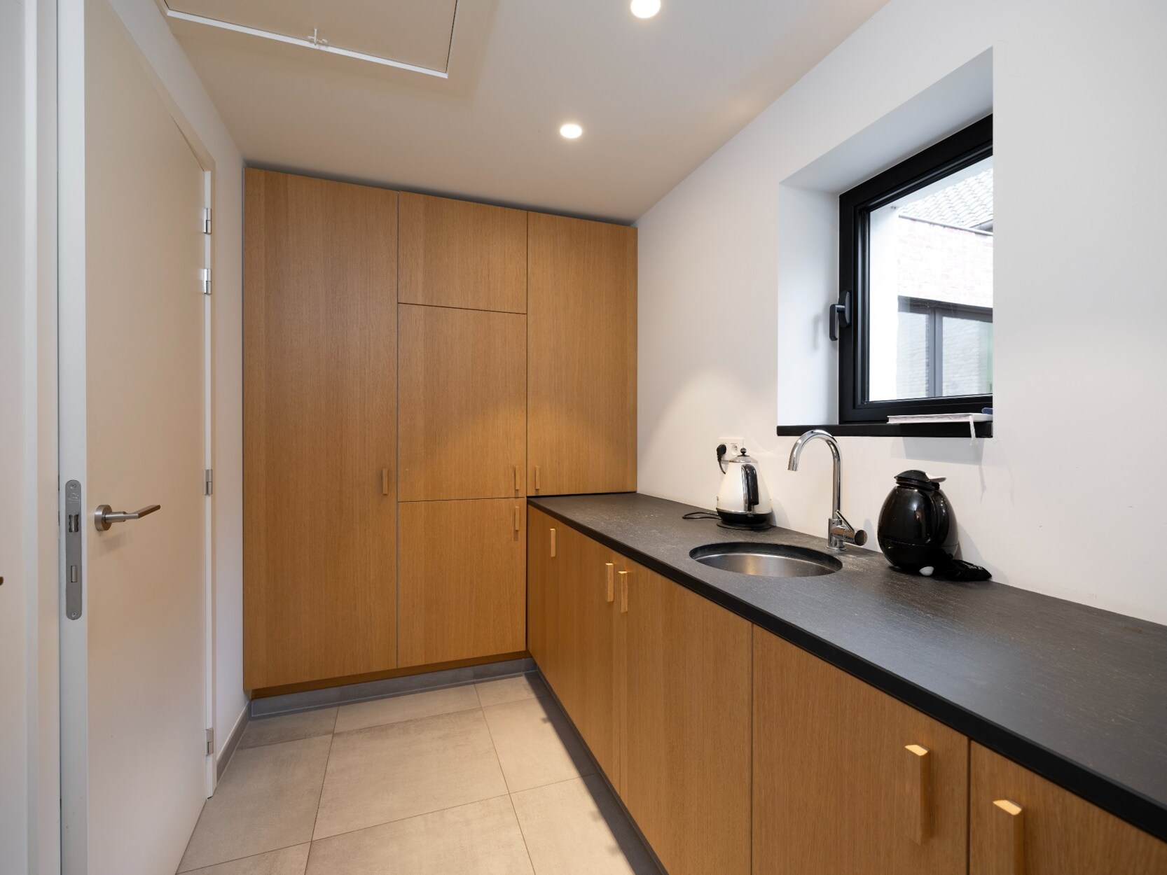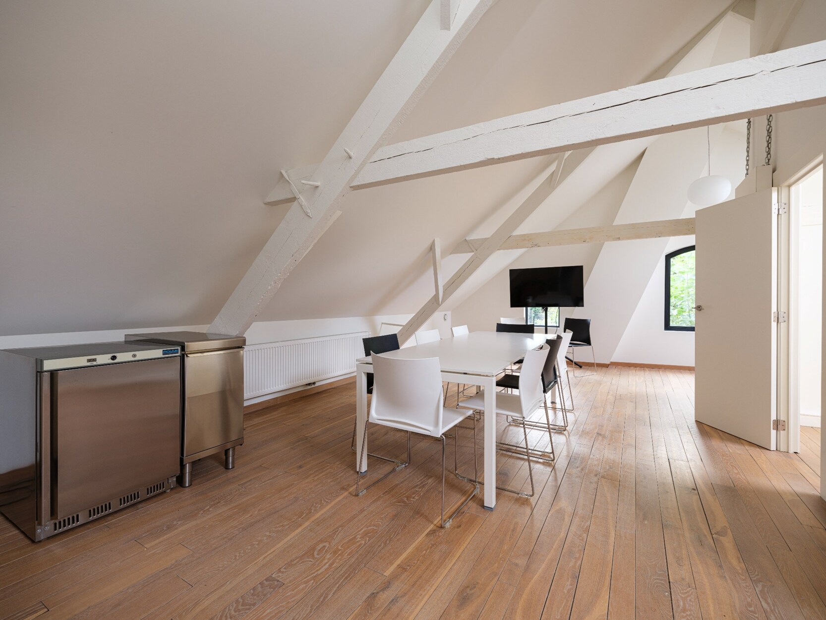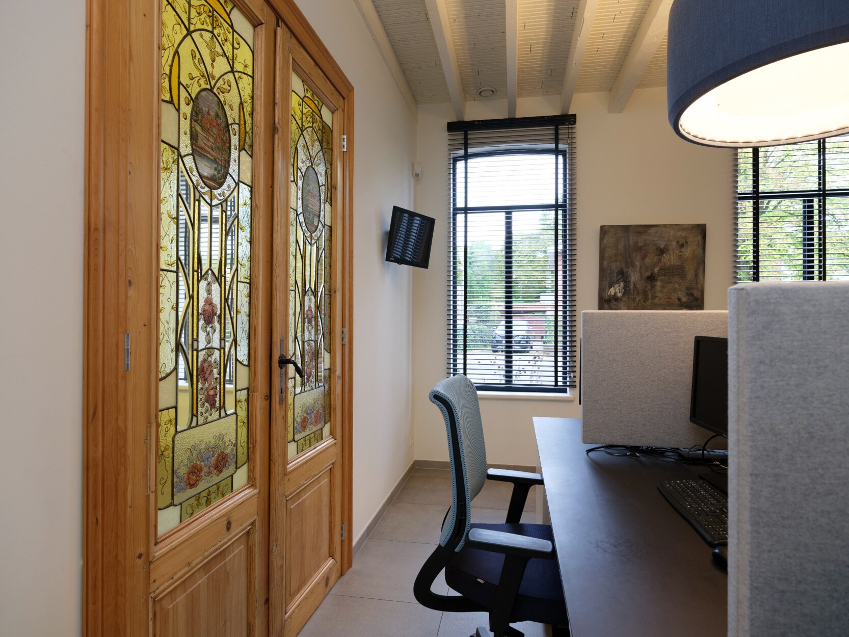 Via een binnentrap bereikt men de eerste etage dewelke evenzo volledig instapklaar is. Deze eerste verdieping is ingedeeld in een vergaderruimte, een open office, zithoek, berging en badkamer.
