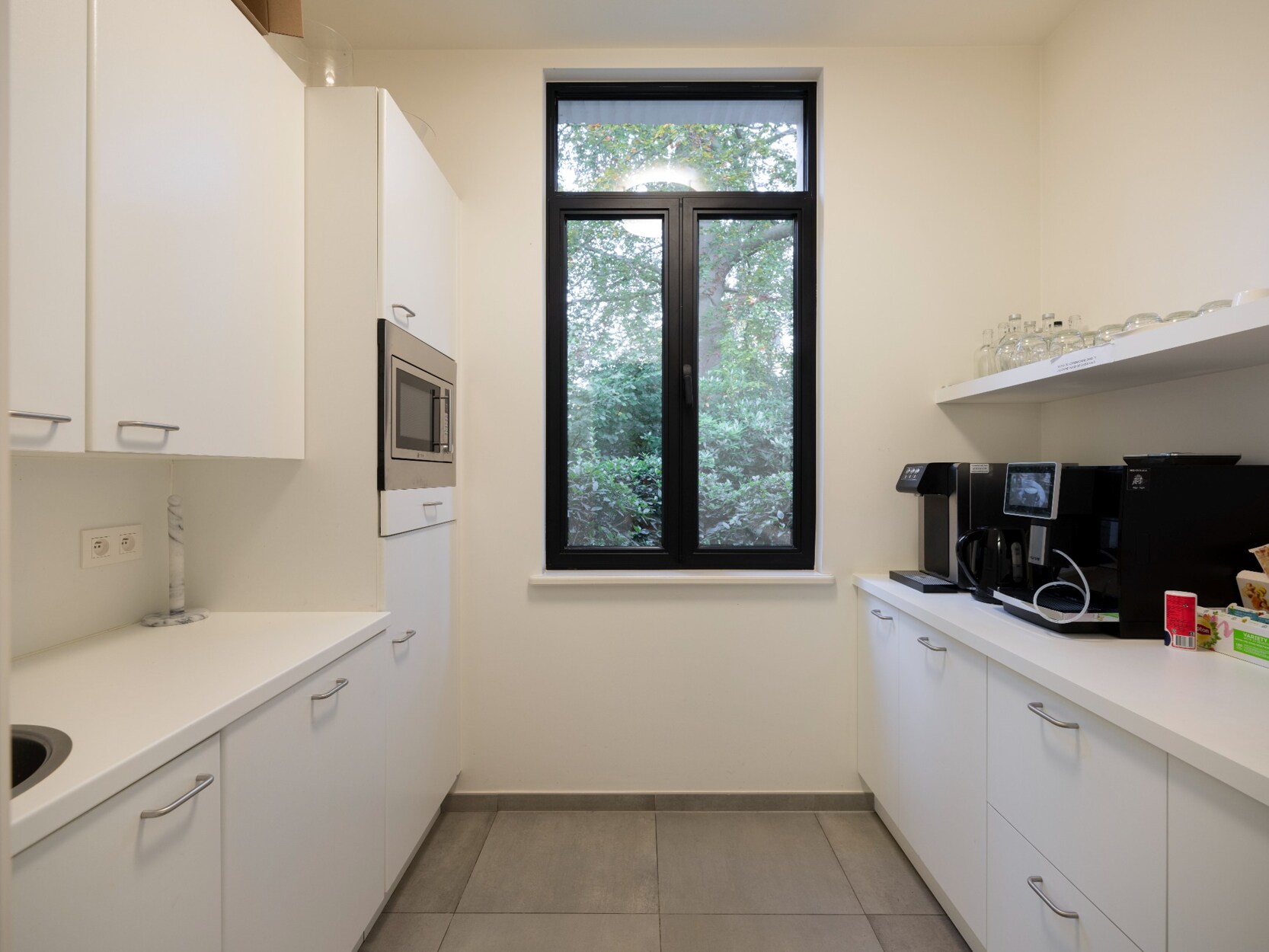 Verder zijn er 5 afsluitbare burelen, twee toiletten, kitchinette, bergingen en vestiairegedeelte.