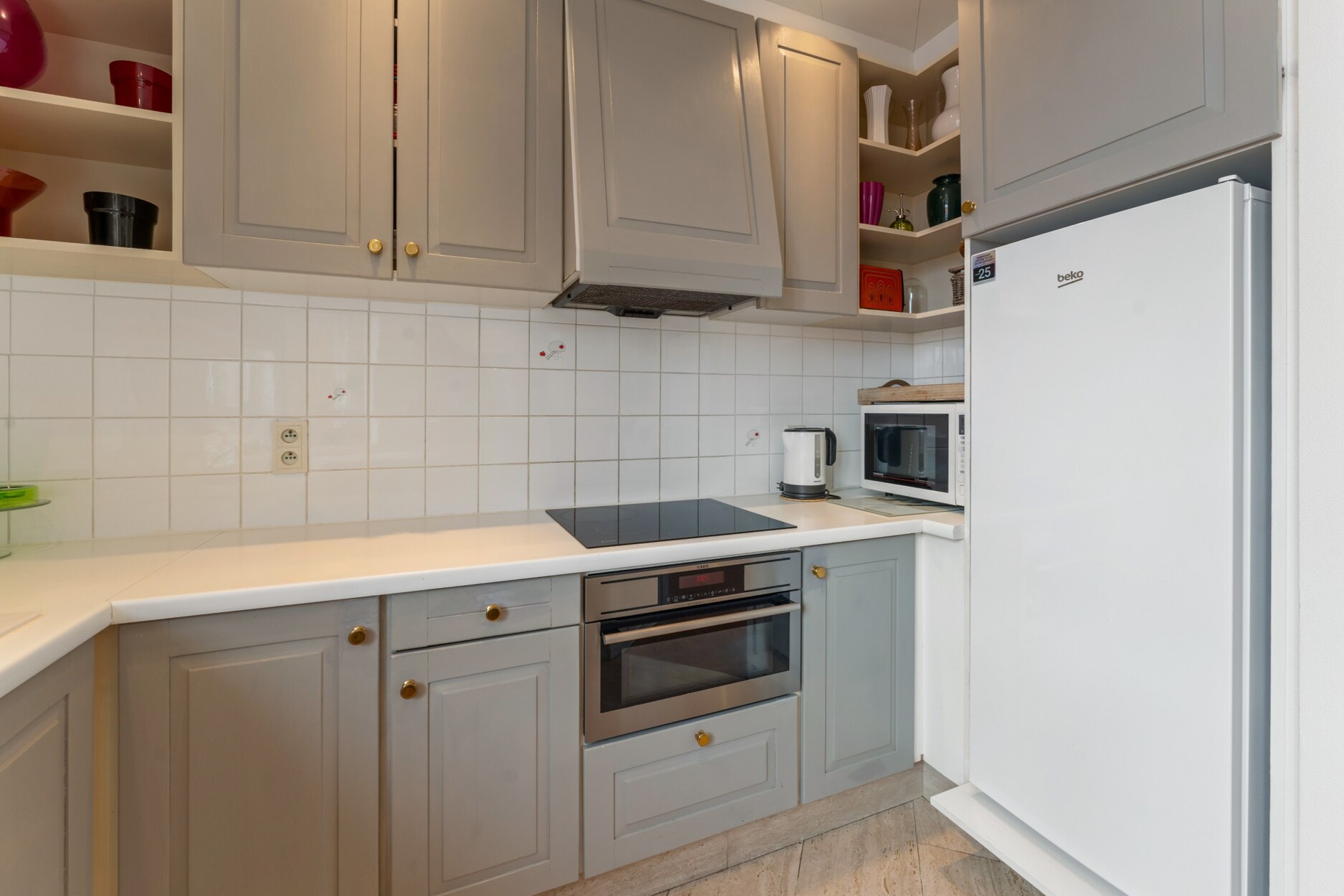 Bij binnenkomst in het appartement bevindt zich een ruime inkomhal met gastentoilet, handenwasser en een technische berging. Vervolgens komt u in een grote lichtrijke ruimte met open keuken en gezellige leefruimte die toegang biedt tot het eerste zonneterras.