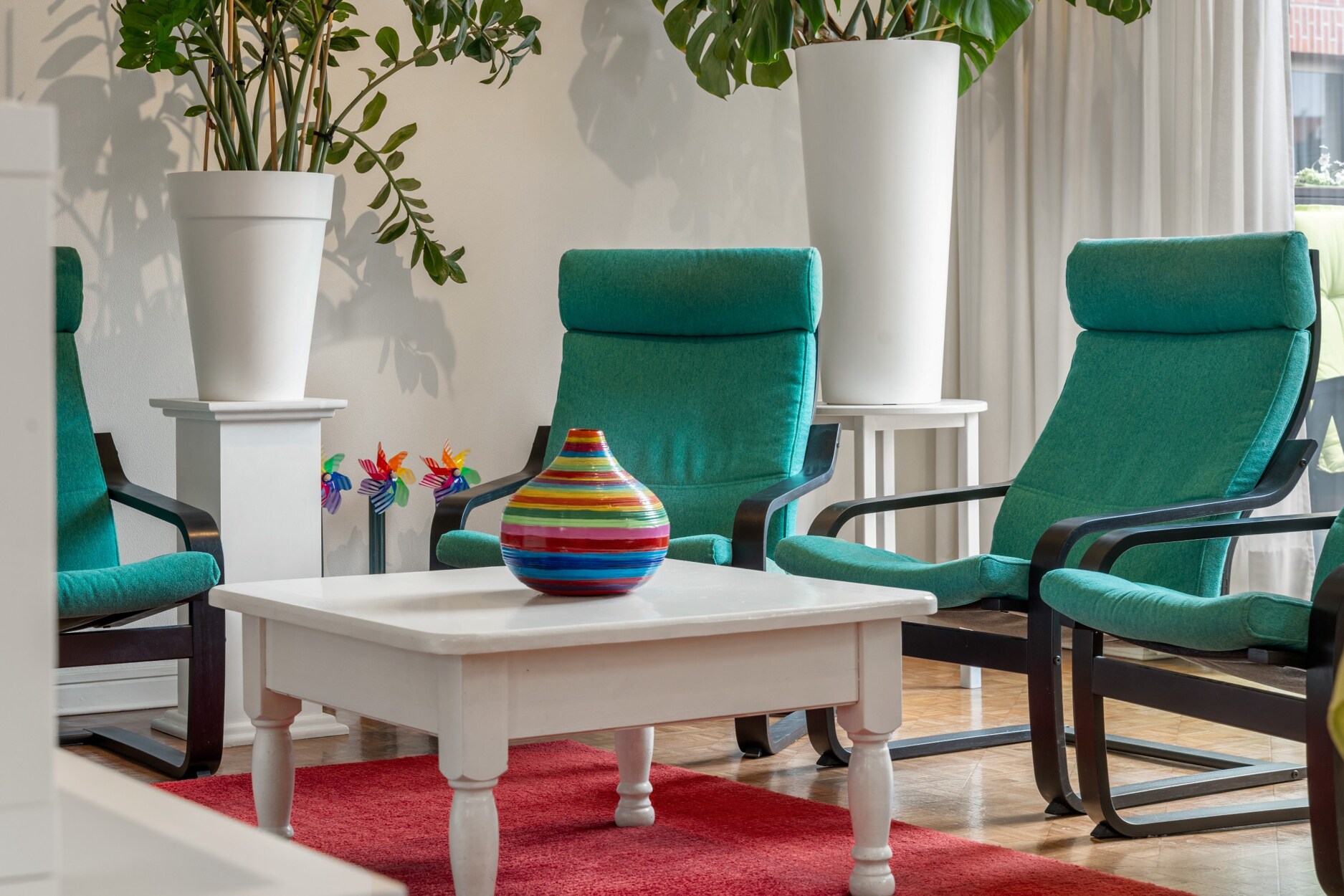 Via de woonkamer bereikt u de studio – momenteel ingericht als tweede leefruimte. Deze beschikt over een eigen ingang, een derde slaapkamer, een tweede badkamer, een extra berging én toegang tot het tweede zonneterras. De studio is perfect integreerbaar of afzonderlijk te gebruiken.