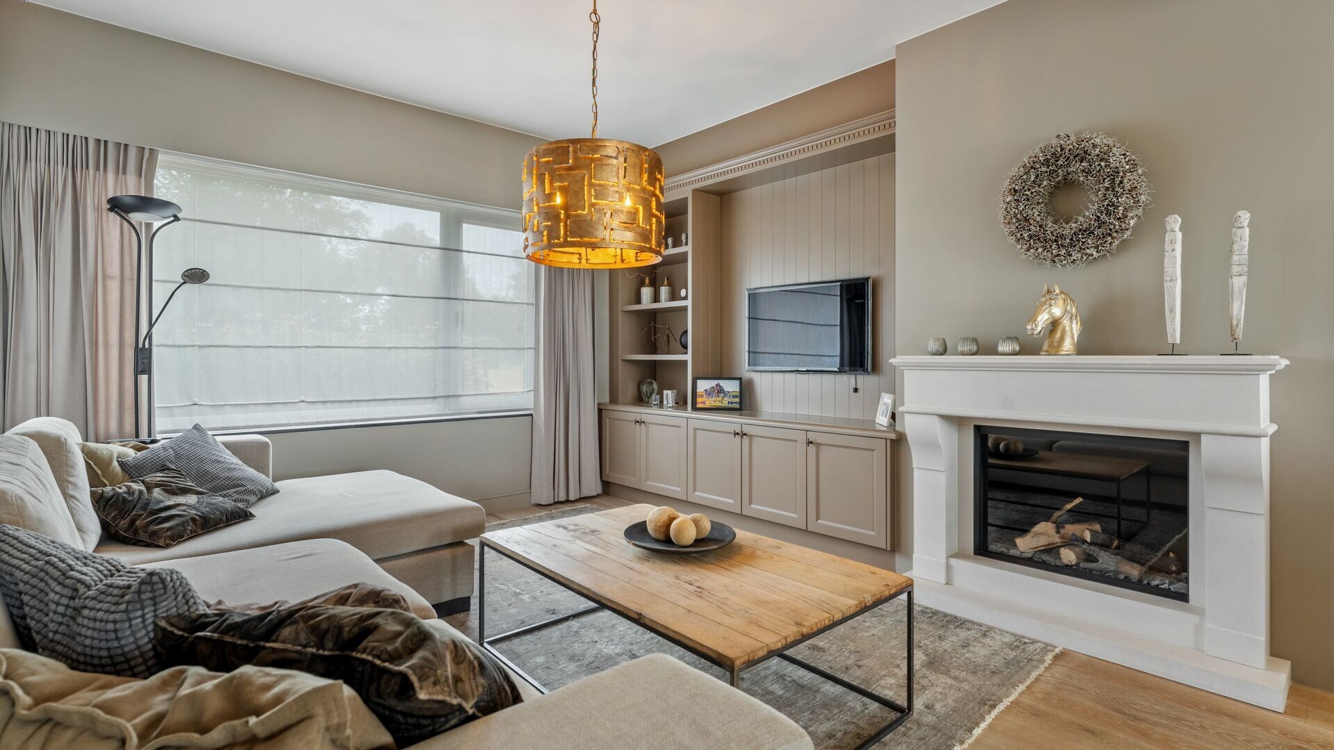 - Gezellige living met ingemaakte kasten en sfeervolle gashaard