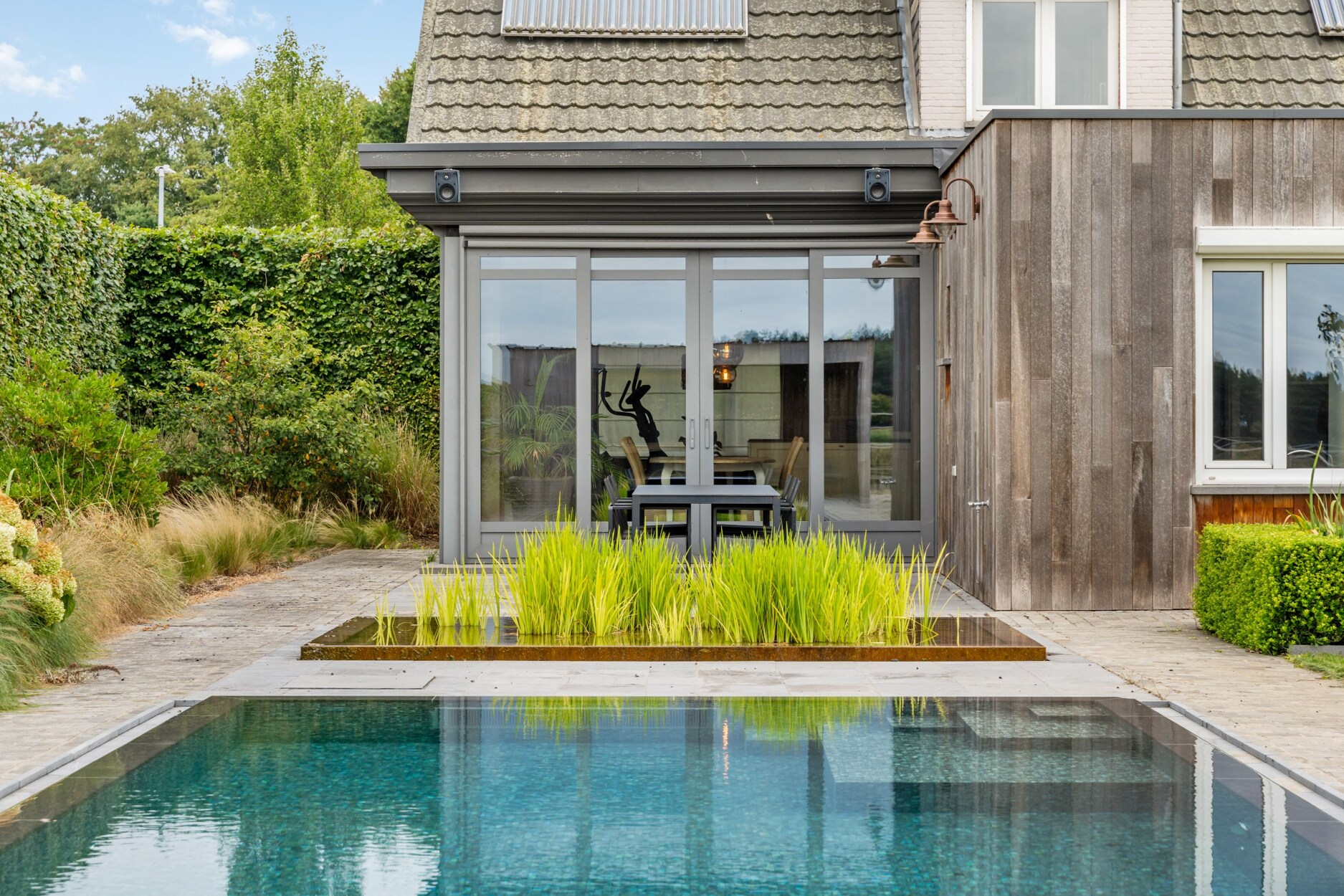 - Groot zwembad met stijlvol poolhouse, voorzien van sauna