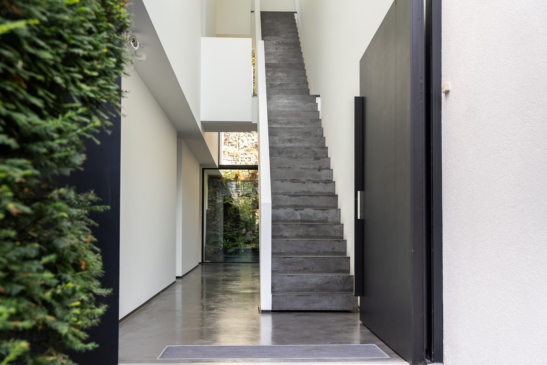 Op het bovenste niveau bevinden zich de ontvangstruimten: een ruime woonkamer met open haard, een lichtrijke eetkamer en een moderne keuken die uitgeeft op twee panoramische terrassen. De slaapverdieping telt vijf kamers, waaronder een master suite met terras. Op het gelijkvloers: inkomhal, bureau, onafhankelijk appartement, technische ruimtes en kelders.