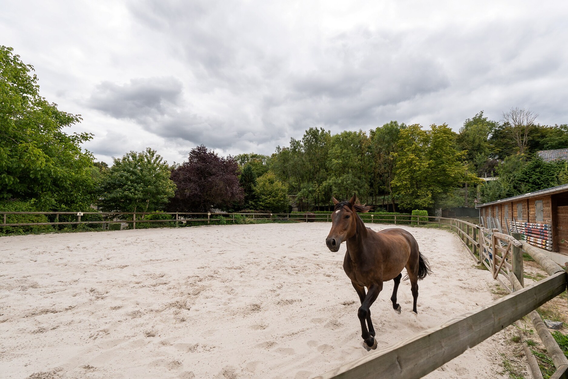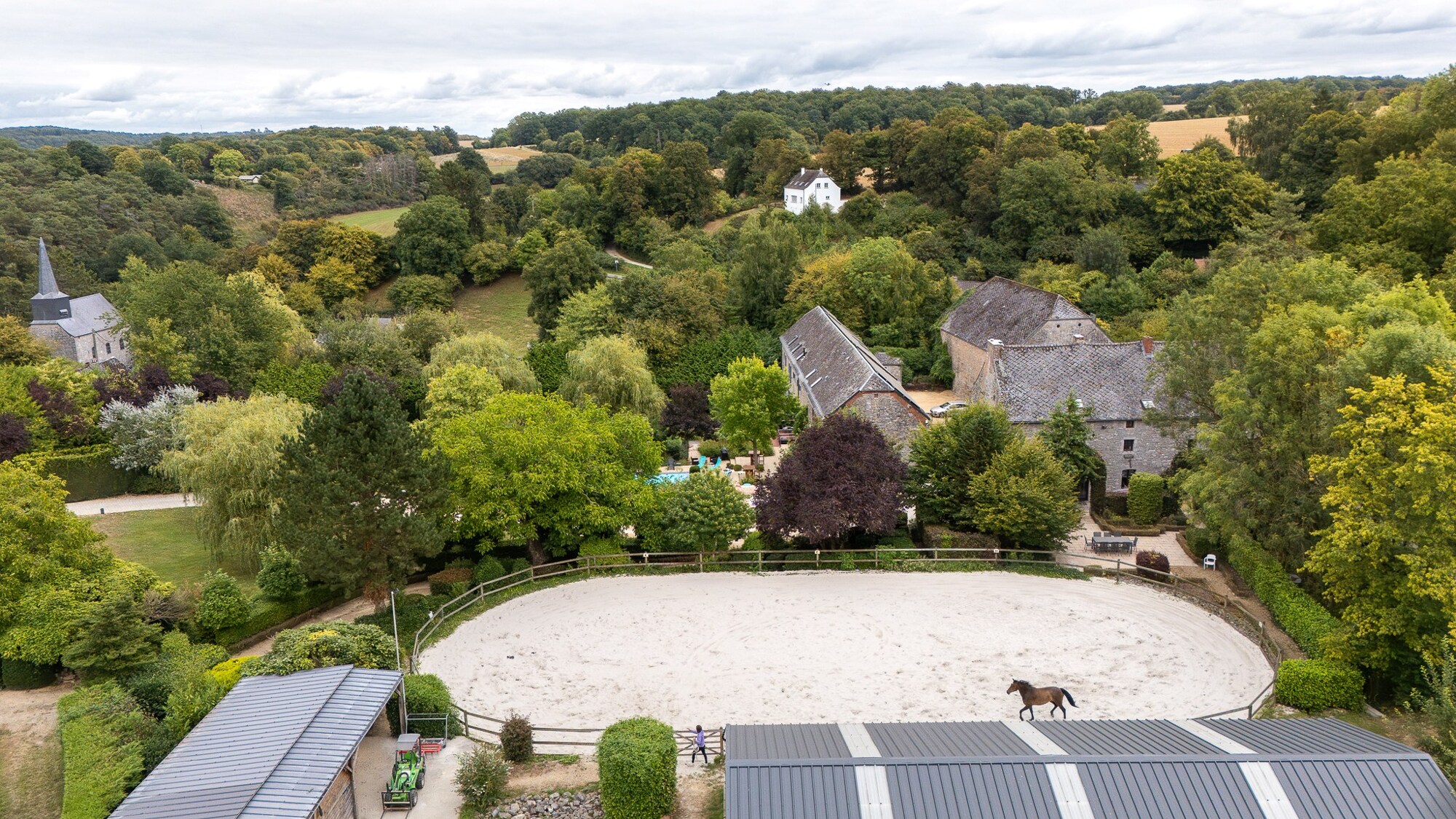 In Vogenée (Walcourt), op een steenworp afstand van de meren van Eau d'Heure, ligt dit paardenlandgoed van meer dan 2 hectare op een zeer gewilde toeristische locatie. Het domein omvat 15 boxen, waarvan 3 voor het veulenen, een piste van 40×20 m en uitgestrekte weiden.