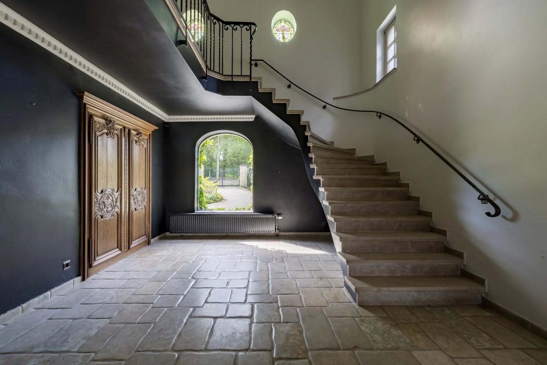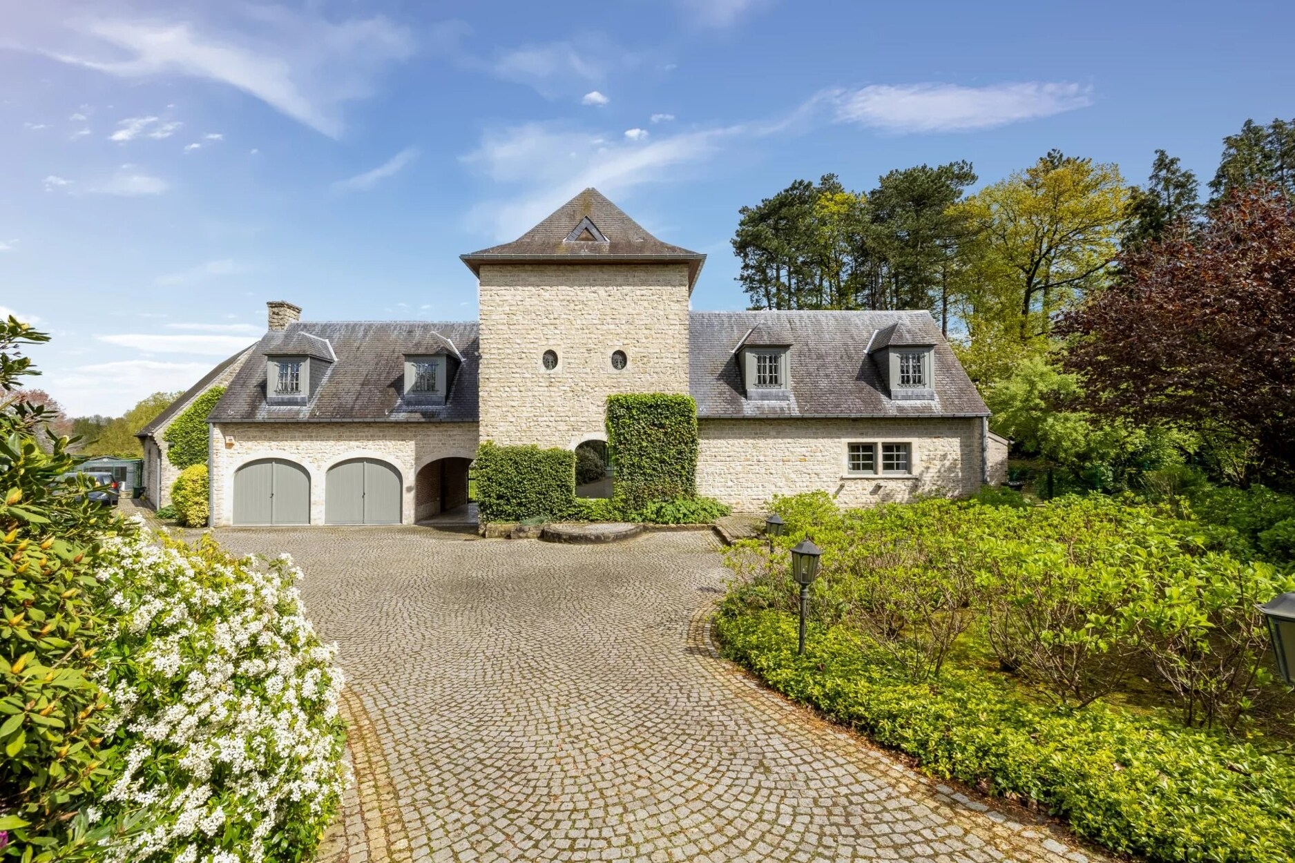 Toegang via een private oprit met automatische poort. Voorzieningen: alarmsysteem, buitenverlichting, bergingen, condensatieketels op gas en mazout. EPC C.