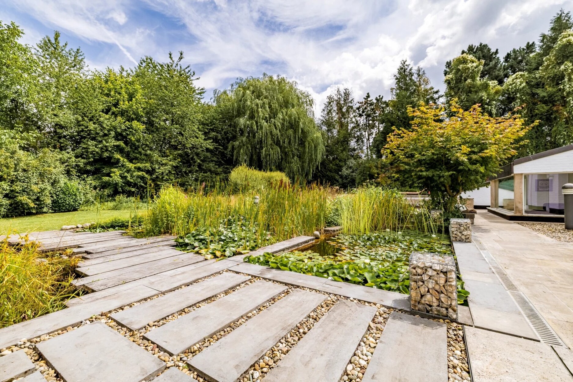 Diversen: elektrische verwarming, waterpartijen, alarmsysteem, robotmaaier, waterverzachter, natuurlijk leien dak.