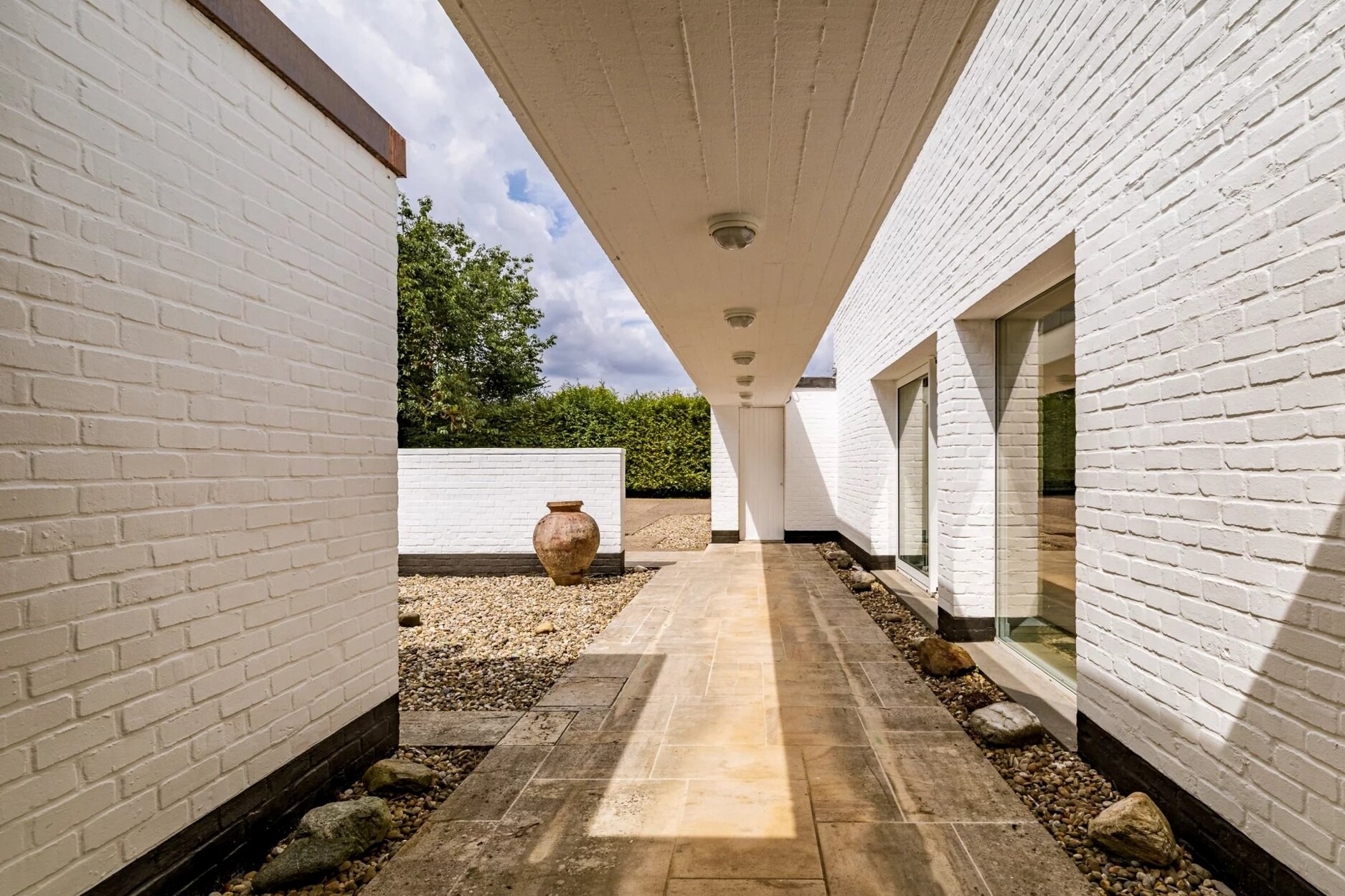 Met een bewoonbare oppervlakte van circa 600 m² bestaat de woning uit: een ruime inkomhal met vestiaire en gastentoilet; een lichte woonkamer van ca. 70 m² met open haard en grote raampartij die toegang geeft tot het hoofdterras op het zuiden; een kantoor-/speelkamer vol lichtinval met toegang tot een tweede terras met barbecuezone; een volledig uitgeruste keuken; een hoofdsuite met dressing en volledige badkamer; twee extra slaapkamers met elk een eigen douchekamer; een wasruimte; een garage voor drie voertuigen; en twee aparte toiletten.