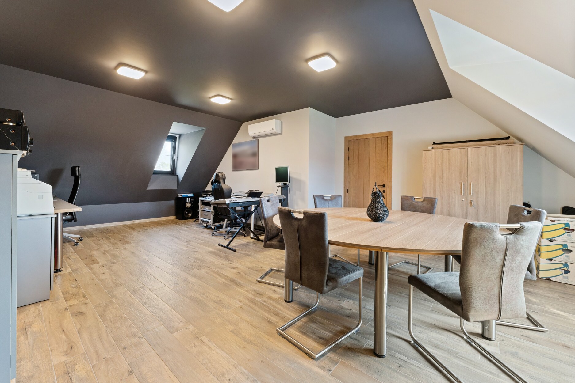 Op de eerste verdieping bevinden zich drie slaapkamers, een badkamer met douche en lavabo, een apart toilet én een extra ruime bureauruimte of polyvalente kamer.