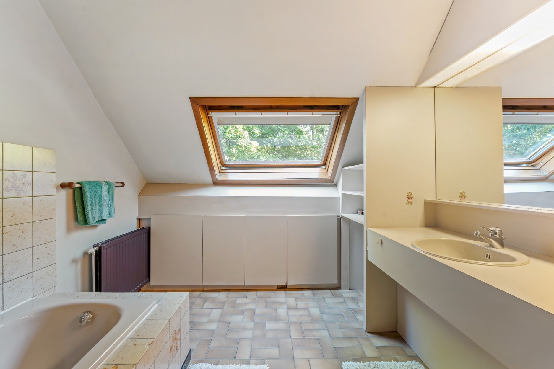 De tuin vormt een absolute troef: een groene oase met volledige privacy en een uniek zicht op het aangrenzende bos. Hier geniet je in alle rust van het buitenleven, ver weg van de drukte maar toch vlakbij alle voorzieningen.
