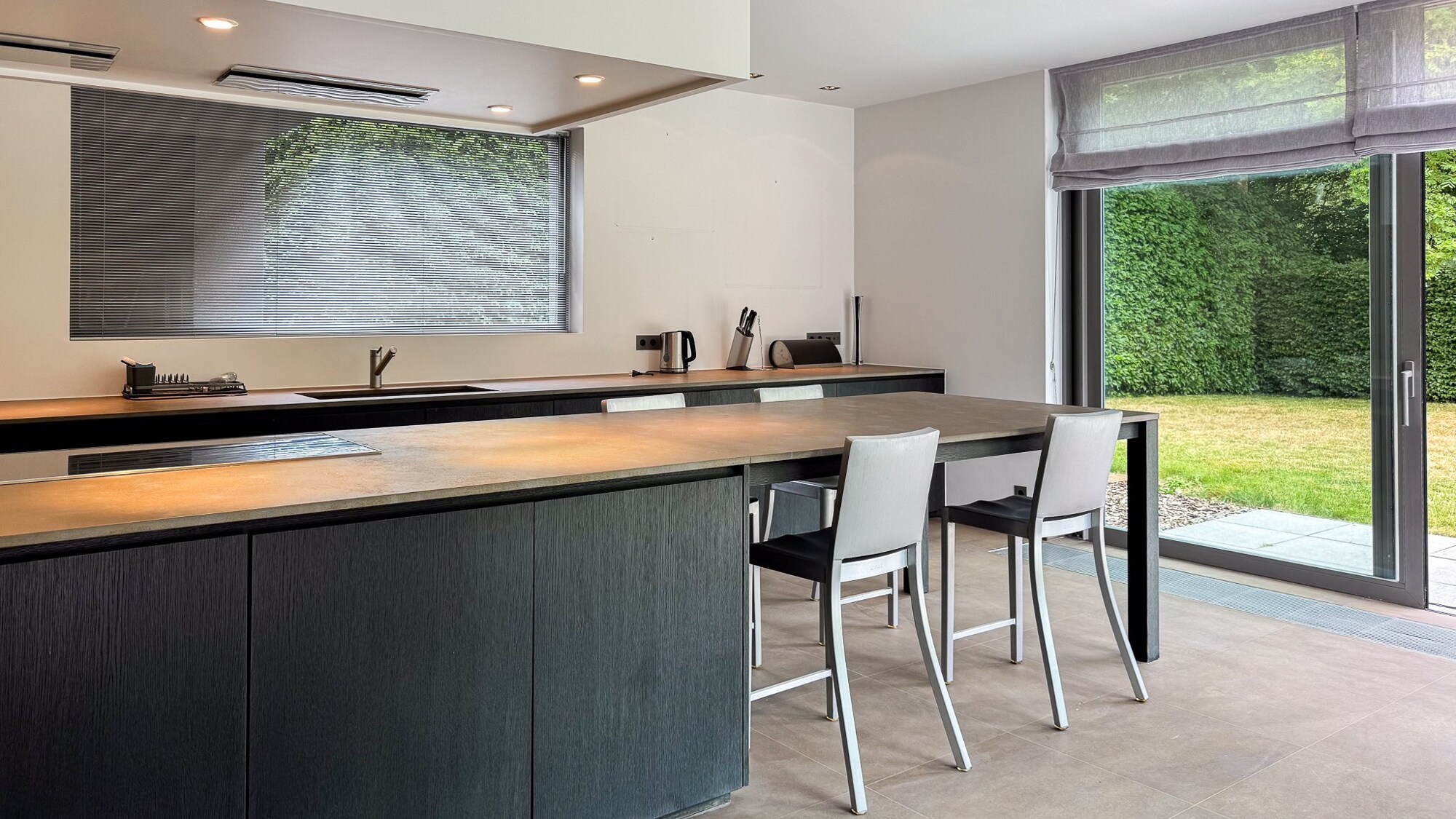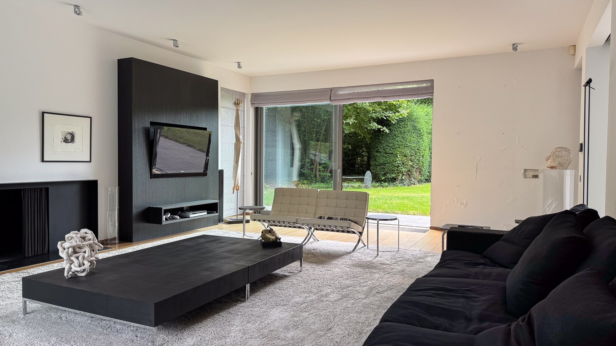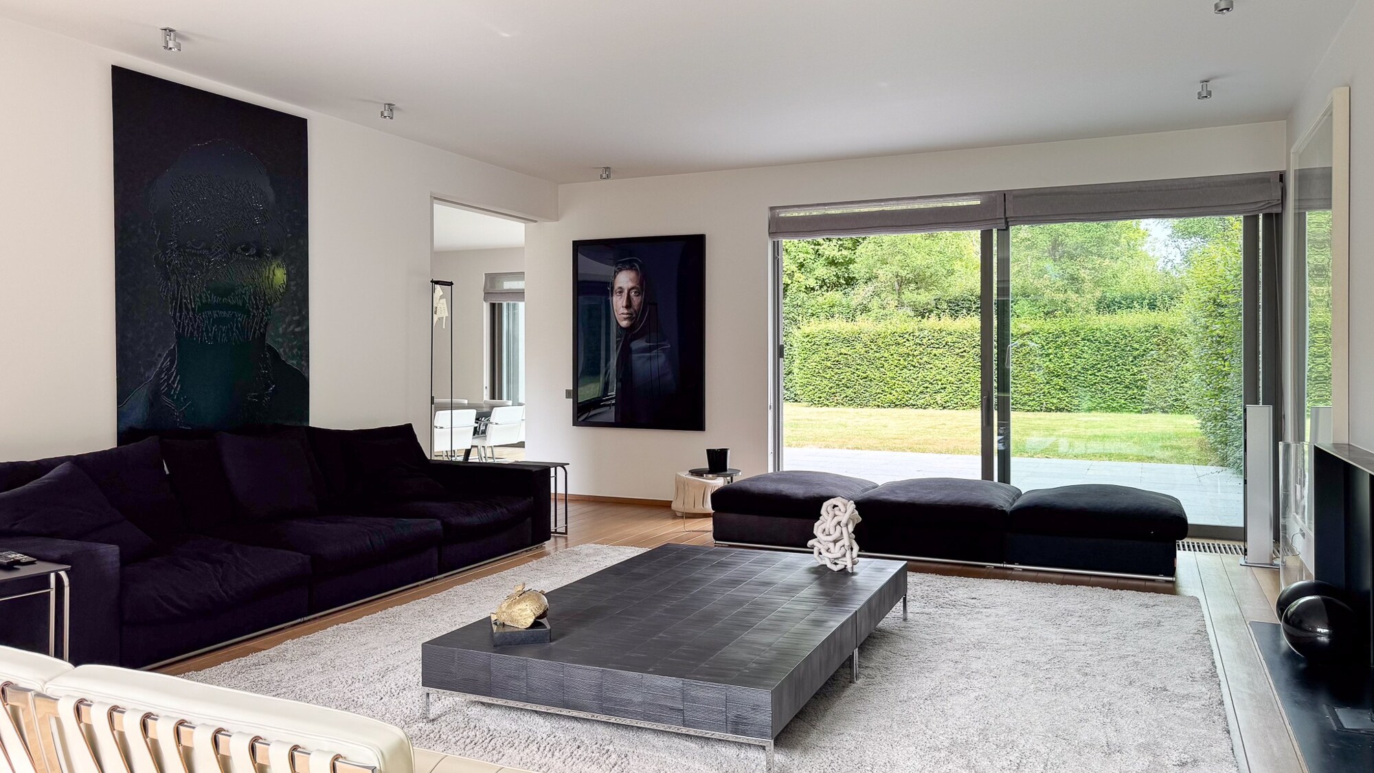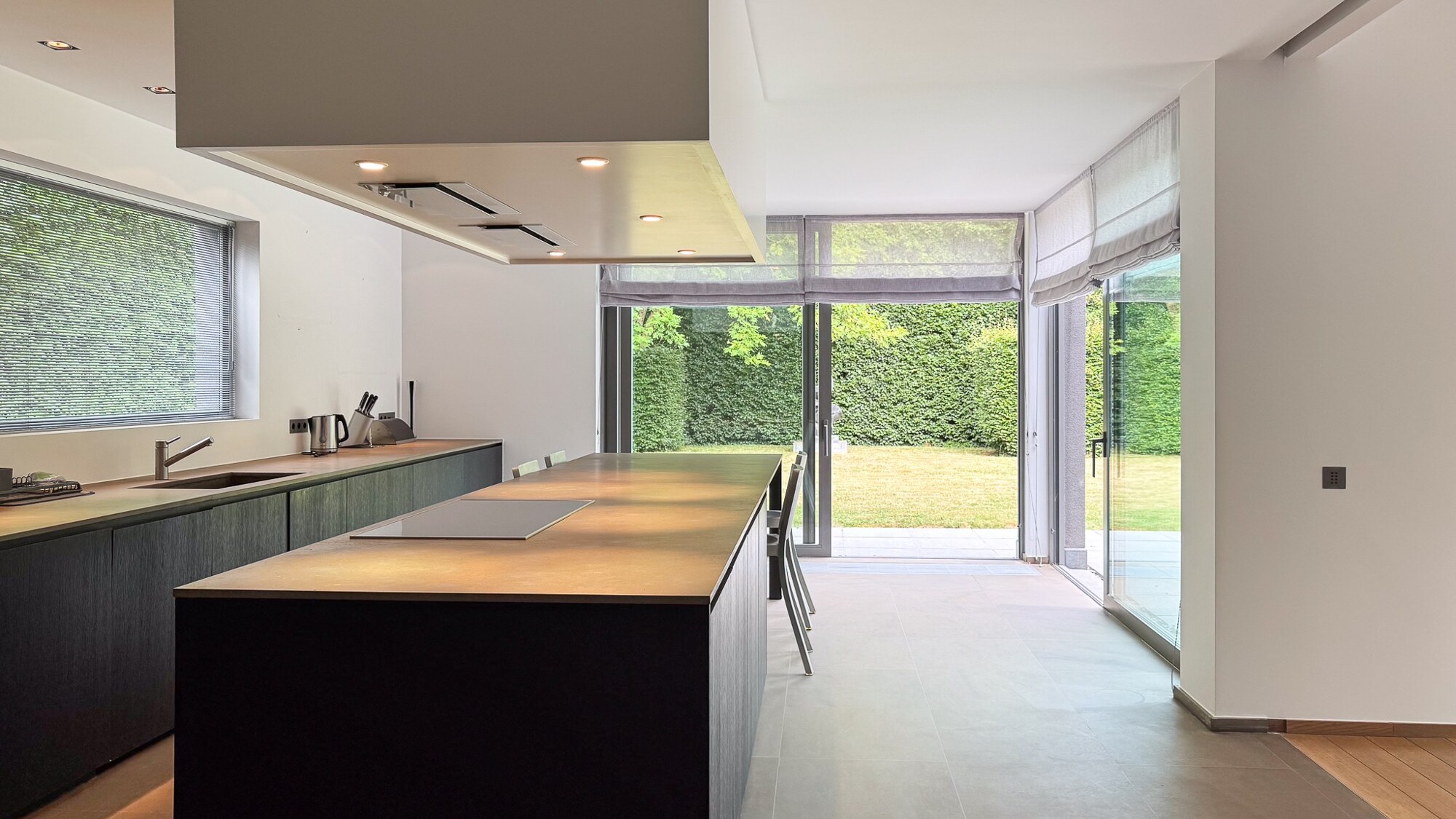 In de prestigieuze wijk Prins van Oranje biedt deze hedendaagse residentie, ontworpen door de gerenommeerde architect Marc Corbiau, een royale oppervlakte van ±934 m² (volgens EPB) op een perceel van ongeveer 28 are. Vanaf de ingang openen ruime ontvangstruimten, doordrenkt met natuurlijk licht, zich harmonieus naar een aangelegde tuin. De verfijnde, volledig uitgeruste keuken wordt aangevuld met een functionele bijkeuken, die perfect aansluit bij de onafhankelijke eetkamer en het kantoor.