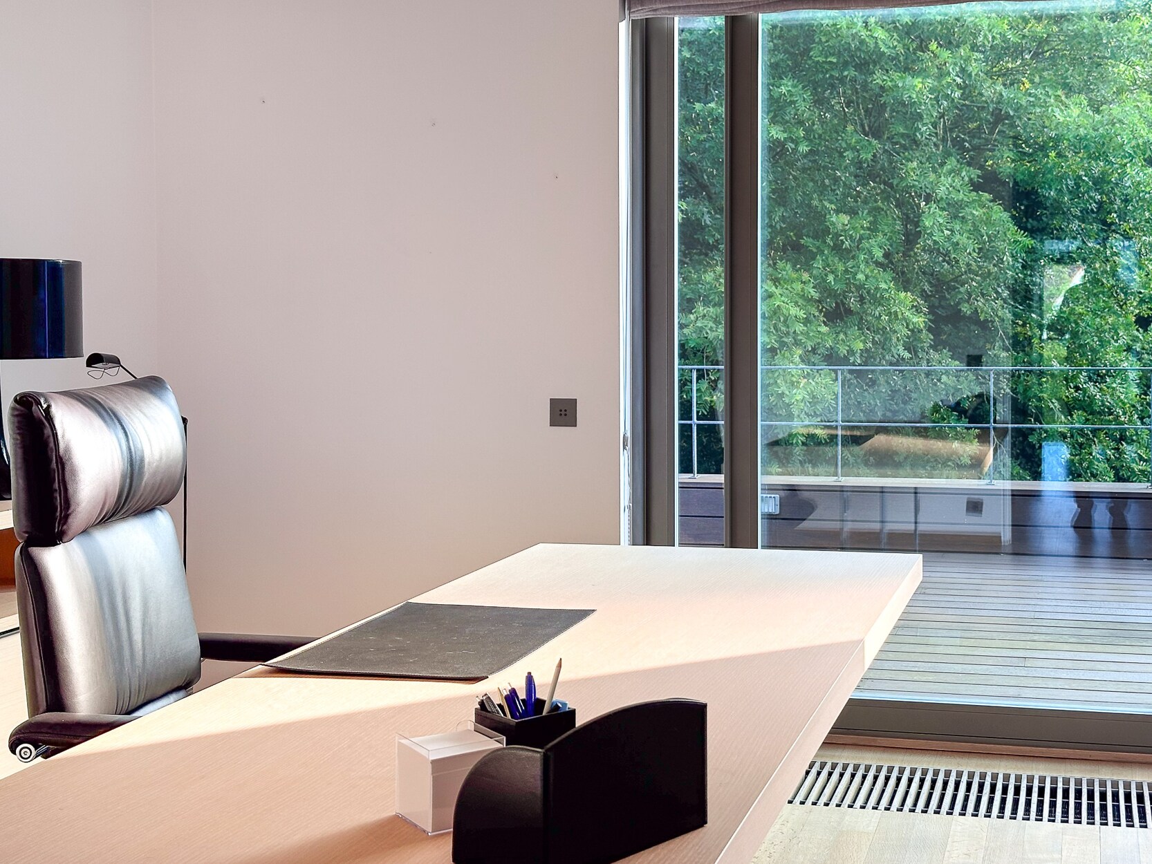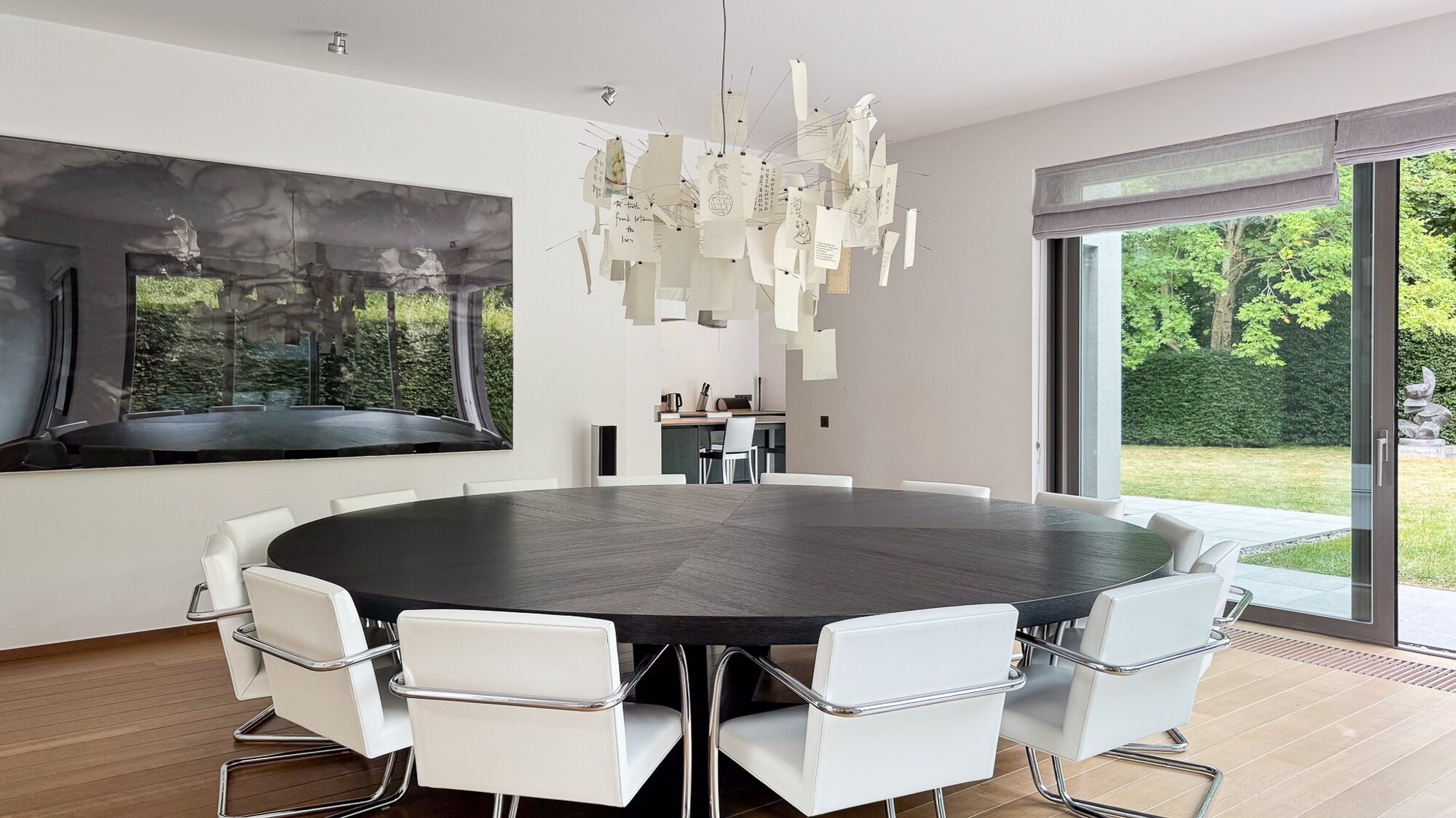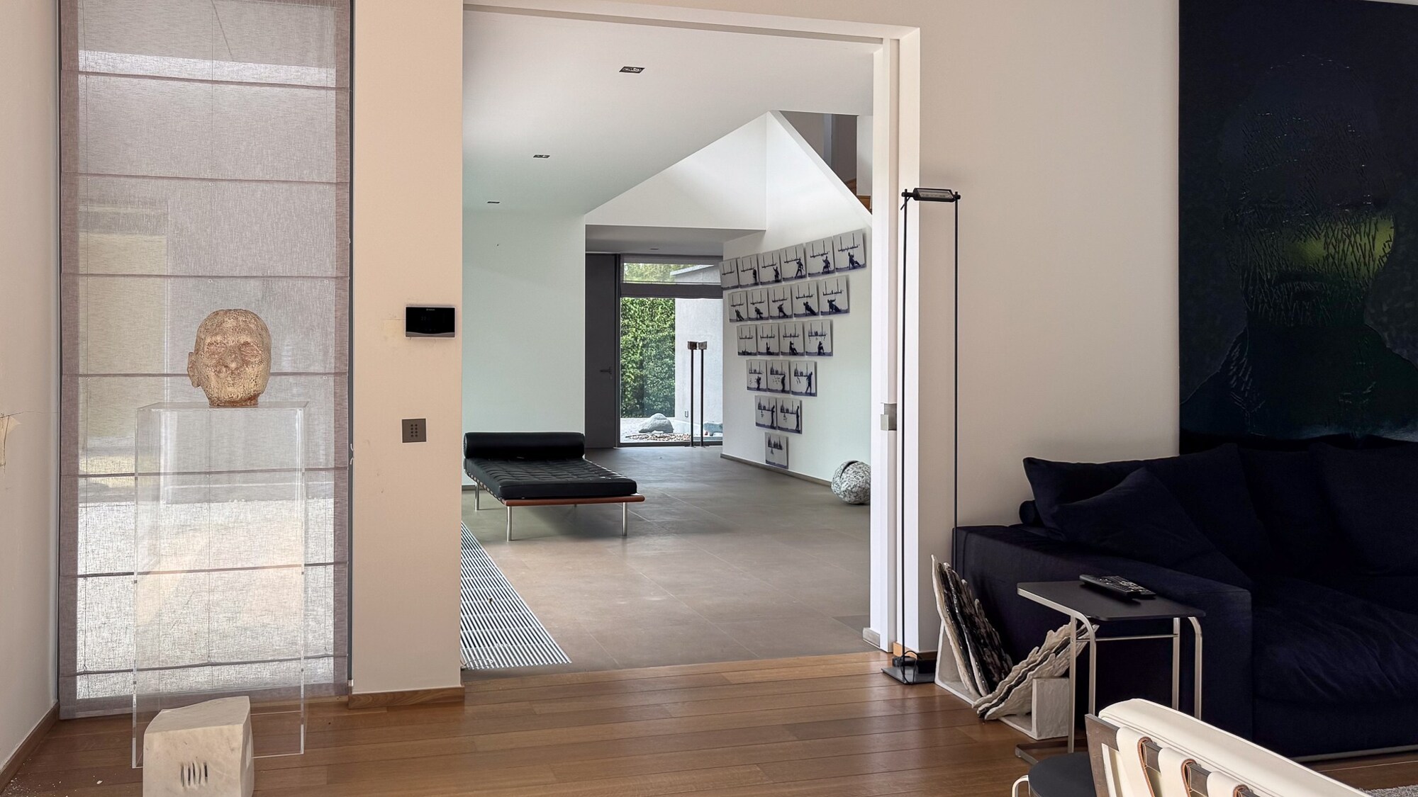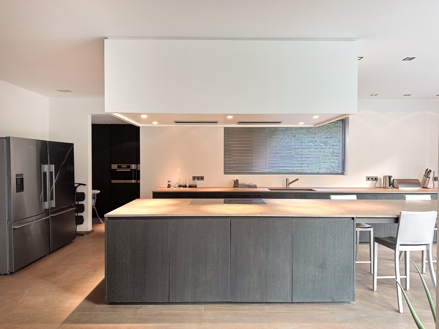 In de prestigieuze wijk Prins van Oranje biedt deze hedendaagse residentie, ontworpen door de gerenommeerde architect Marc Corbiau, een royale oppervlakte van ±934 m² (volgens EPB) op een perceel van ongeveer 28 are. Vanaf de ingang openen ruime ontvangstruimten, doordrenkt met natuurlijk licht, zich harmonieus naar een aangelegde tuin. De verfijnde, volledig uitgeruste keuken wordt aangevuld met een functionele bijkeuken, die perfect aansluit bij de onafhankelijke eetkamer en het kantoor.