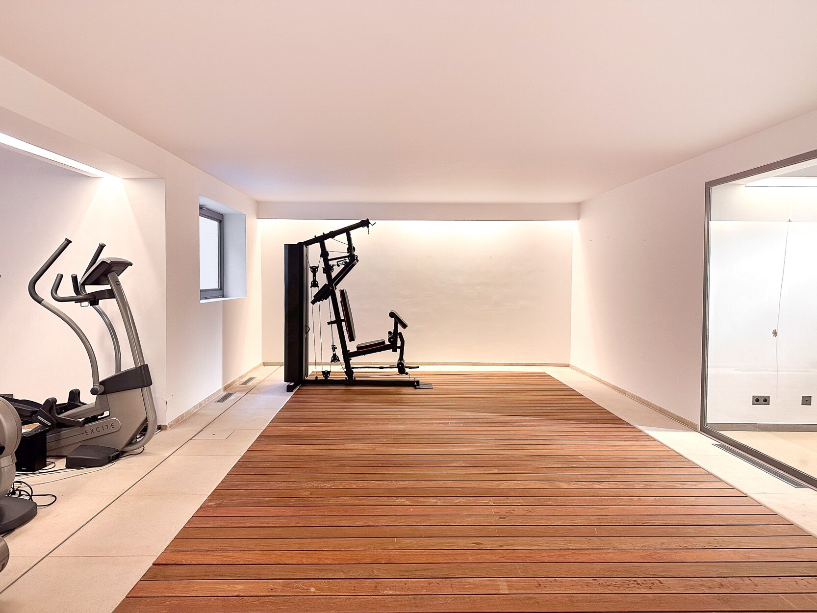 In de kelder vindt men een fitnessruimte, een binnenzwembad en ruime opslagruimtes. Een ruime garage voor drie voertuigen zorgt voor gemak en veiligheid. Dit uitzonderlijke pand, met een EPB-categorie D, combineert hoogwaardige voorzieningen met een buitengewone omgeving.