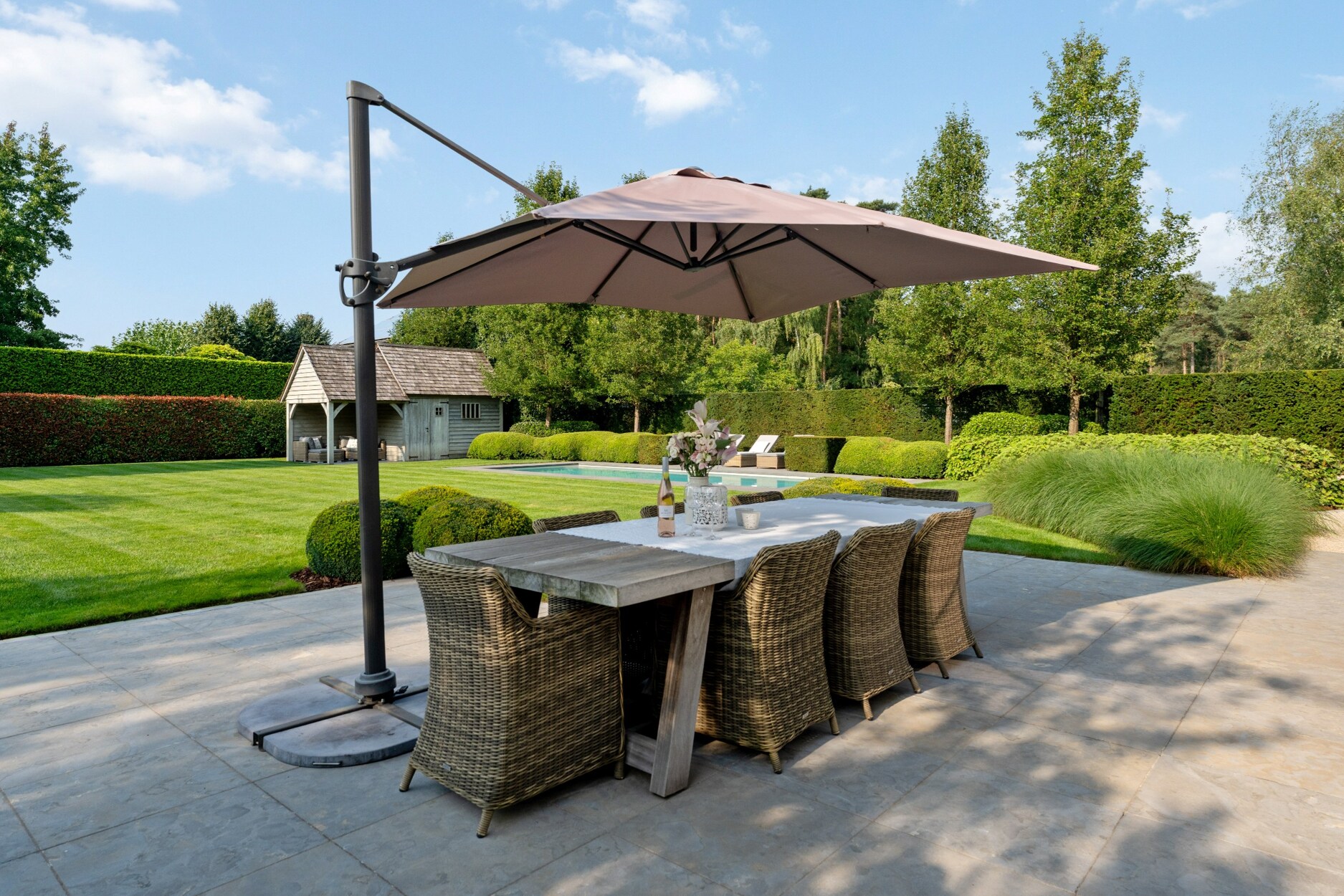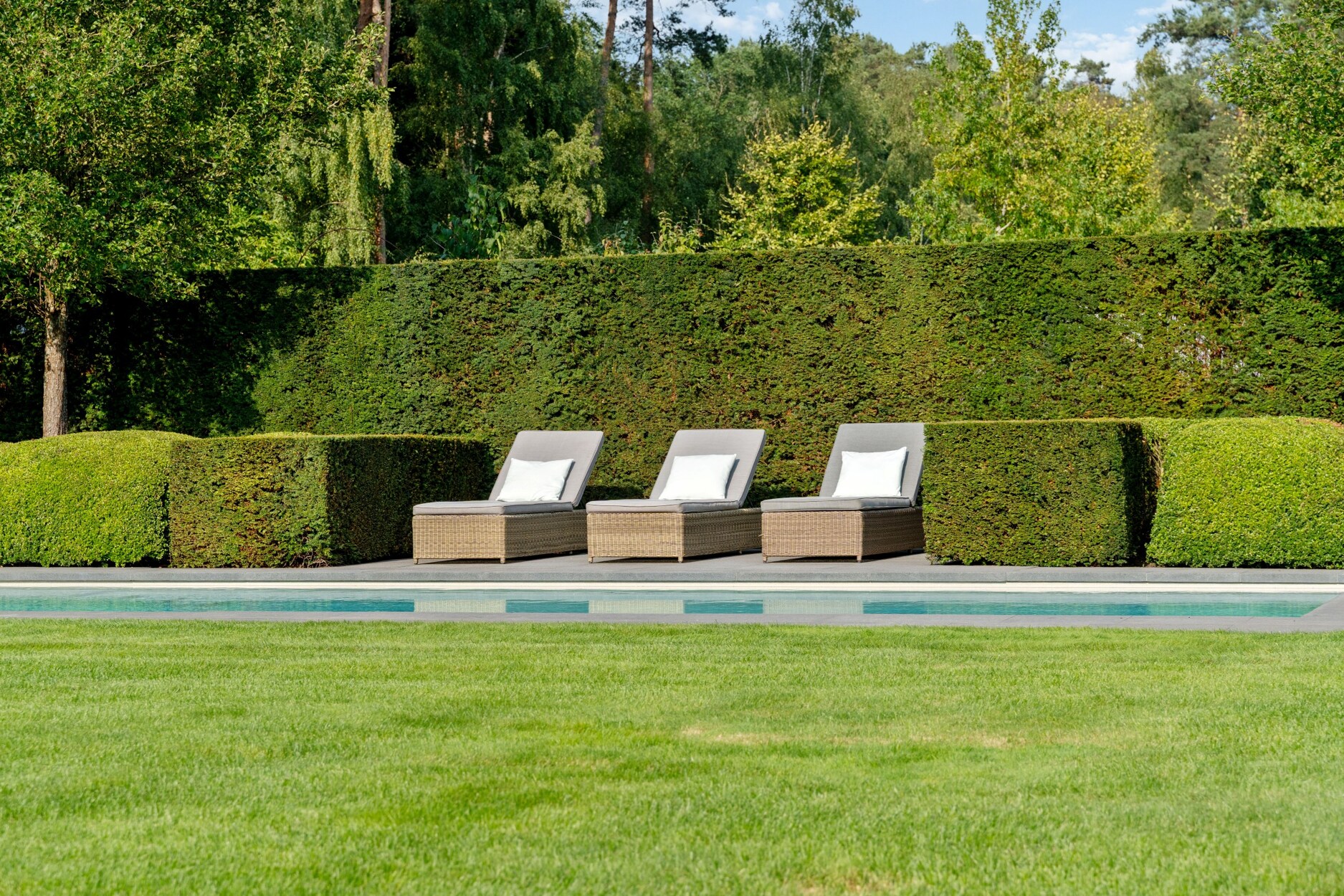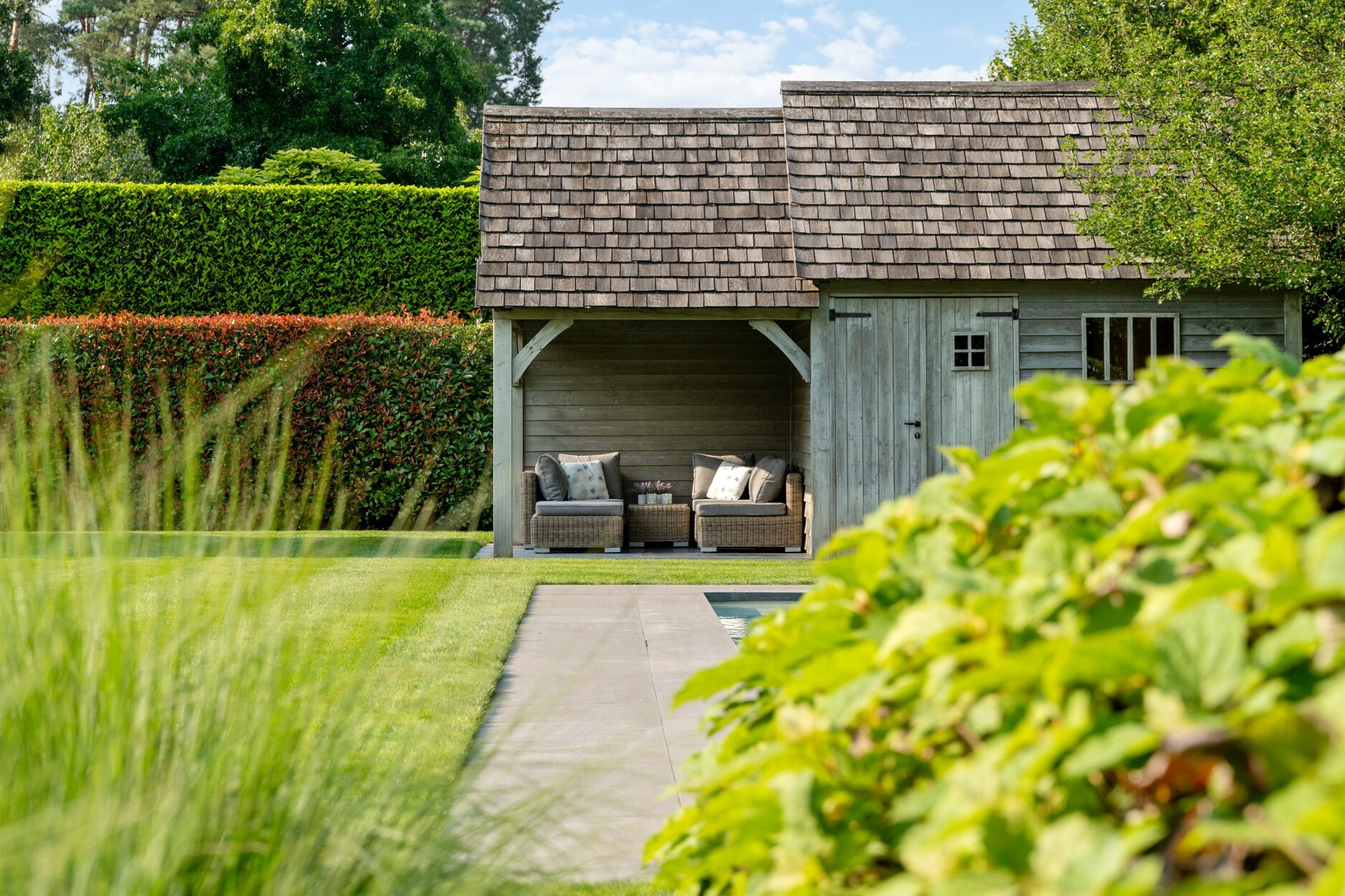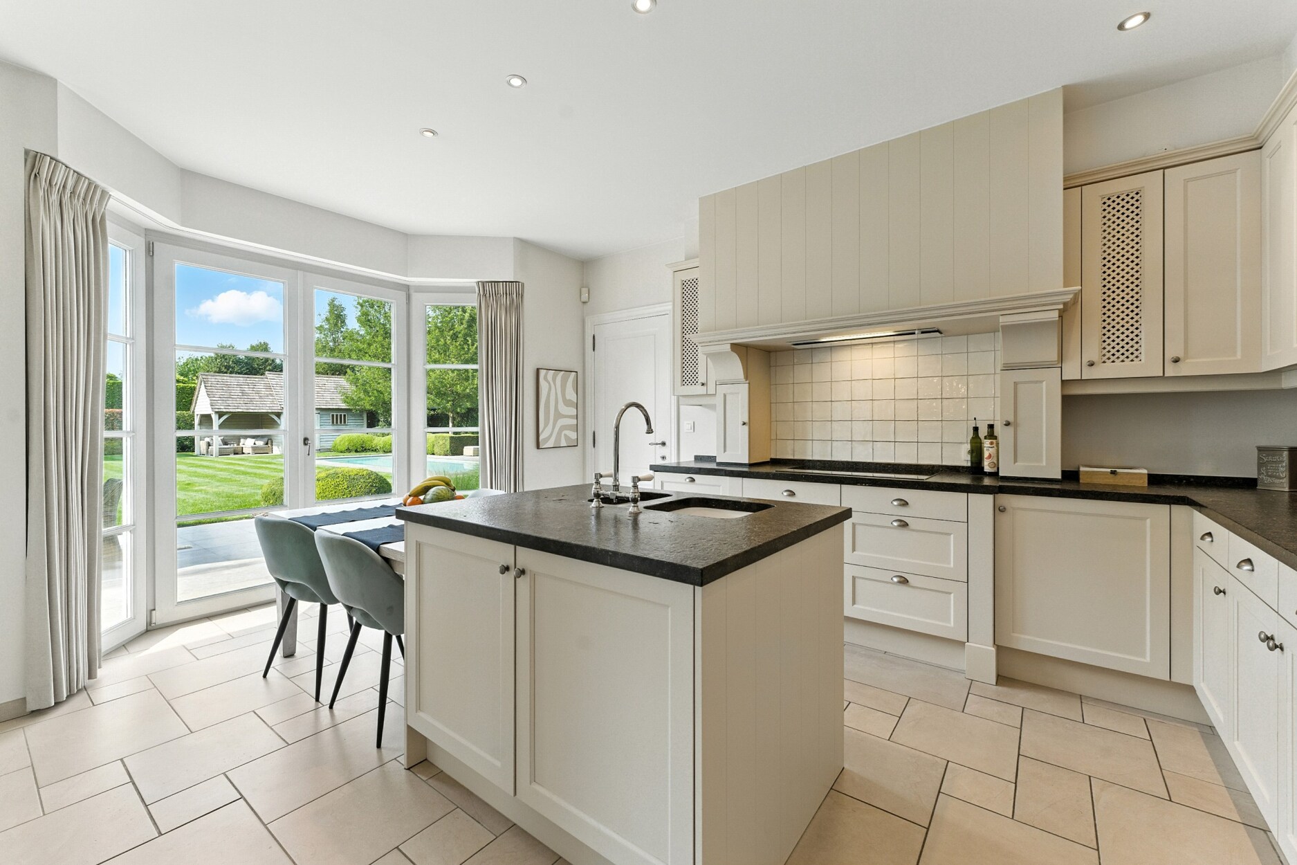 De buitenruimte is een oase van rust en ontspanning waar u in alle privacy kan genieten zonder inkijk. De prachtig aangelegde tuin is uitgerust met een automatisch irrigatiesysteem, sproei-installatie en tuinverlichting doorheen gans de tuin. Het verwarmde monobloc zwembad, aangedreven door een warmtepomp, nodigt uit tot verfrissing en ontspanning. Door de ligging van het zwembad kan u hier genieten van de zon vanaf de late ochtend tot zonsondergang. Achteraan de tuin bevindt zich bovendien een charmant poolhouse, ideaal voor gezellige momenten met familie en vrienden.