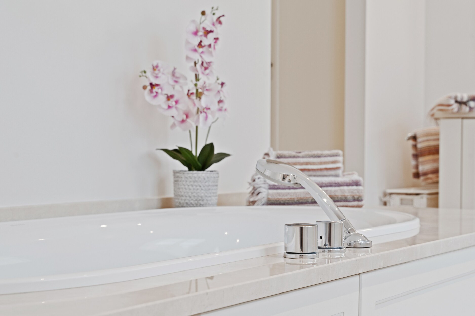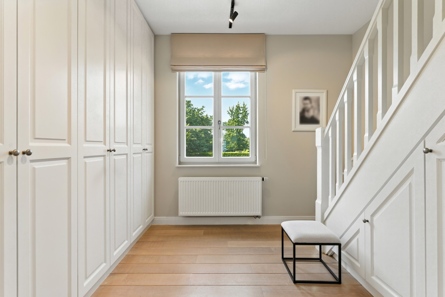 De eerste verdieping biedt drie ruime en lichtrijke slaapkamers, een apart gastentoilet en een praktische dressing met toegang tot de ruime zolder, die nog verder kan worden afgewerkt en ingericht naar uw persoonlijke wensen. De luxueuze badkamer is volledig afgewerkt met natuursteen en uitgerust met een dubbele wastafel, een royale inloopdouche en een elegant ligbad. Voor extra comfort is de bovenverdieping voorzien van airconditioning.
