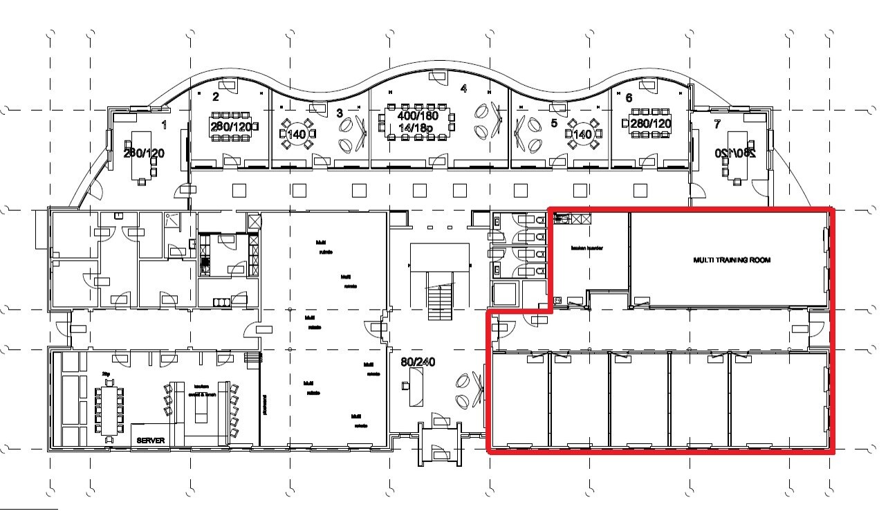 KANTOOR TE HUUR: ca 375m² + Gemeenschappelijke ruimtes