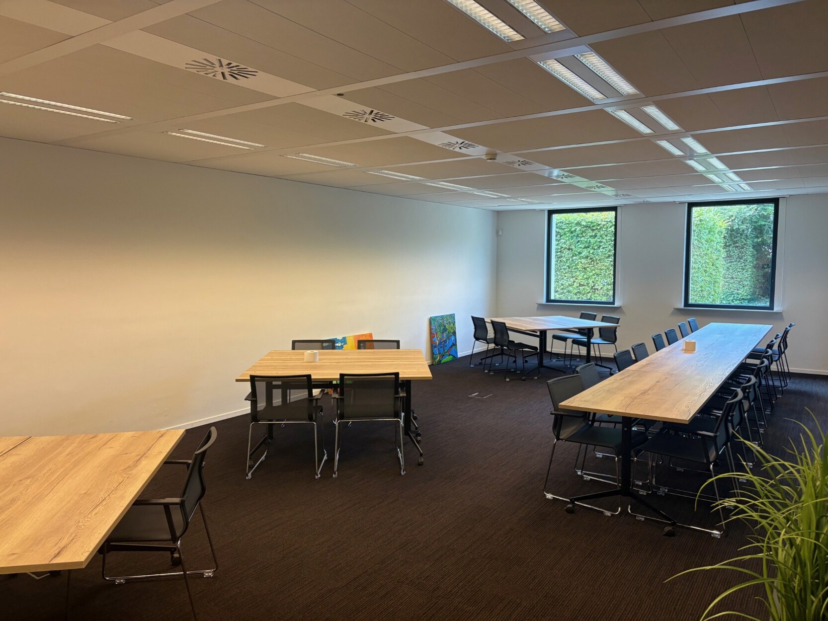 Gelijkvloers kantoor te huur in een nieuw gerenoveerd gebouw. Gelegen in het groen maar toch centraal en ruimte parking rondom het gebouw. Het privatief kantoor van ca 375 m² bevindt zich in de rechtervleugel van dit kantoorgebouw en bestaat uit een aantal afgesloten kantoren, een landschapskantoor en een kitchenette. In samenspraak met de hoofdhuurder kunnen een aantal gemeenschappelijke ruimtes benut worden: mooie inkom receptie en lounge, verschillende high end meeting rooms van 4 tot 16 personen. Een event ruimte tot 60 personen en een leuke bar/lounge. Diensten coëfficiënt in overleg.