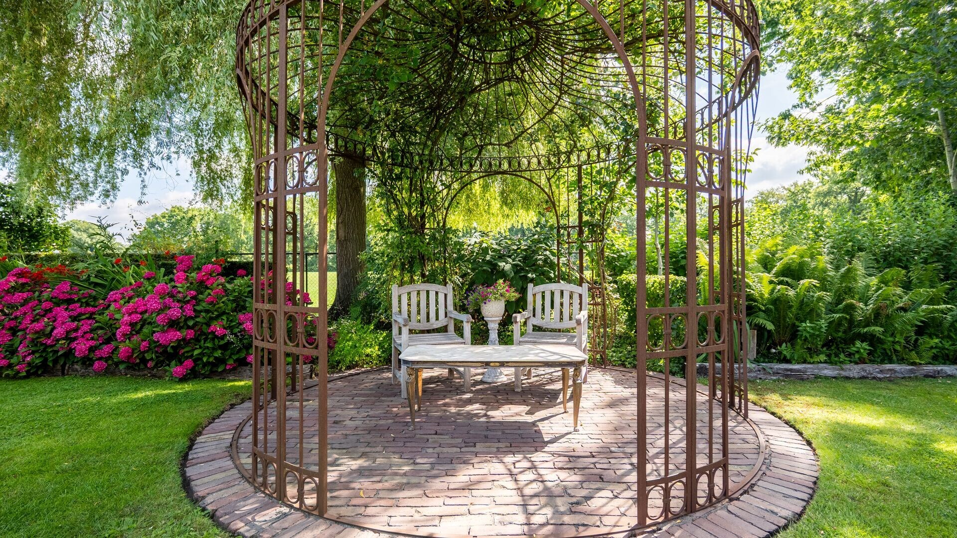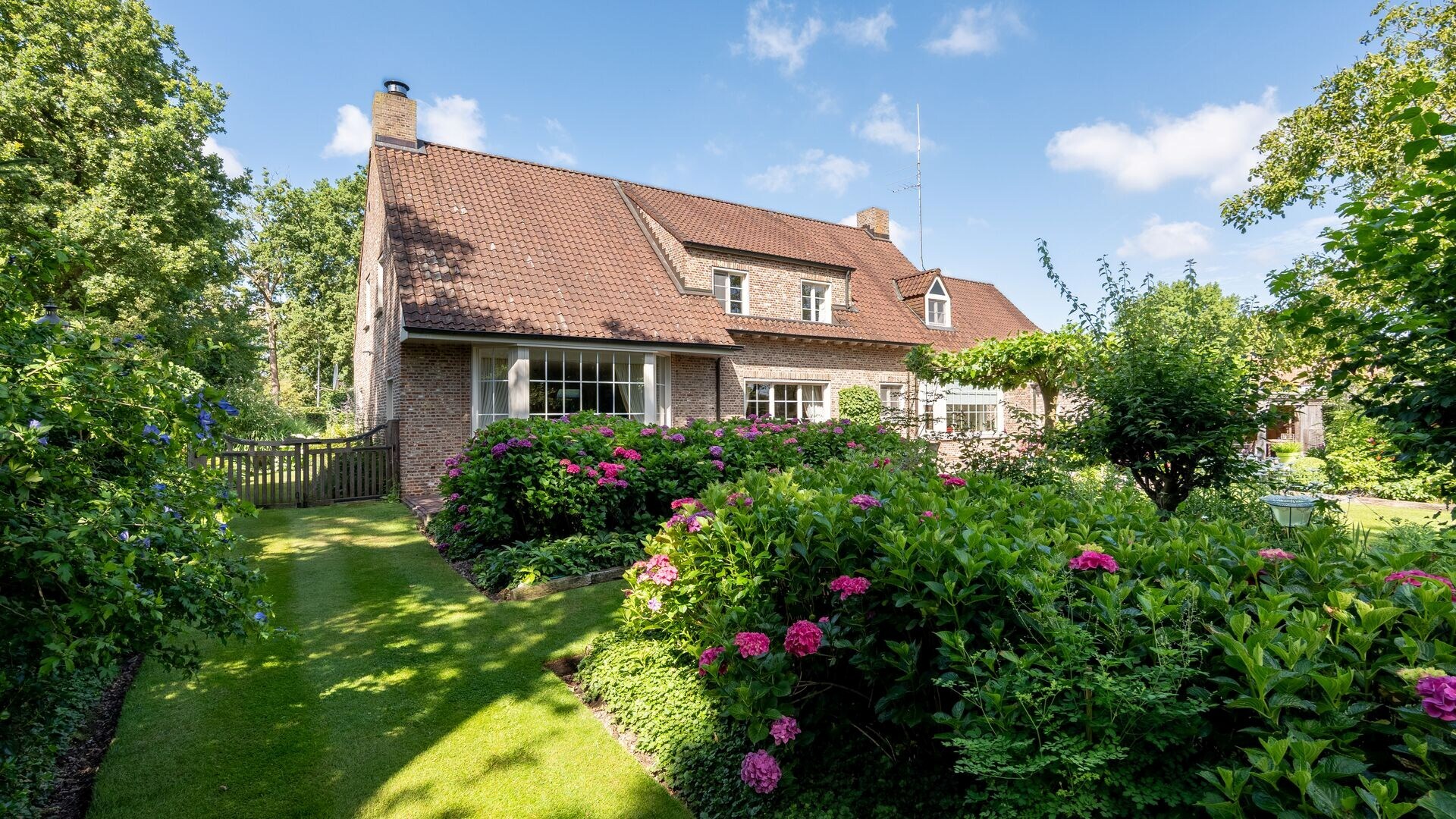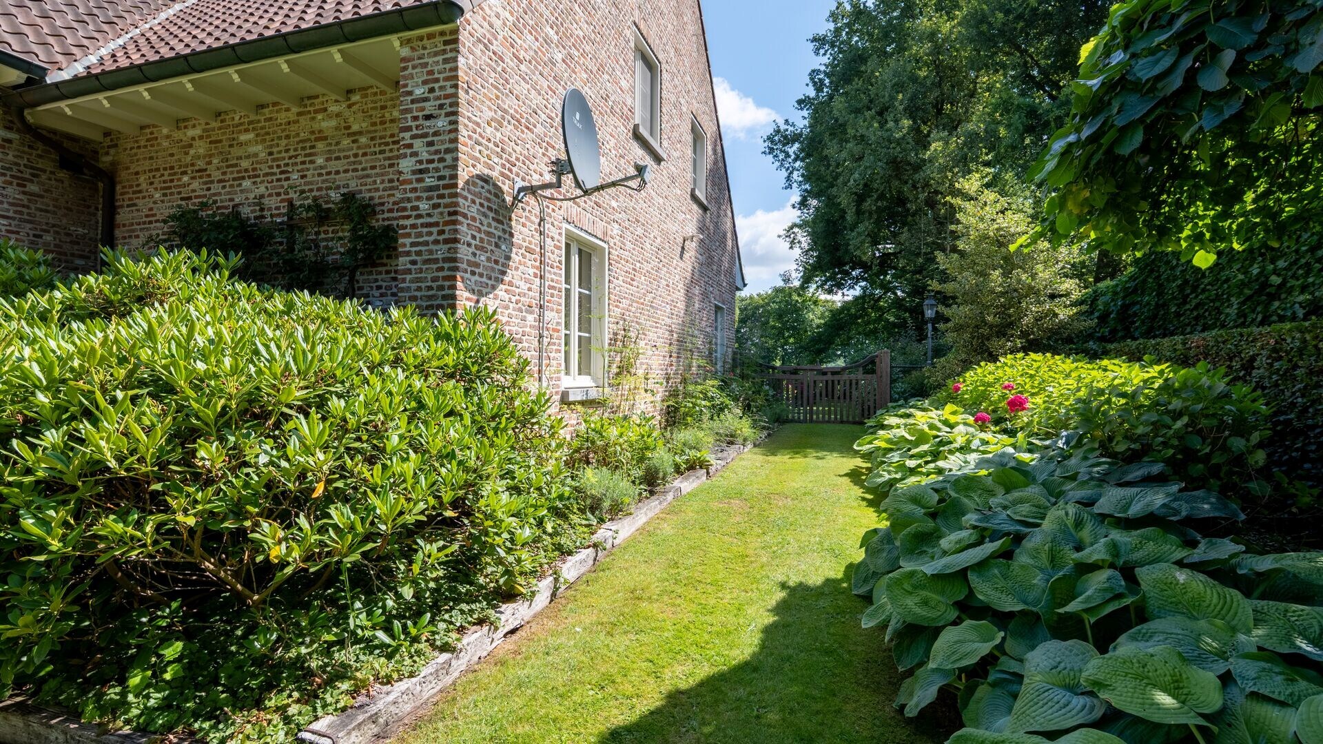 De oost gerichte tuin is schitterend aangelegd, geniet van bomen, veel groen, absolute rust en privacy en is voorzien van diverse terrassen. Verder nog een praktische tuinberging en een ruime overkapping/terras aanwezig. De tuin is volledig omheind en vooraan afgesloten met een automatische toegangspoort.