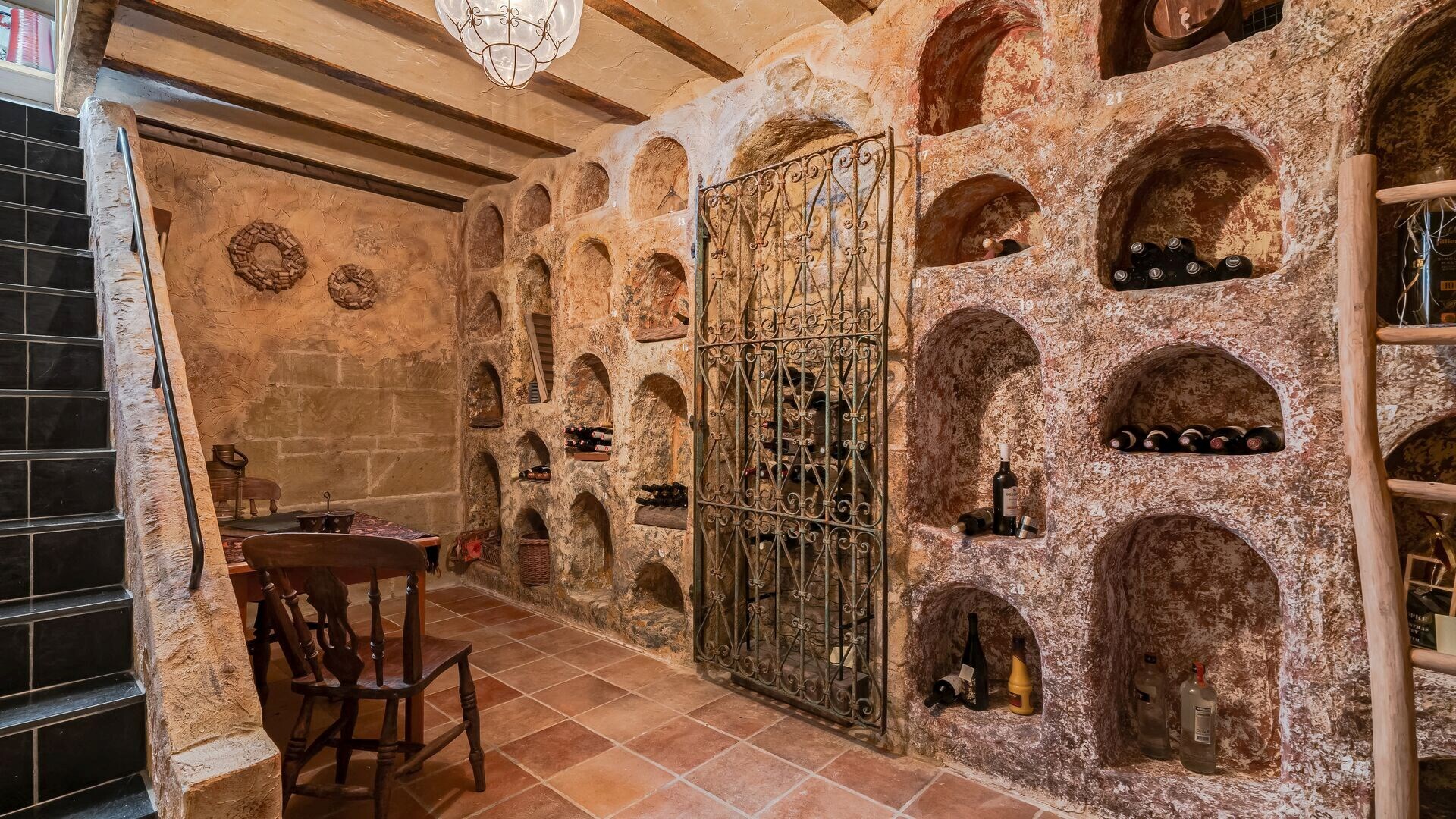 Voor de echte wijnliefhebber is deze woning voorzien van een authentieke, sfeervolle wijnkelder. Perfect voor het bewaren en presenteren van uw favoriete flessen. Een uniek en karaktervol element dat deze woning compleet maakt.