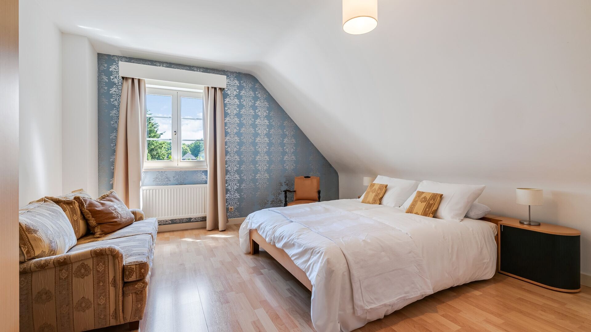 Verder op deze verdieping treft u een extra gezellige zithoek, ook rechtstreeks te bereiken via de tv-hoek op de gelijkvloerse verdieping.