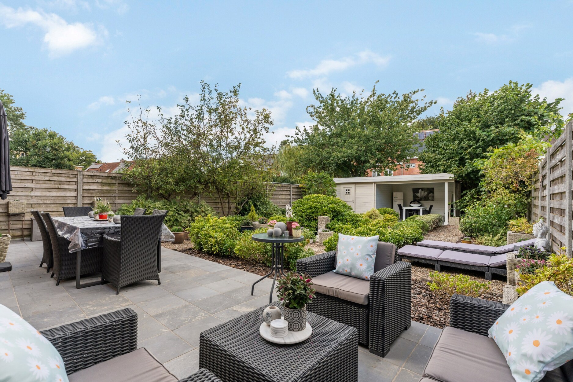 De mooi aangelegde stadstuin met groot terras is een echte troef. Geniet van lange zomeravonden in de gezellige loungehoek met bijhorende berging achteraan in de tuin.