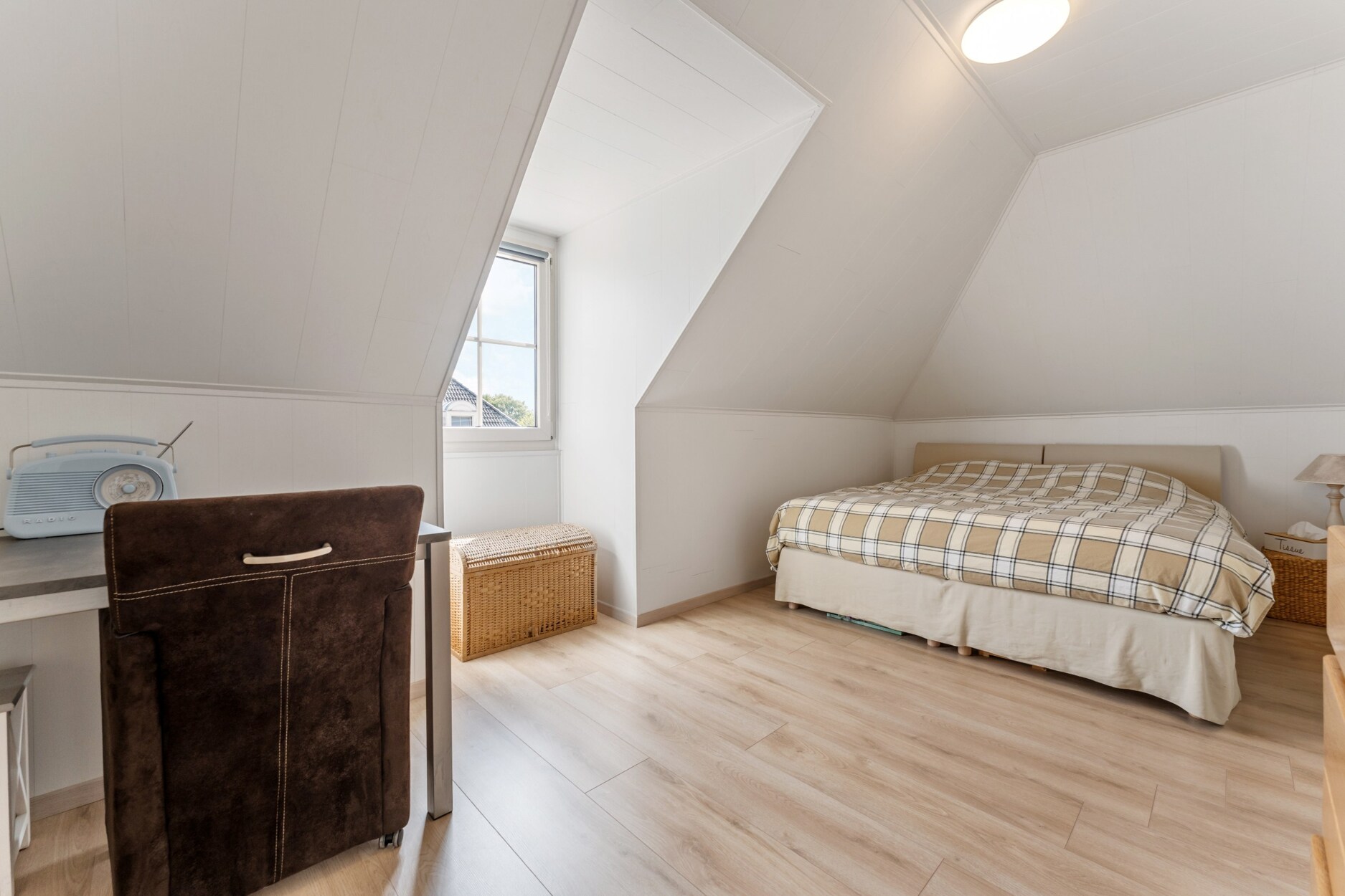 Via de vaste trap bereik je de zolderverdieping, waar nog twee extra slaapkamers zijn ondergebracht – elk met ingemaakte kasten. Perfect als kinderkamers, bureau of hobbyruimte.