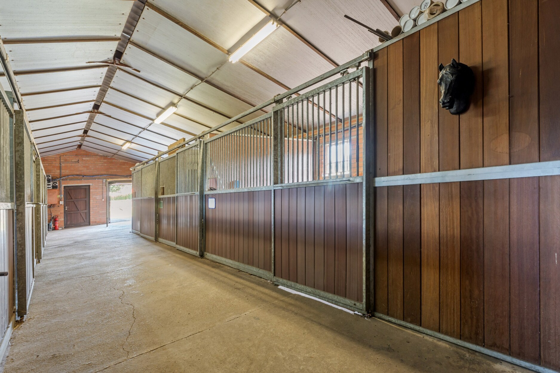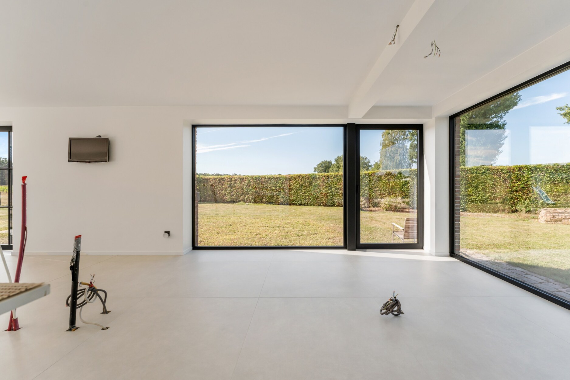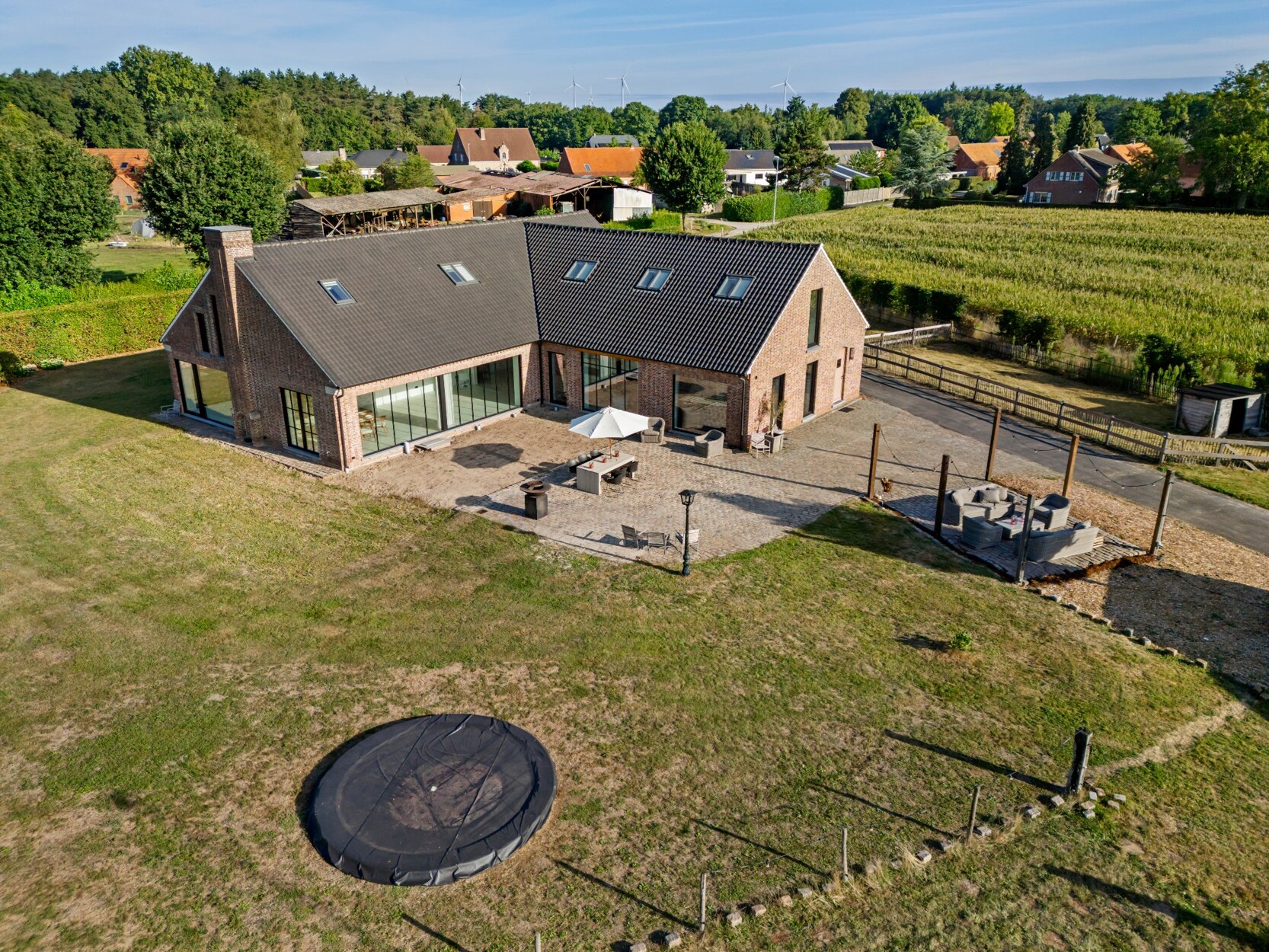 Moderne villa met een bewoonbare oppervlakte van maar liefst 524m² op perceel van ca. 1ha grond met bijgebouw van ca 400m². De villa werd gebouwd in 1980, maar recent volledig gestript en gerenoveerd! Gunstige EPC score van 49 kWh/m²/jaar (A-label). Ze omvat een riante woonkamer, een ruime leefkeuken (keuken zelf nog te realiseren), 3 à 4 slaapkamers, 1 badkamer (2e badkamer alsook extra douchekamer mogelijks te realiseren, ruimte en aansluitingen zijn reeds voorzien), 2 bureauruimtes op het gelijkvloers, een wasplaats en voldoende bergruimte in de woning. Op het perceel een bijgebouw van ca 400m².