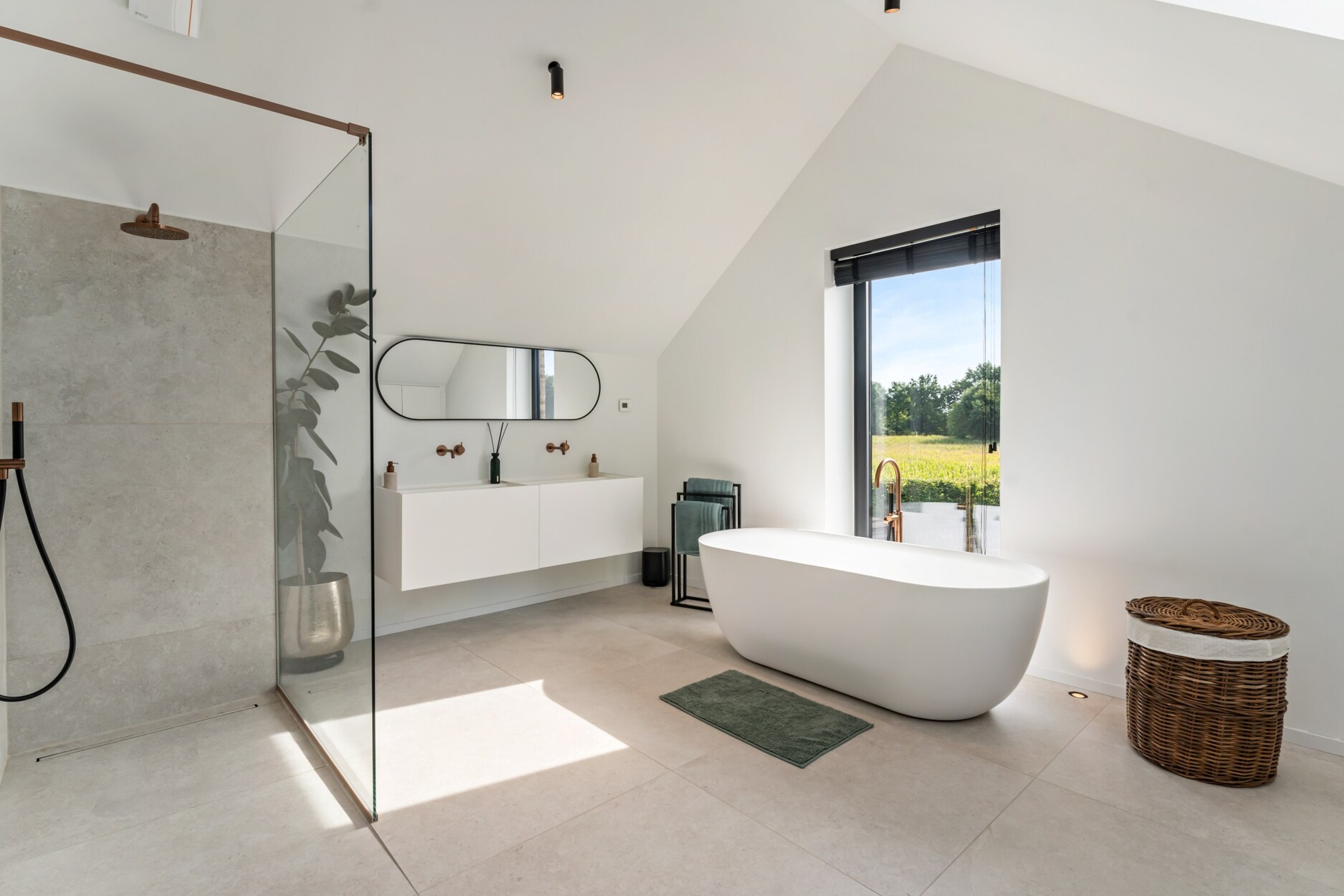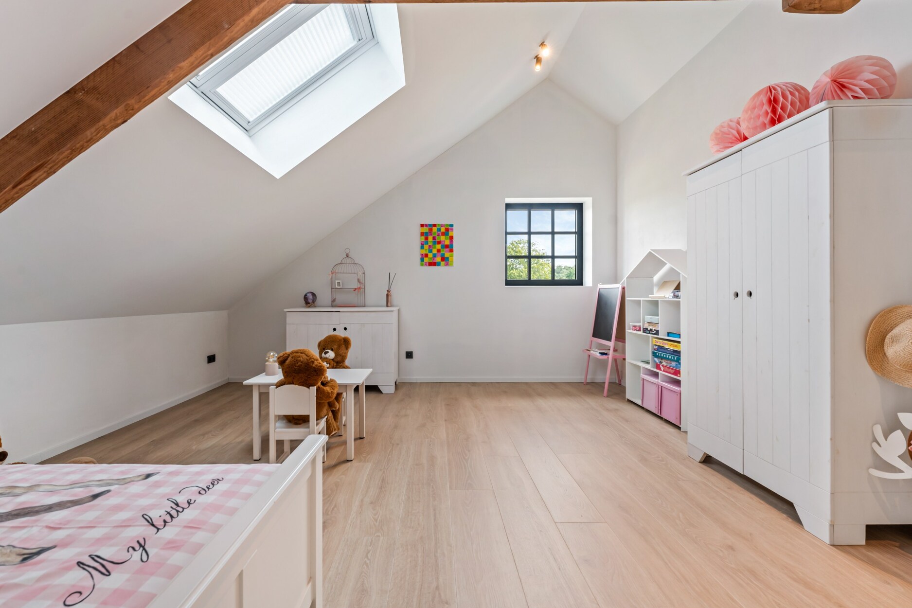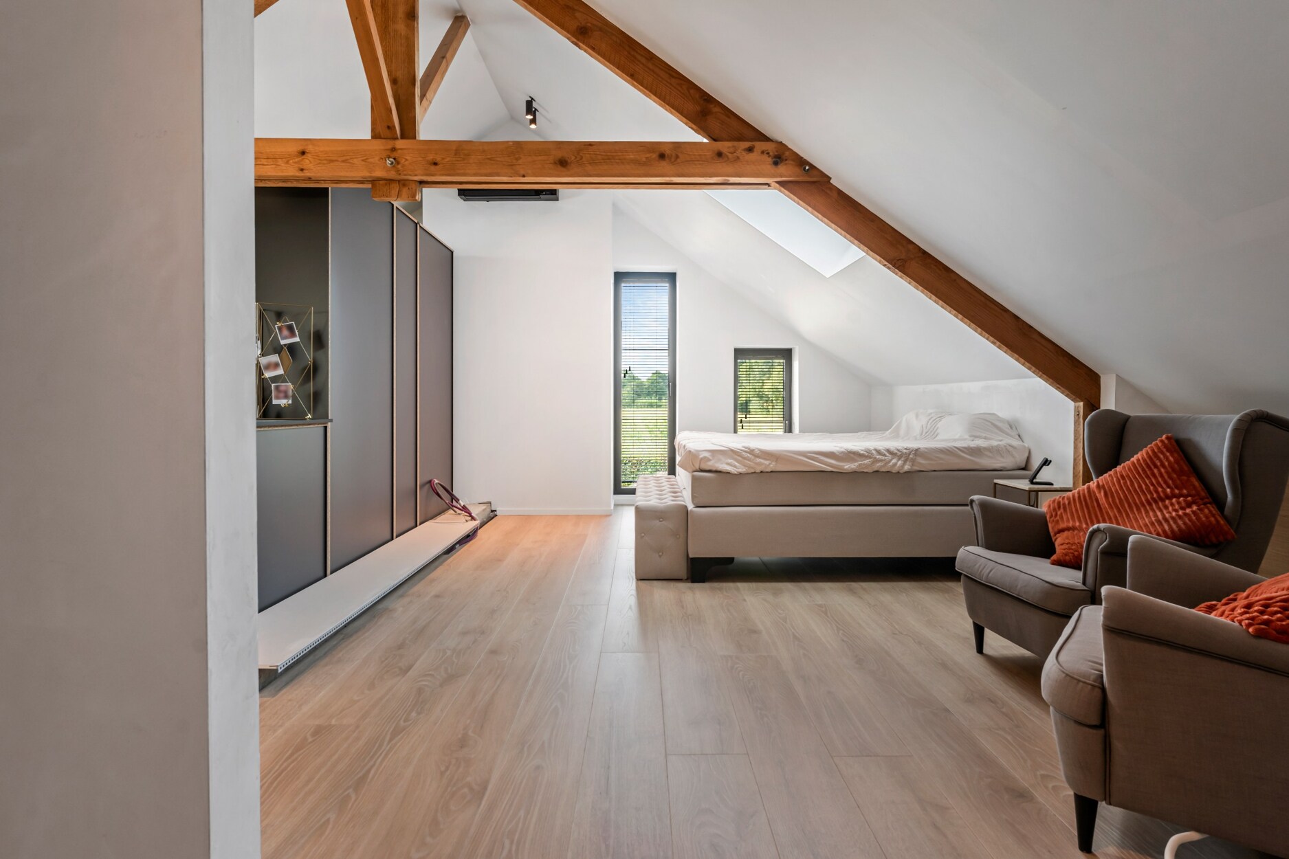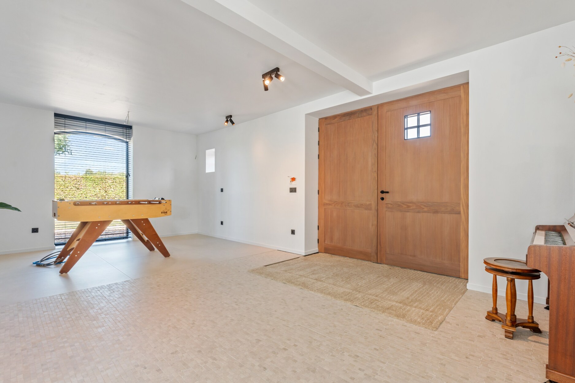 Moderne villa met een bewoonbare oppervlakte van maar liefst 524m² op perceel van ca. 1ha grond met bijgebouw van ca 400m². De villa werd gebouwd in 1980, maar recent volledig gestript en gerenoveerd! Gunstige EPC score van 49 kWh/m²/jaar (A-label). Ze omvat een riante woonkamer, een ruime leefkeuken (keuken zelf nog te realiseren), 3 à 4 slaapkamers, 1 badkamer (2e badkamer alsook extra douchekamer mogelijks te realiseren, ruimte en aansluitingen zijn reeds voorzien), 2 bureauruimtes op het gelijkvloers, een wasplaats en voldoende bergruimte in de woning. Op het perceel een bijgebouw van ca 400m².