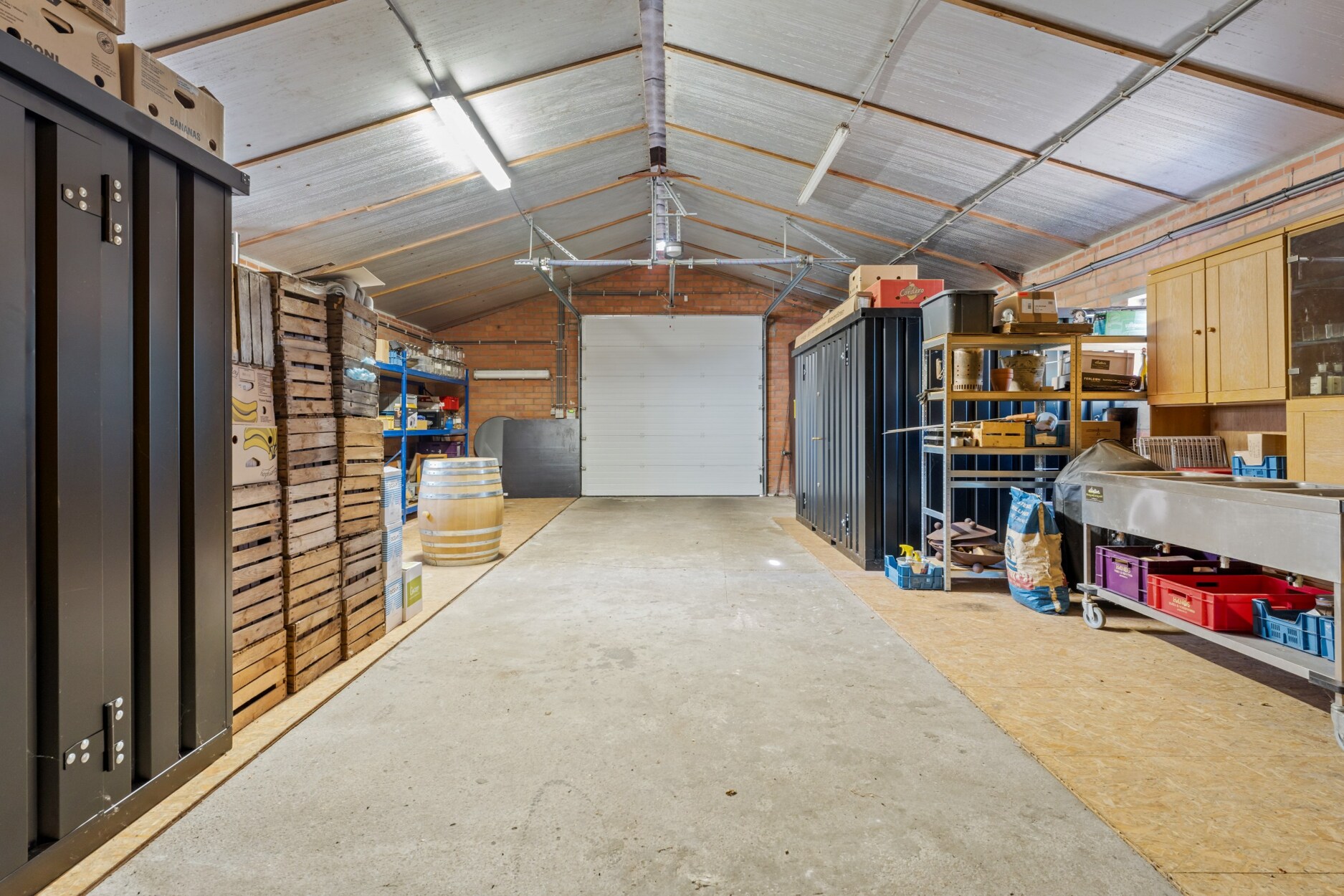 In de tuin is het aangenaam vertoeven door de zuidelijke oriëntatie en het weidse uitzicht. Op het perceel een bijgebouw van ca 400m².