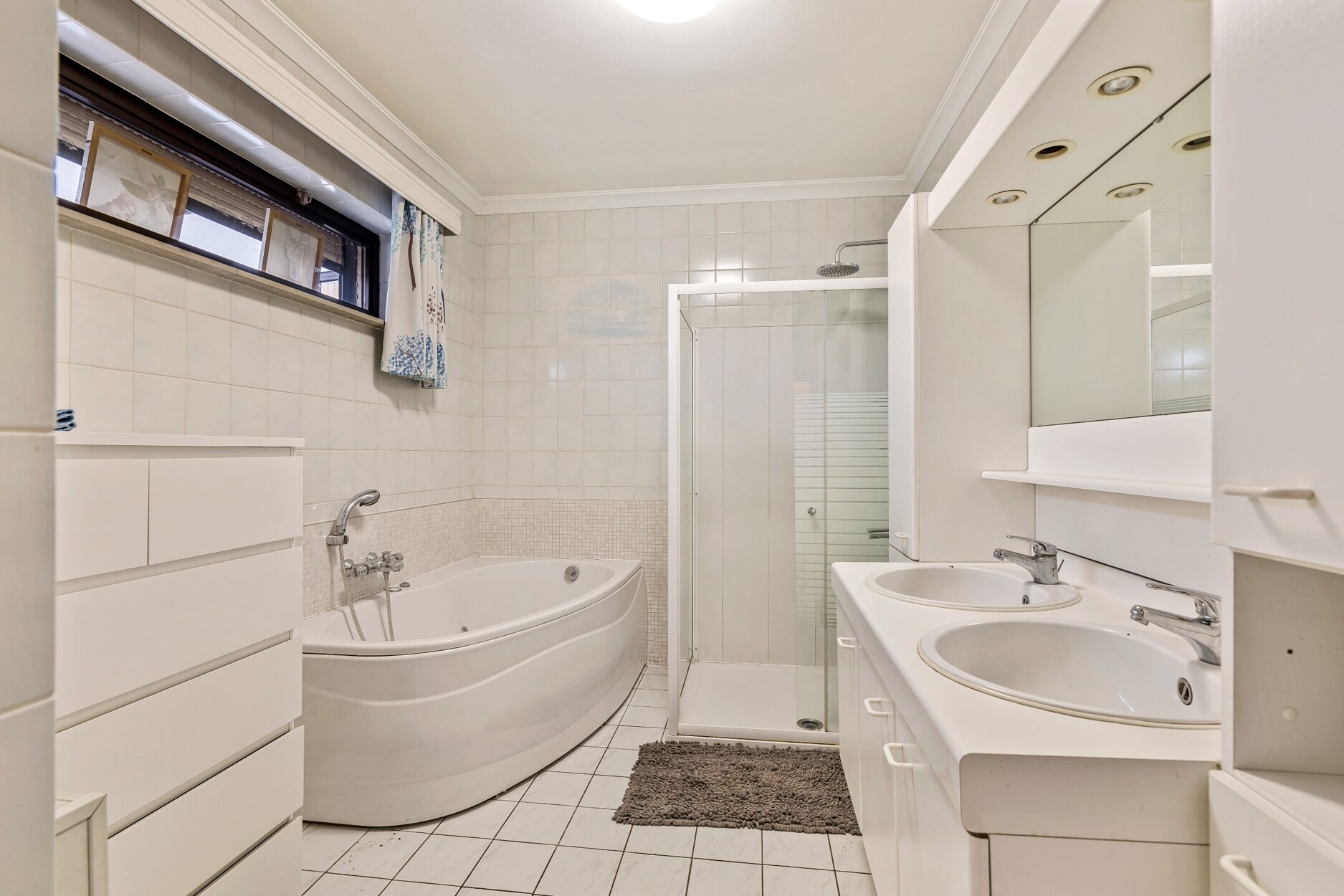 De woning, gebouwd in 1981, is instapklaar en beschikt over een inkomhal, een lichtrijke leefruimte met aansluitende keuken, een praktische was- en bergplaats met maatkasten, een veranda, een badkamer met ligbad en douche, en een ruime inpandige garage met automatische poort. Op de eerste verdieping bevinden zich vier slaapkamers, waarvan één met ingebouwde kasten, een aparte dressing, een toilet en een zolderruimte.