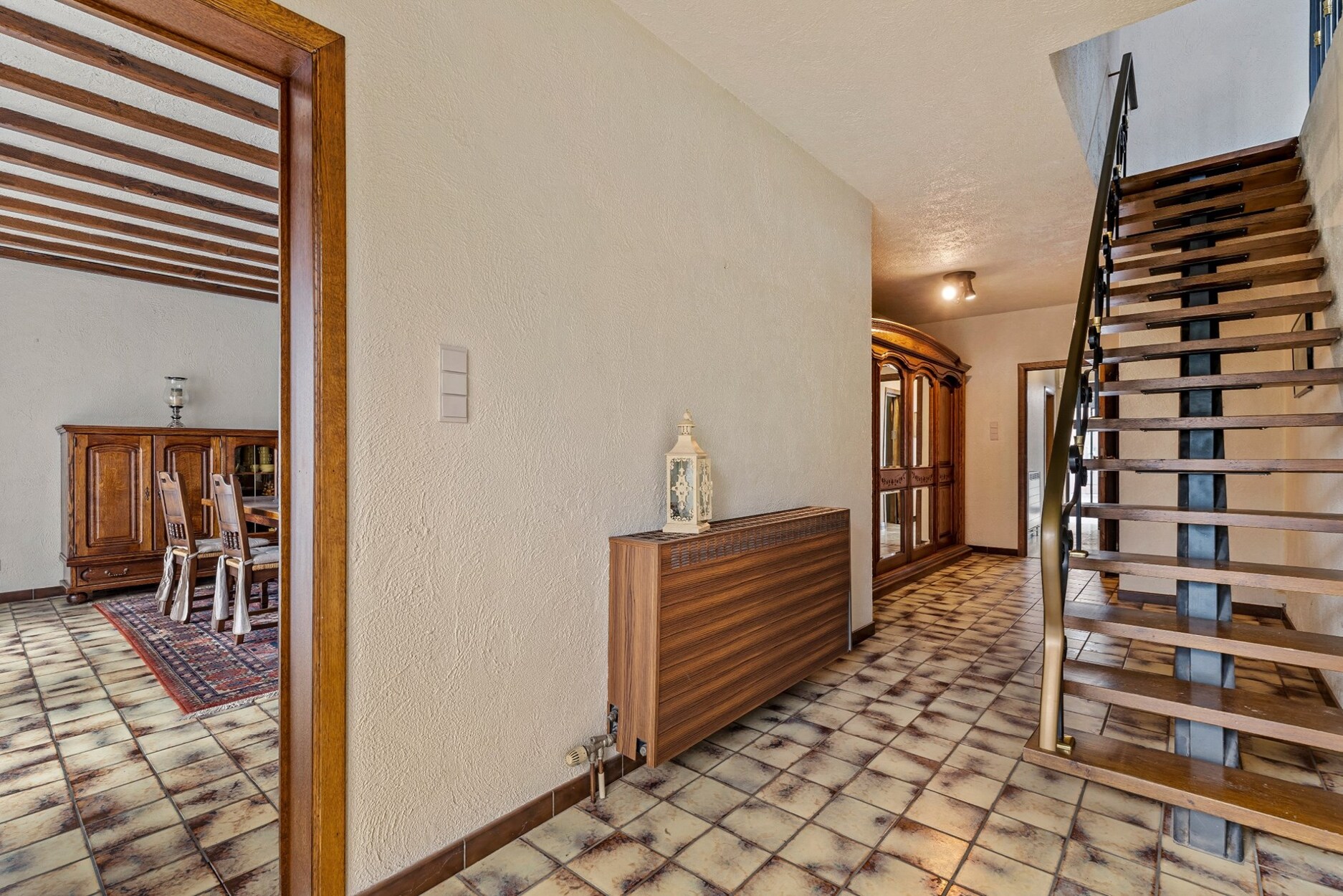 De woning, gebouwd in 1981, is instapklaar en beschikt over een inkomhal, een lichtrijke leefruimte met aansluitende keuken, een praktische was- en bergplaats met maatkasten, een veranda, een badkamer met ligbad en douche, en een ruime inpandige garage met automatische poort. Op de eerste verdieping bevinden zich vier slaapkamers, waarvan één met ingebouwde kasten, een aparte dressing, een toilet en een zolderruimte.